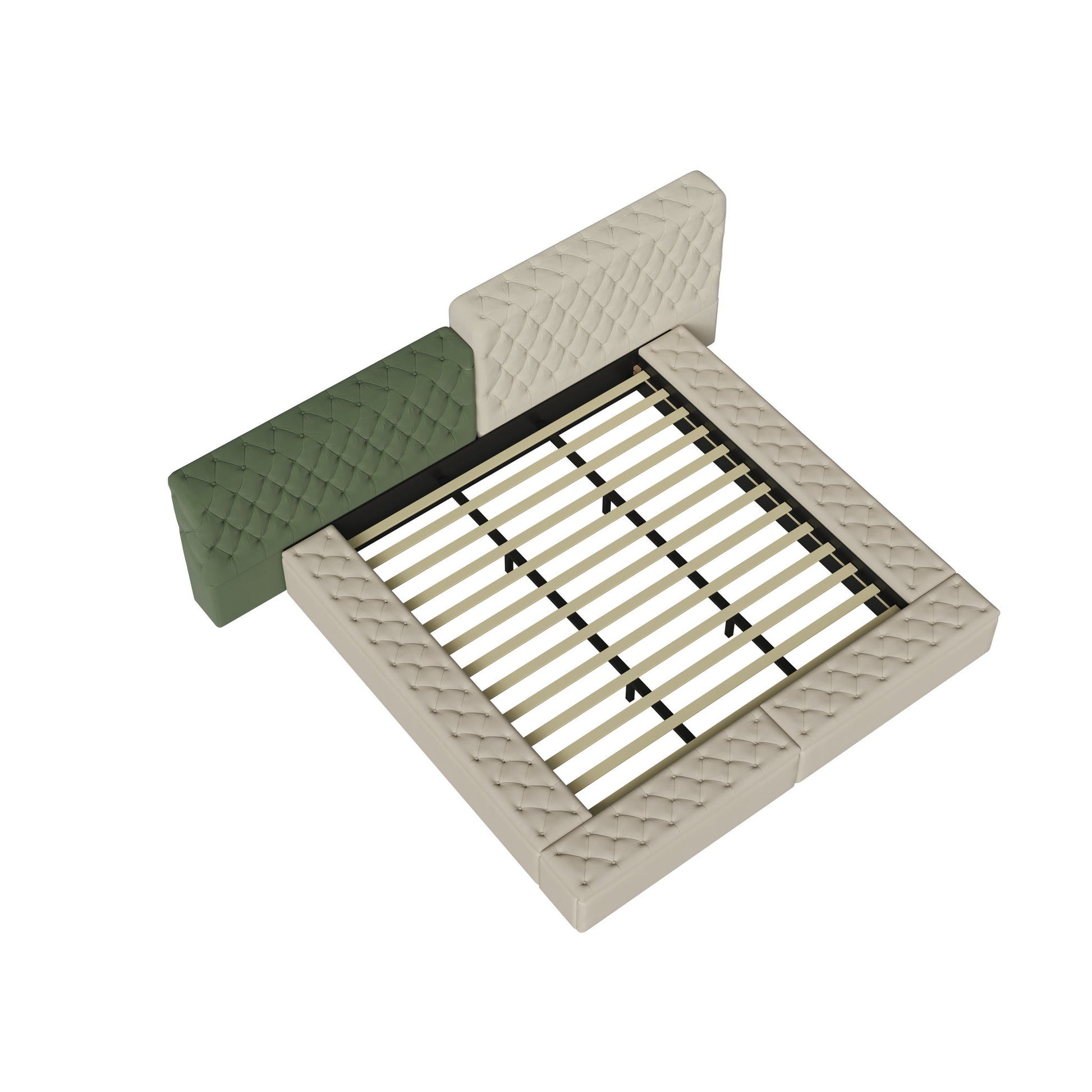 Modern Upholstered Platform Bed With Storage Space, Sturdy And Stable Solid Wood Frame