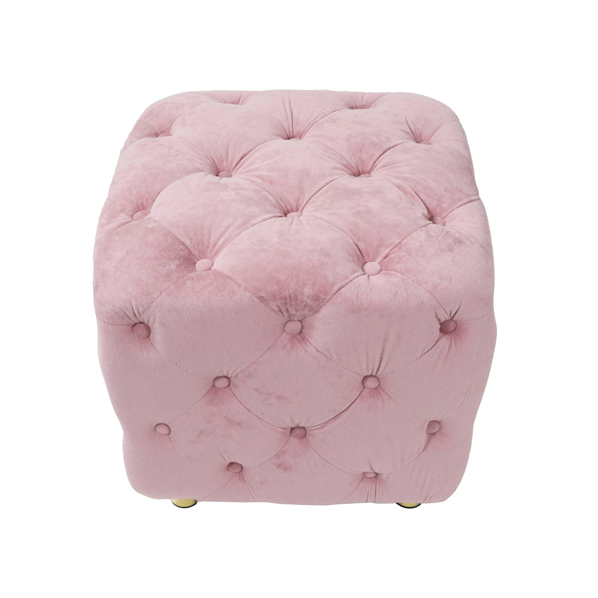 Modern Velvet Upholstered Ottoman, Exquisite Small End Table, Soft Foot Stool, Dressing Makeup Chair, Comfortable Seat For Living Room, Bedroom, Entrance - Pink