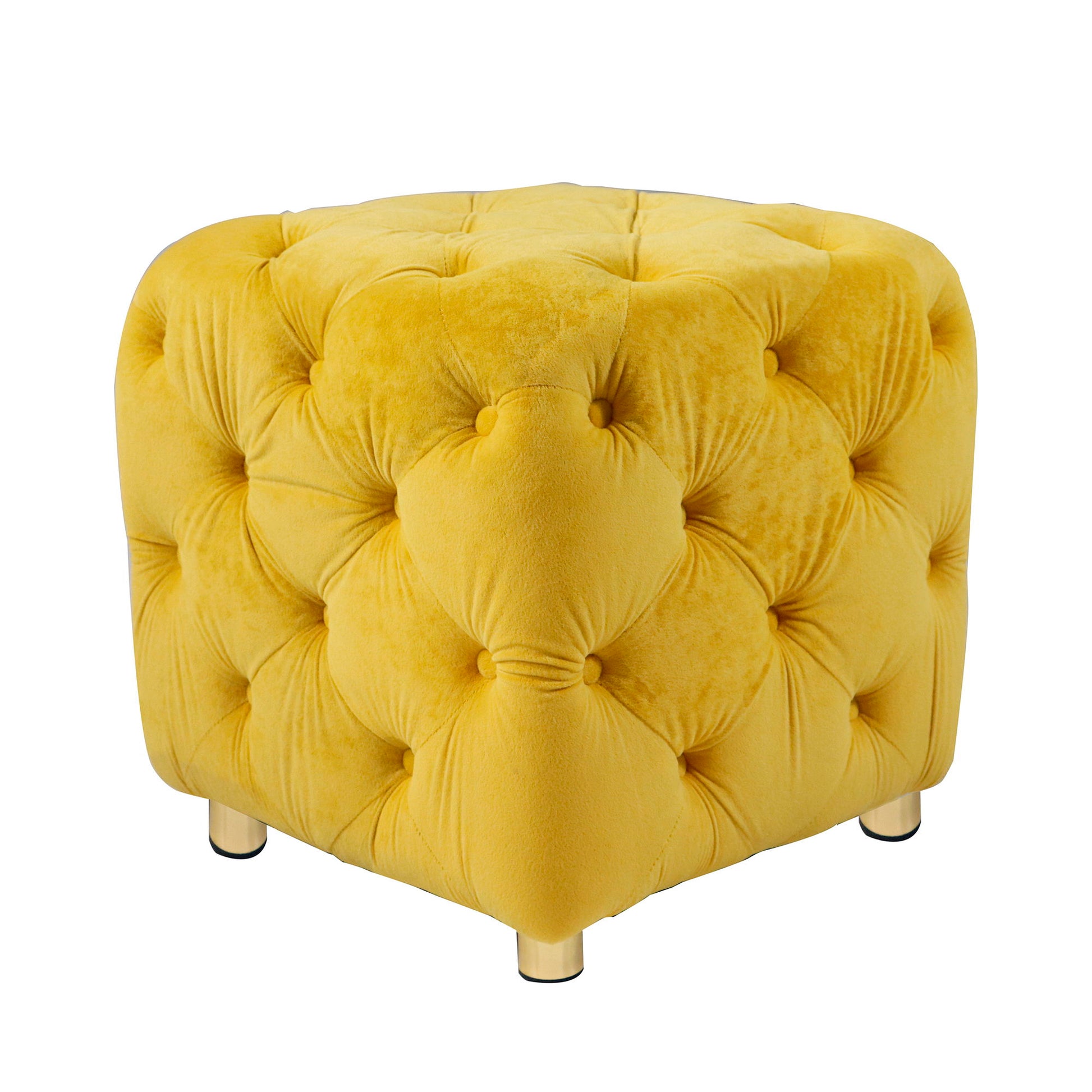 Modern Velvet Upholstered Ottoman, Exquisite Small End Table, Soft Foot Stool, Dressing Makeup Chair, Comfortable Seat For Living Room, Bedroom, Entrance - Yellow