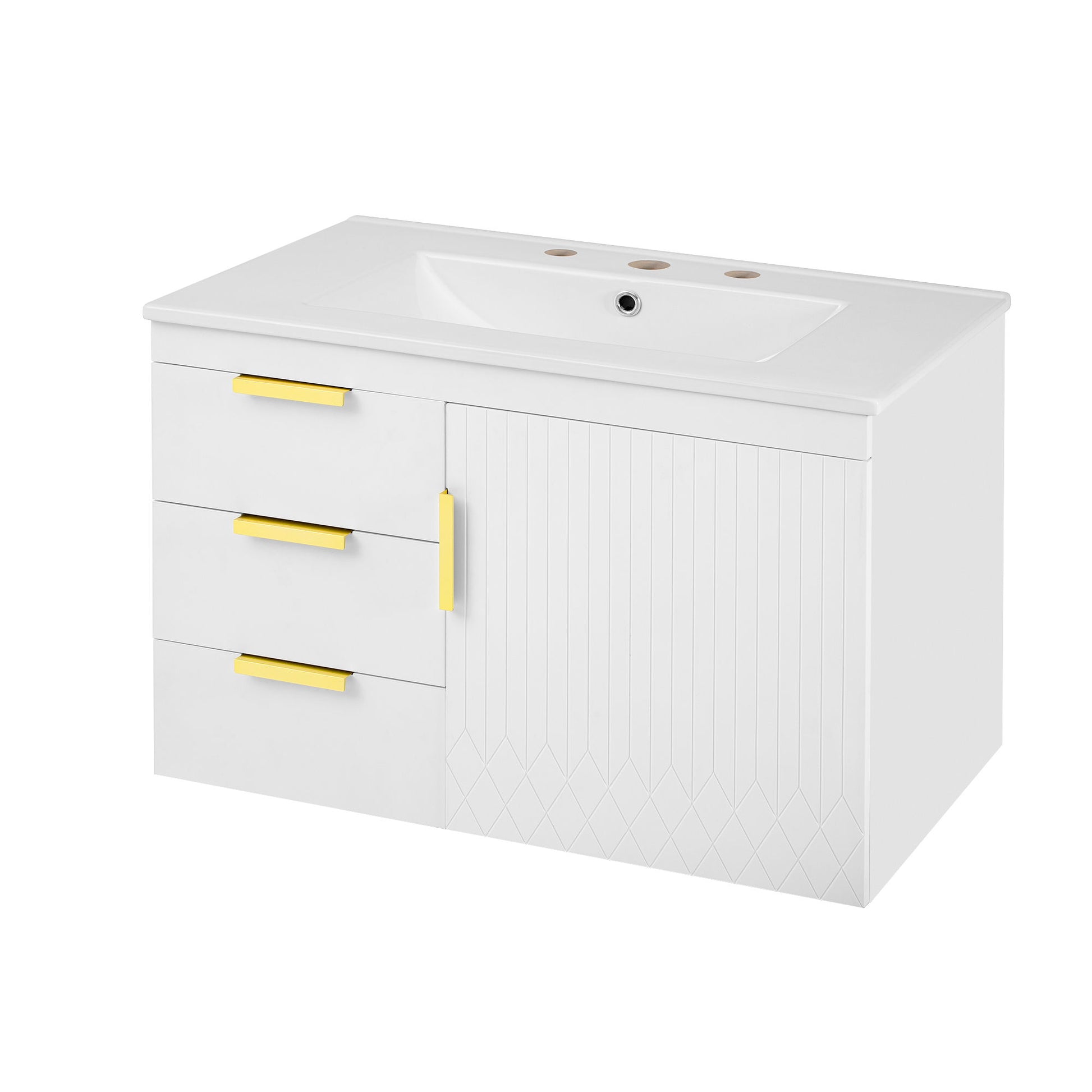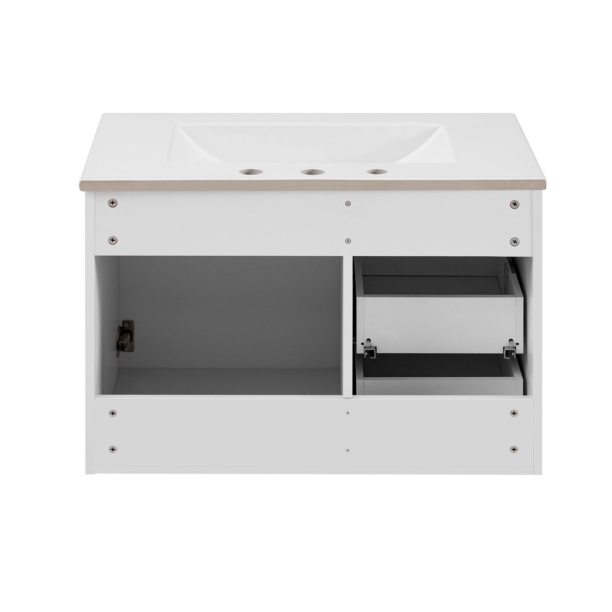 Wall Mounted Bathroom Cabinet With Ceramic Sink, Soft-Closing Drawer And Door - White
