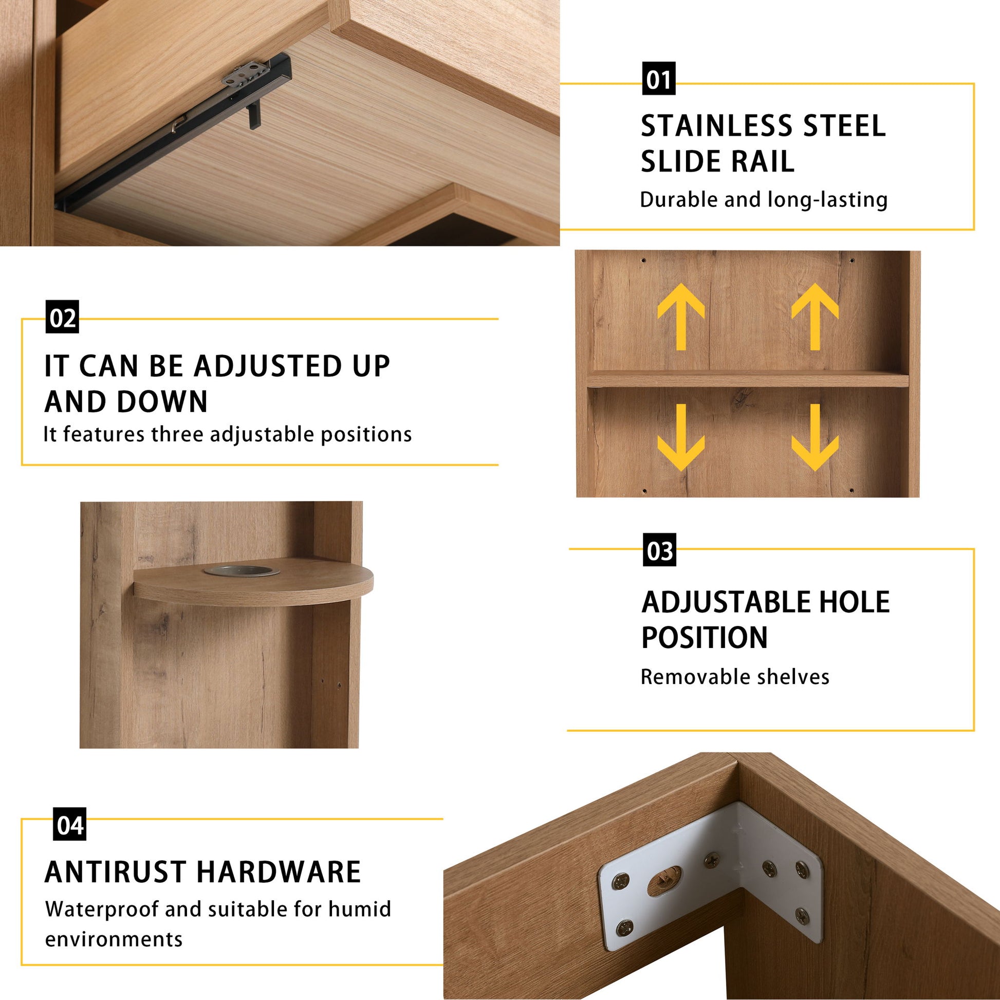 - Modern Aesthetic: Designed to complement contemporary bathroom styles with an imitative oak finish.