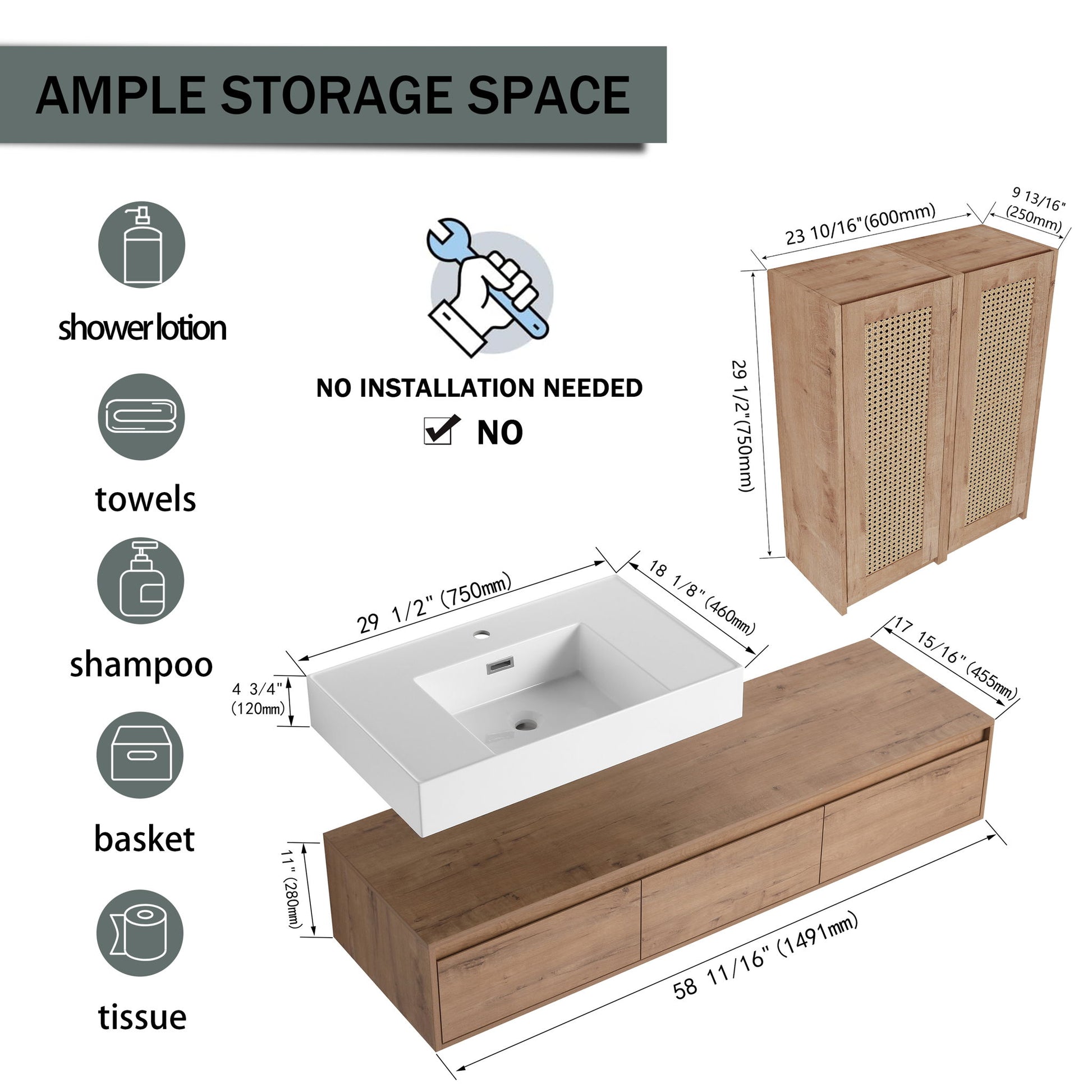 - Easy Installation: Vanity base pre-assembled; sink and side cabinet require minimal assembly.