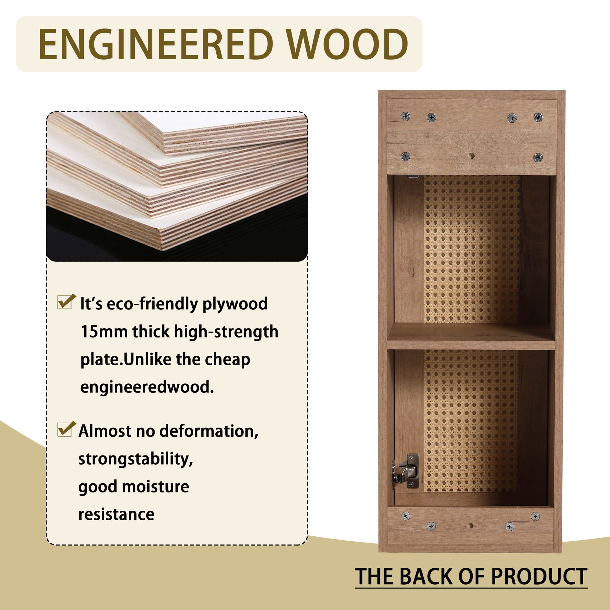 Modern Wall Mounted Bathroom Vanity With Resin Sink And 2 Side Cabinet, Imitative, Construction - Imitative Oak