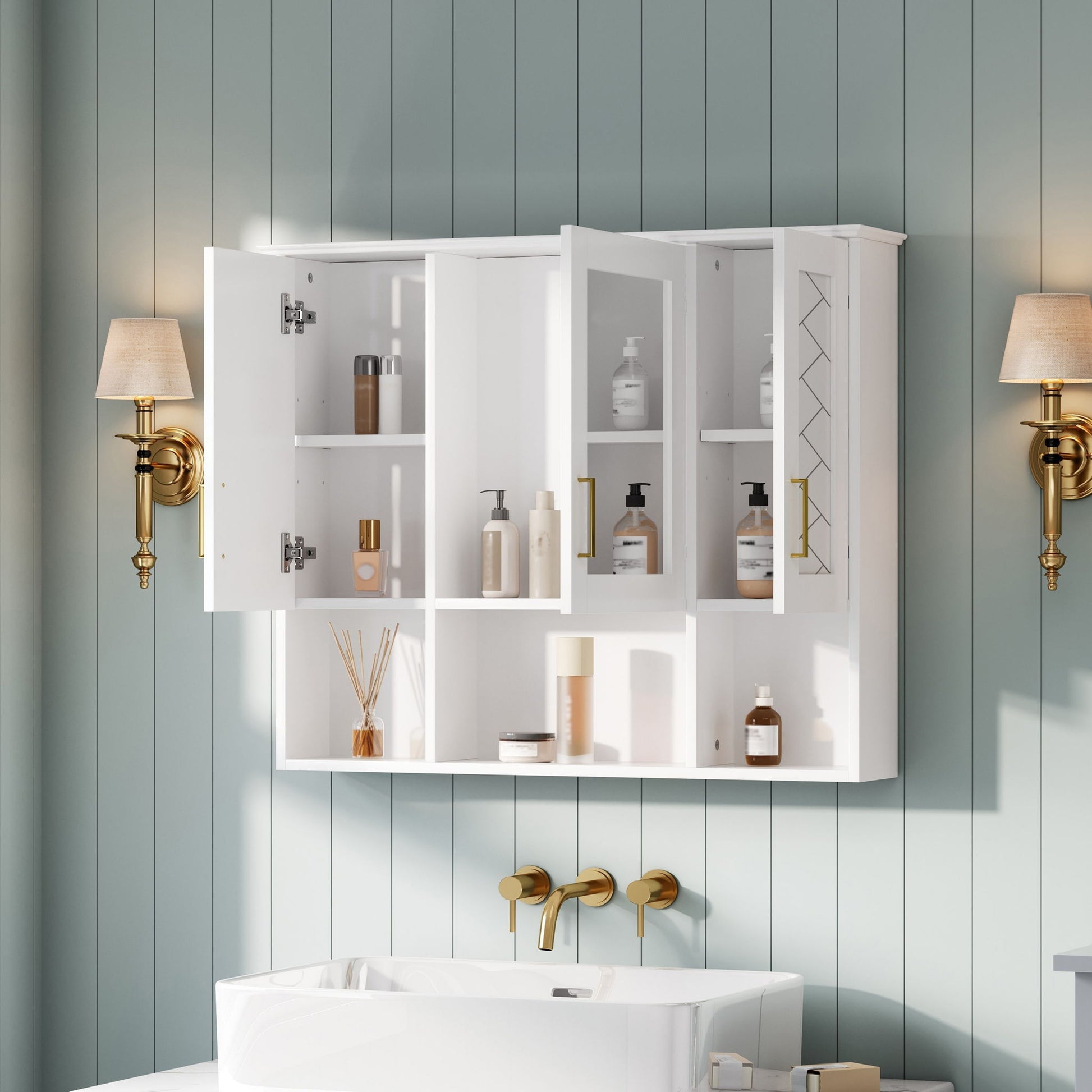 Wall Mounted Medicine Cabinet With Adjustable Shelves, Soft Close Doors, High Define Mirror - White
