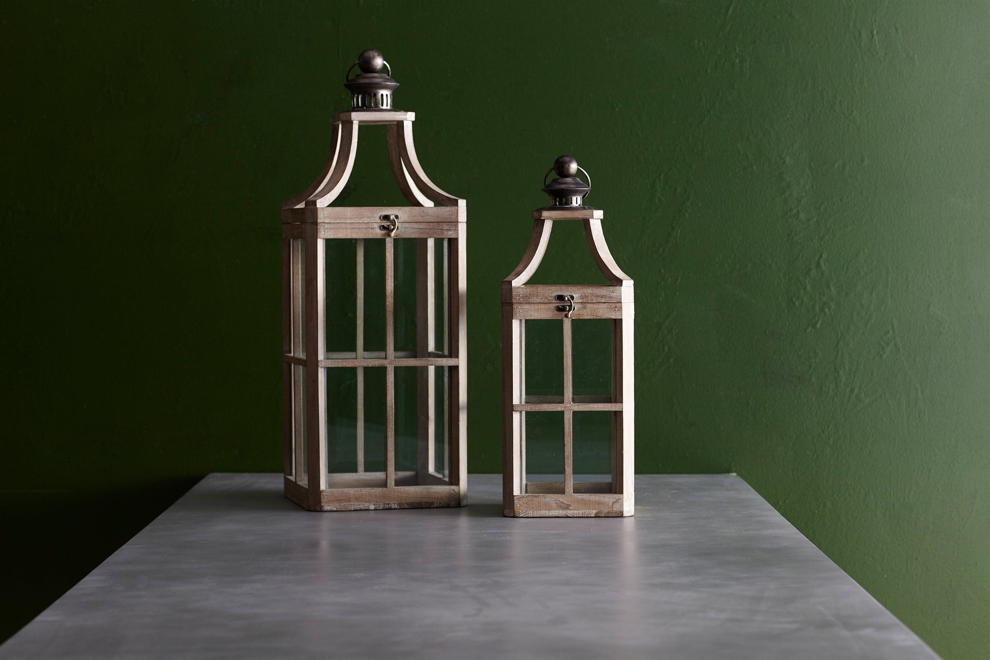 Modern Wood Lantern with Curved Top (Set of 2)