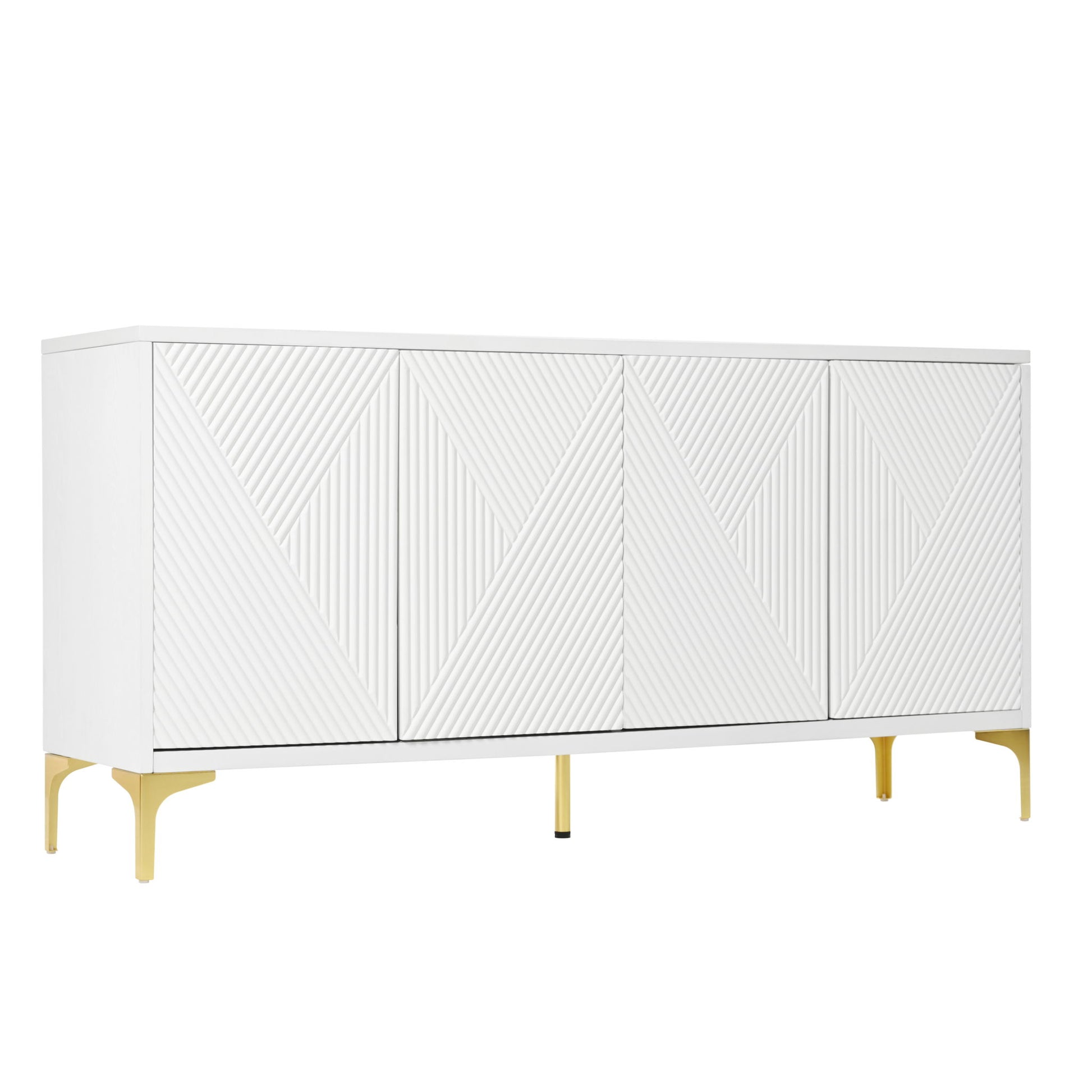 Modern Wood Sideboard Cabinet With Carved Door Panels, Adjustable Shelves, And Sturdy Metal Legs - White