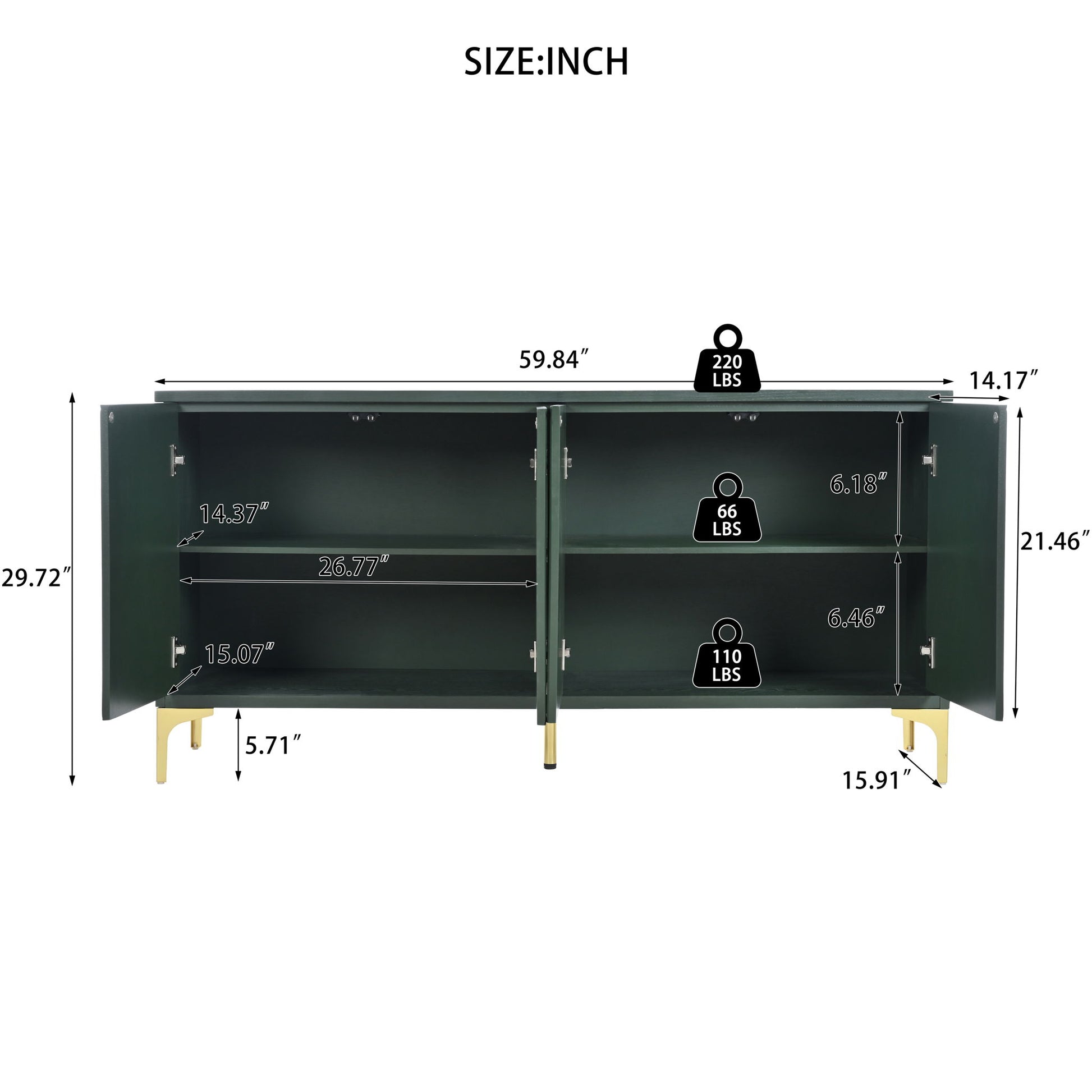 Modern Light Luxury Style Large Storage Space Sideboard With 4 Doors And Rebound Device - Olive Green
