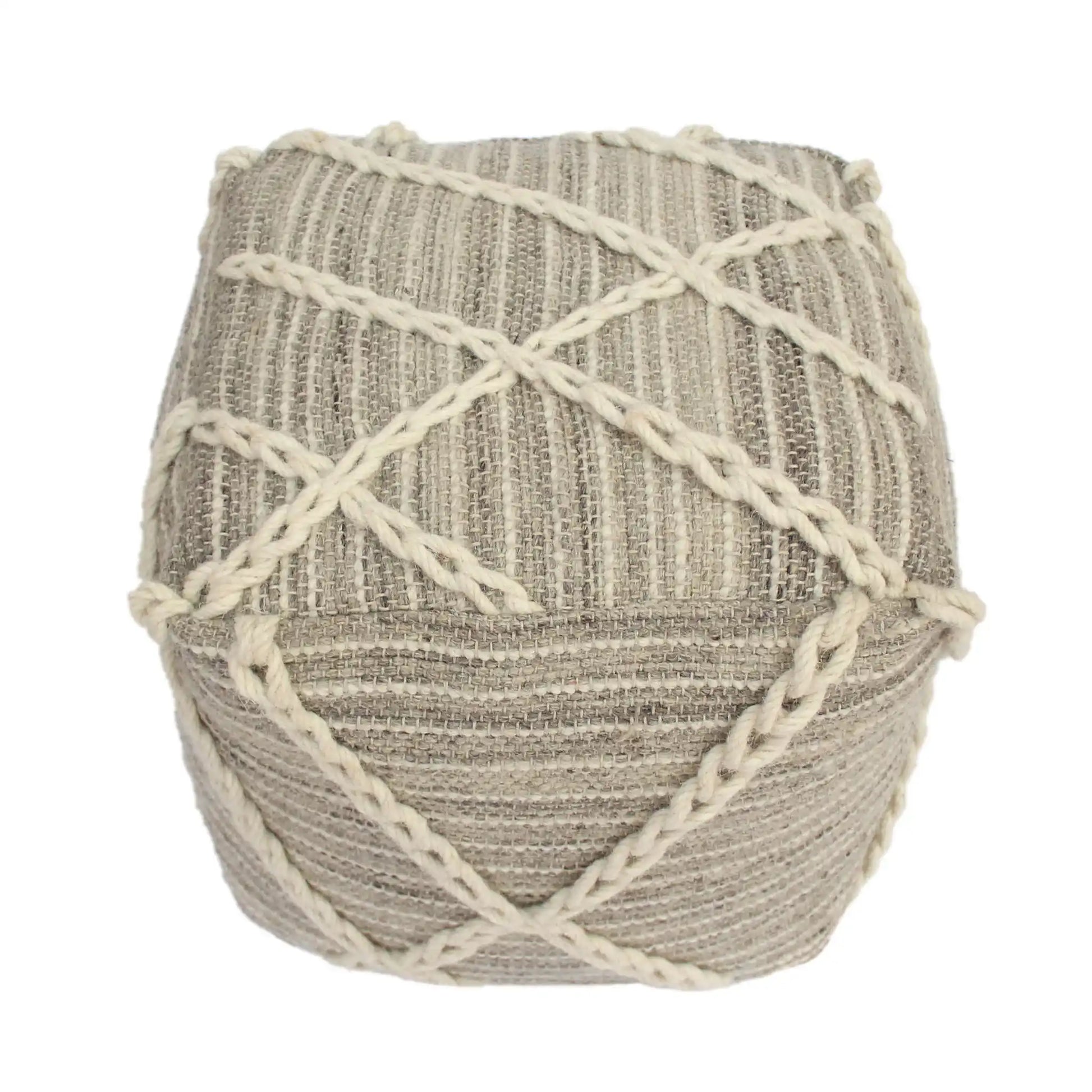 Modern Wool Rope Square Pouf Ottoman Floor Cushion - Gray / Ivory