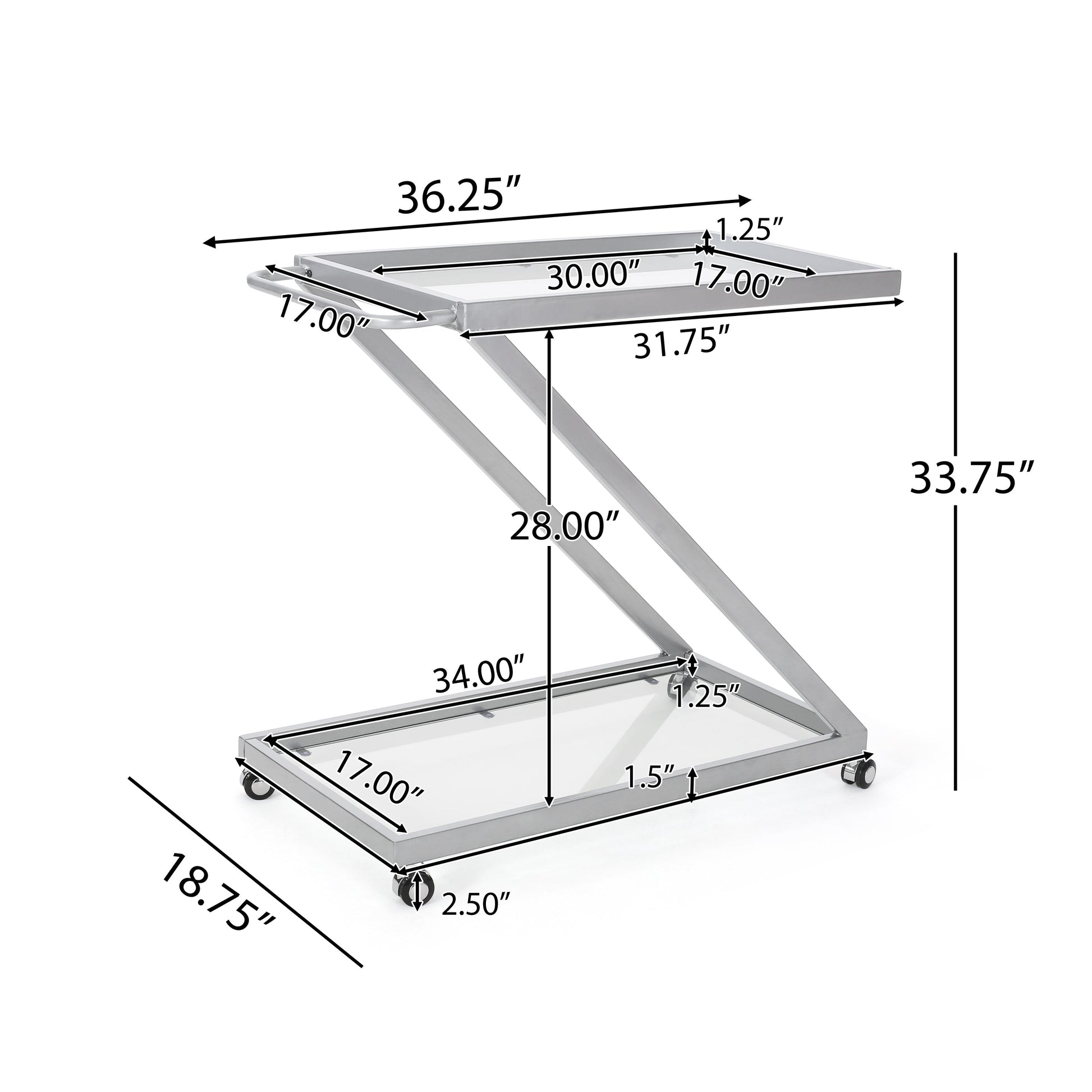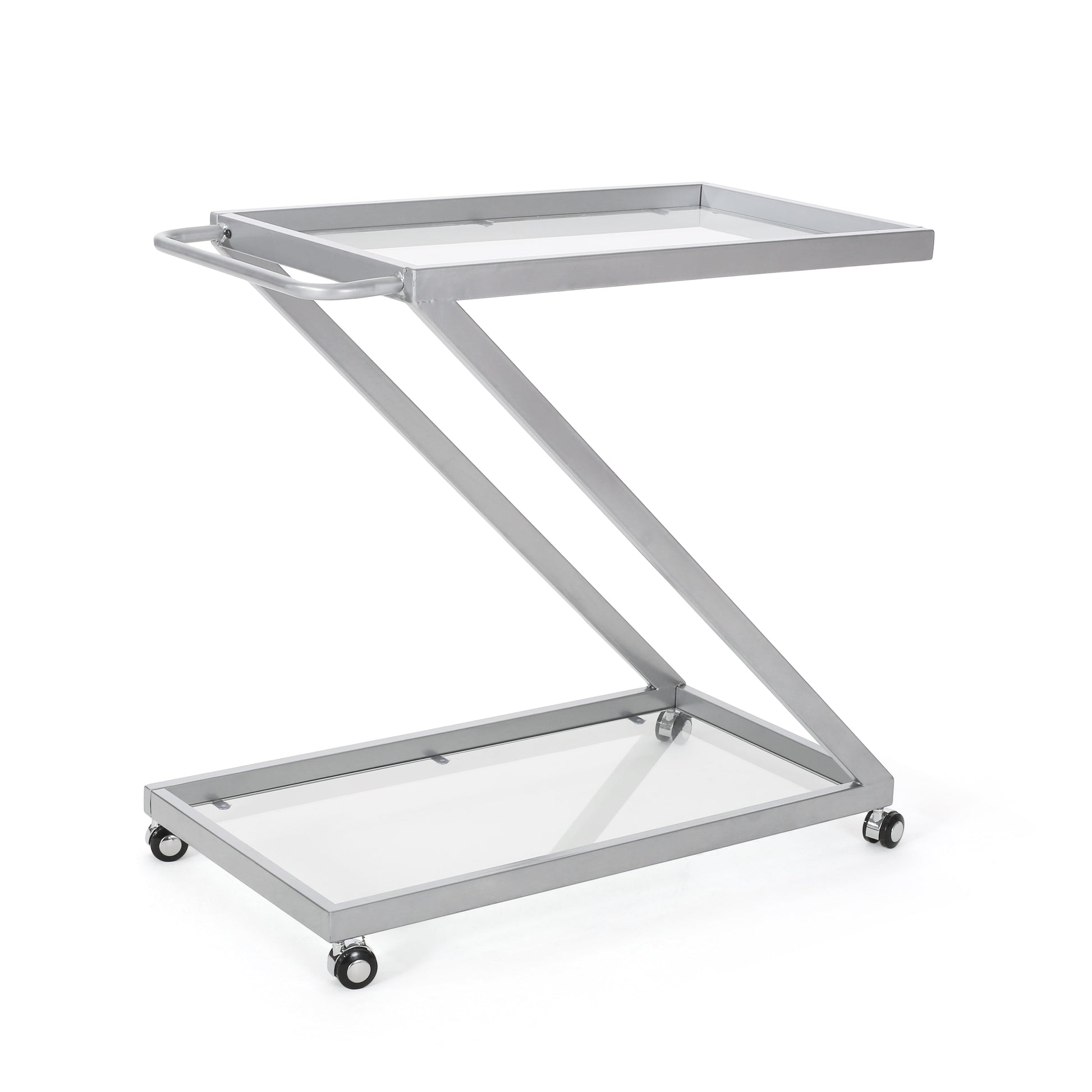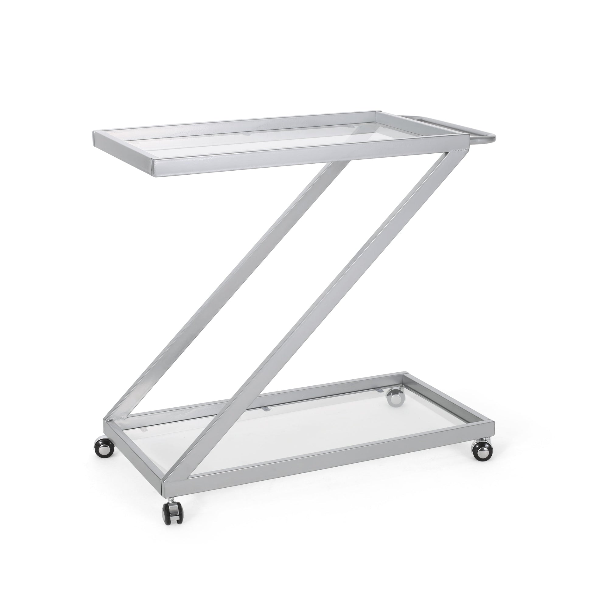 Modern Z-Shaped Bar Cart with Tempered Glass Shelves