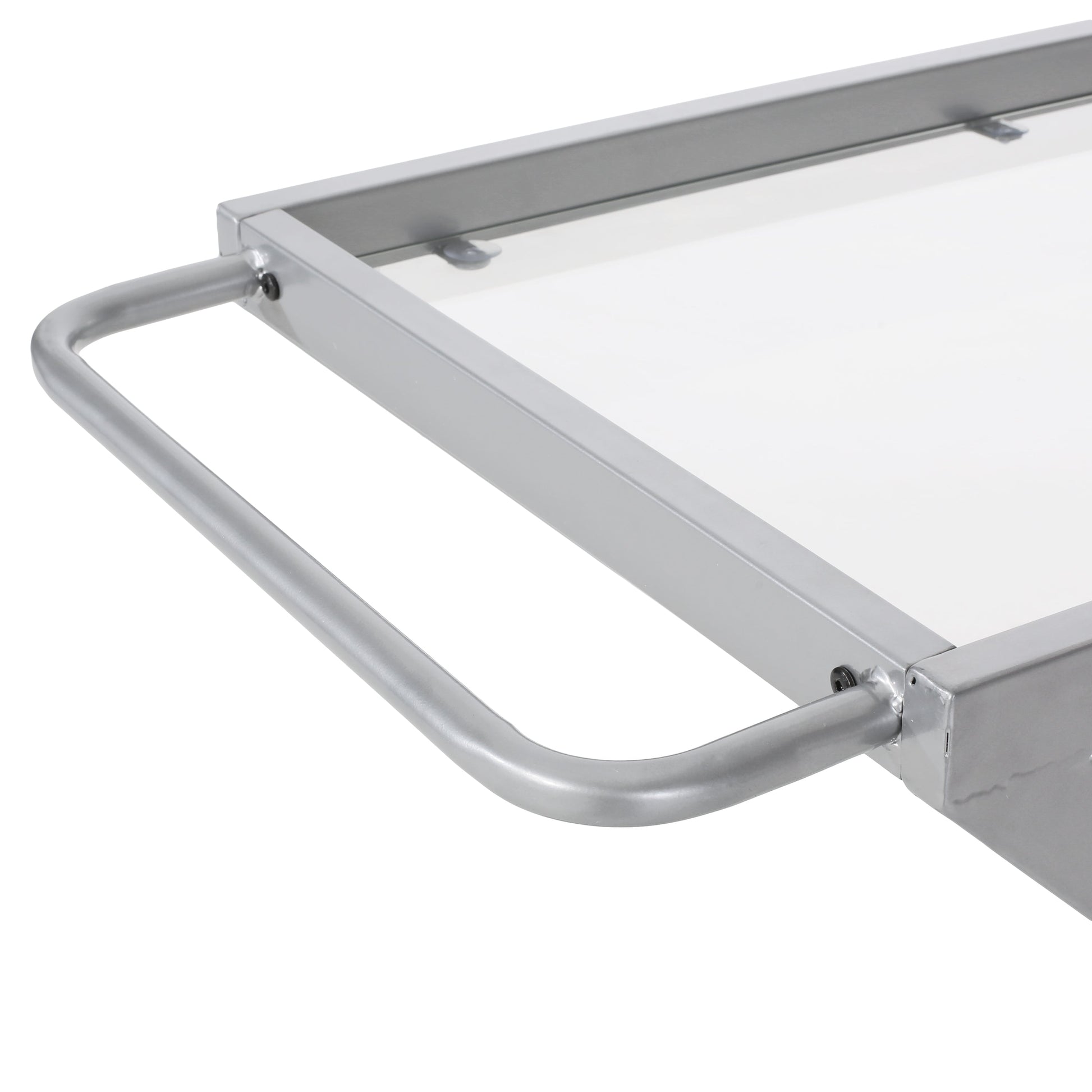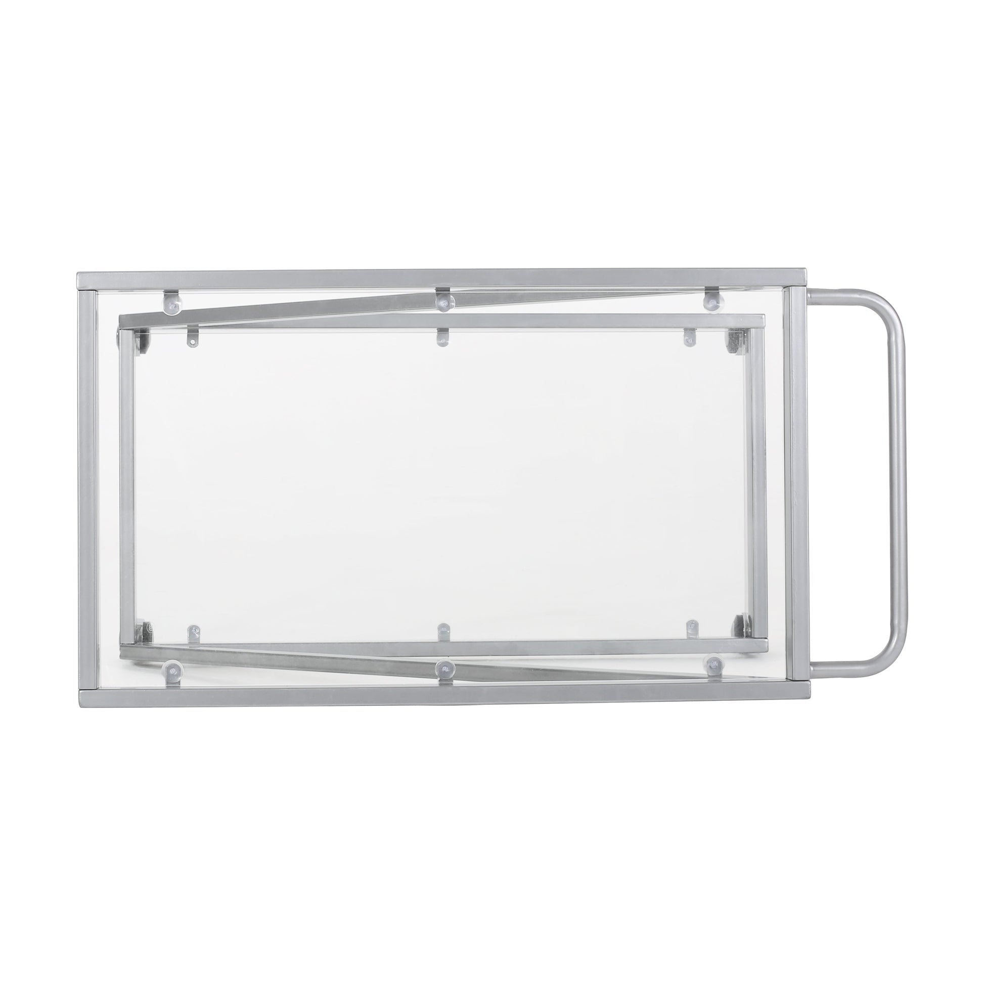 - Tempered glass shelves provide strength and safety