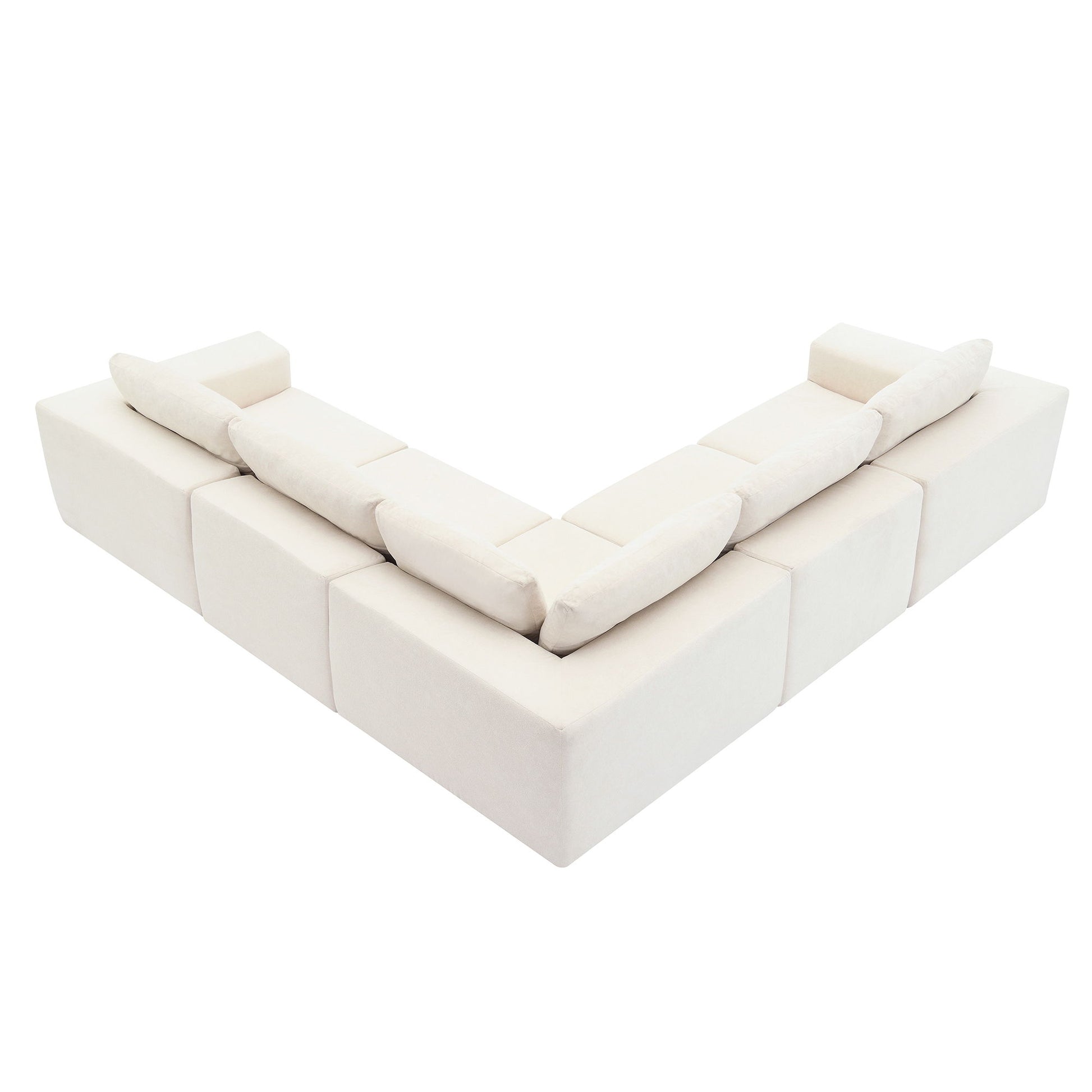 Modular L Shaped Sectional Sofa, Luxury Floor Couch Set, Upholstered Indoor Furniture, Foam - Filled Sleeper Sofa Bed 5 Pieces Free Combination - Beige