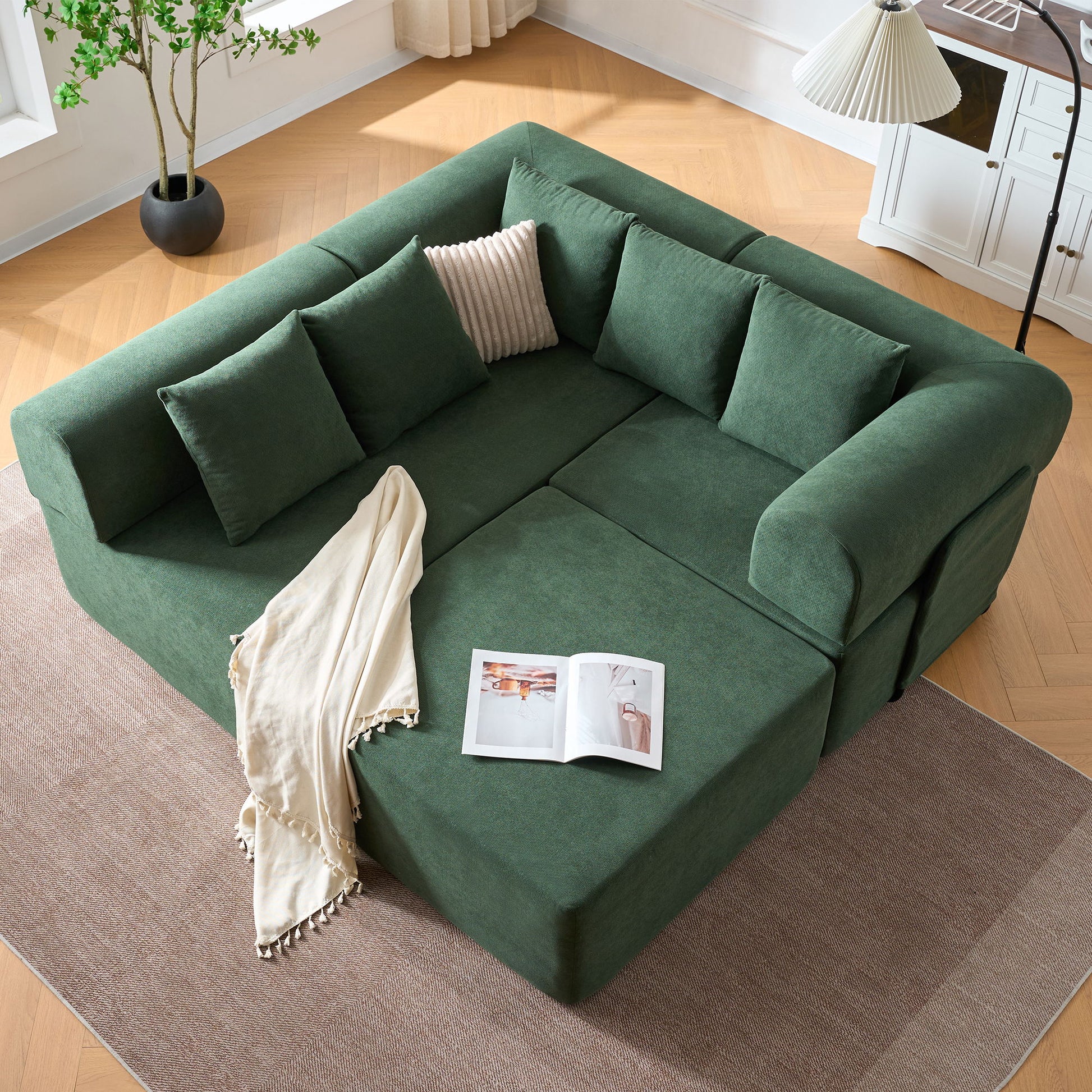 Modular L-Shaped Sectional Sofa With Deep Seat, Movable Chaise & 5 Pillows - Green
