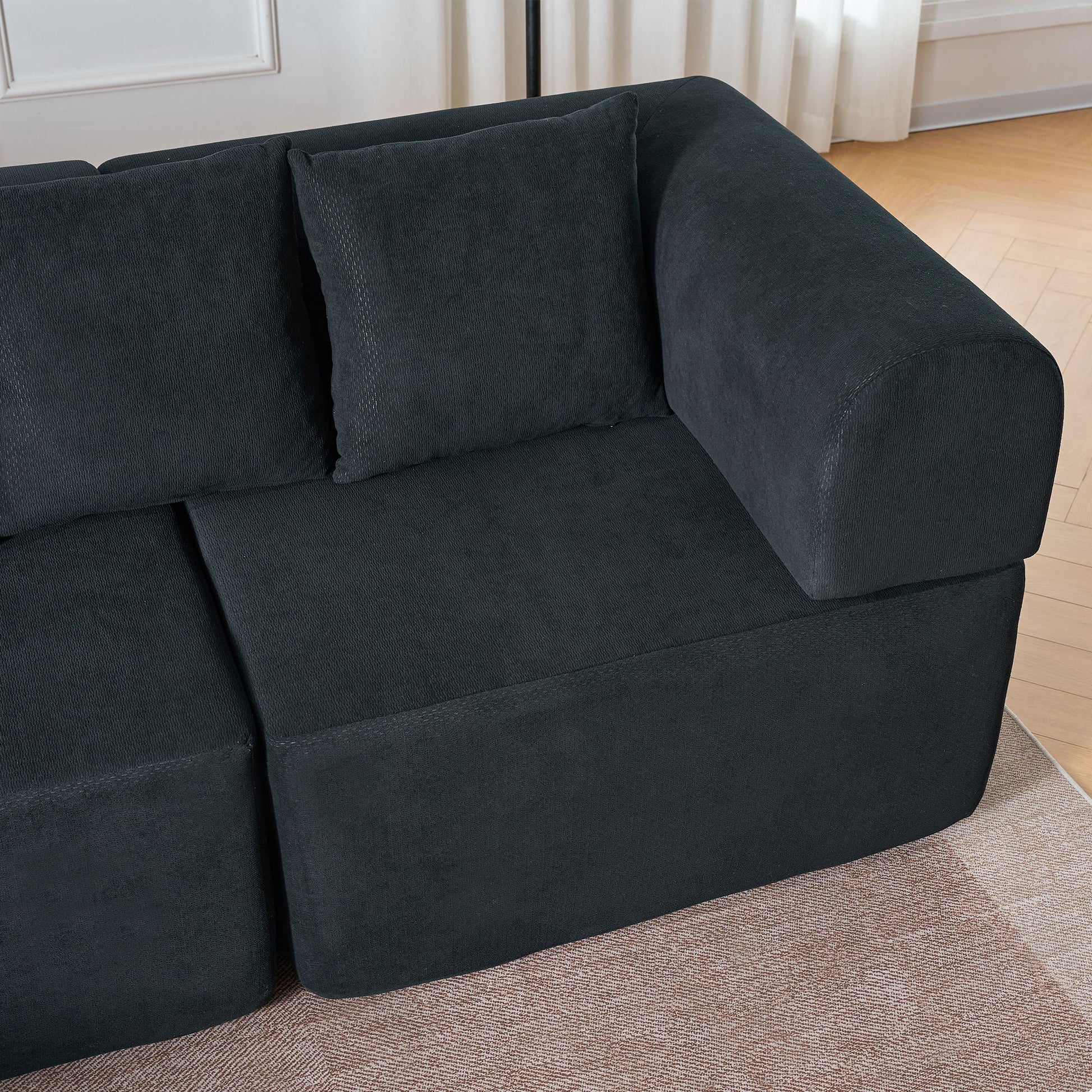 Modular L-Shaped Sectional Sofa With Deep Seat, Movable Chaise & 5 Pillows - Black