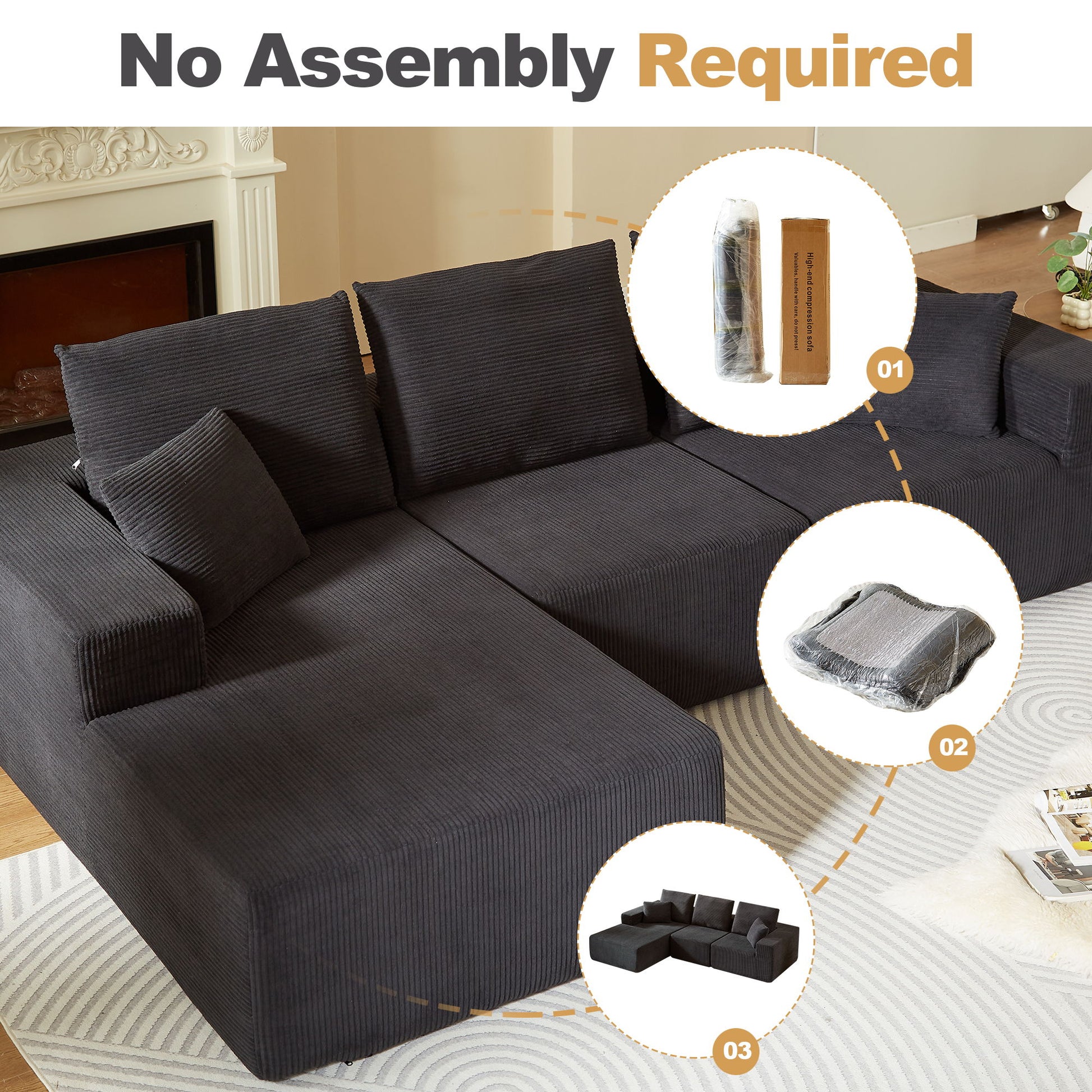 - Premium Material: Crafted from soft corduroy fabric, this sectional sofa not only feels luxurious but is also easy to maintain. The full foam construction provides excellent support, ensuring strong resilience and bounce-back, making it perfect for live.