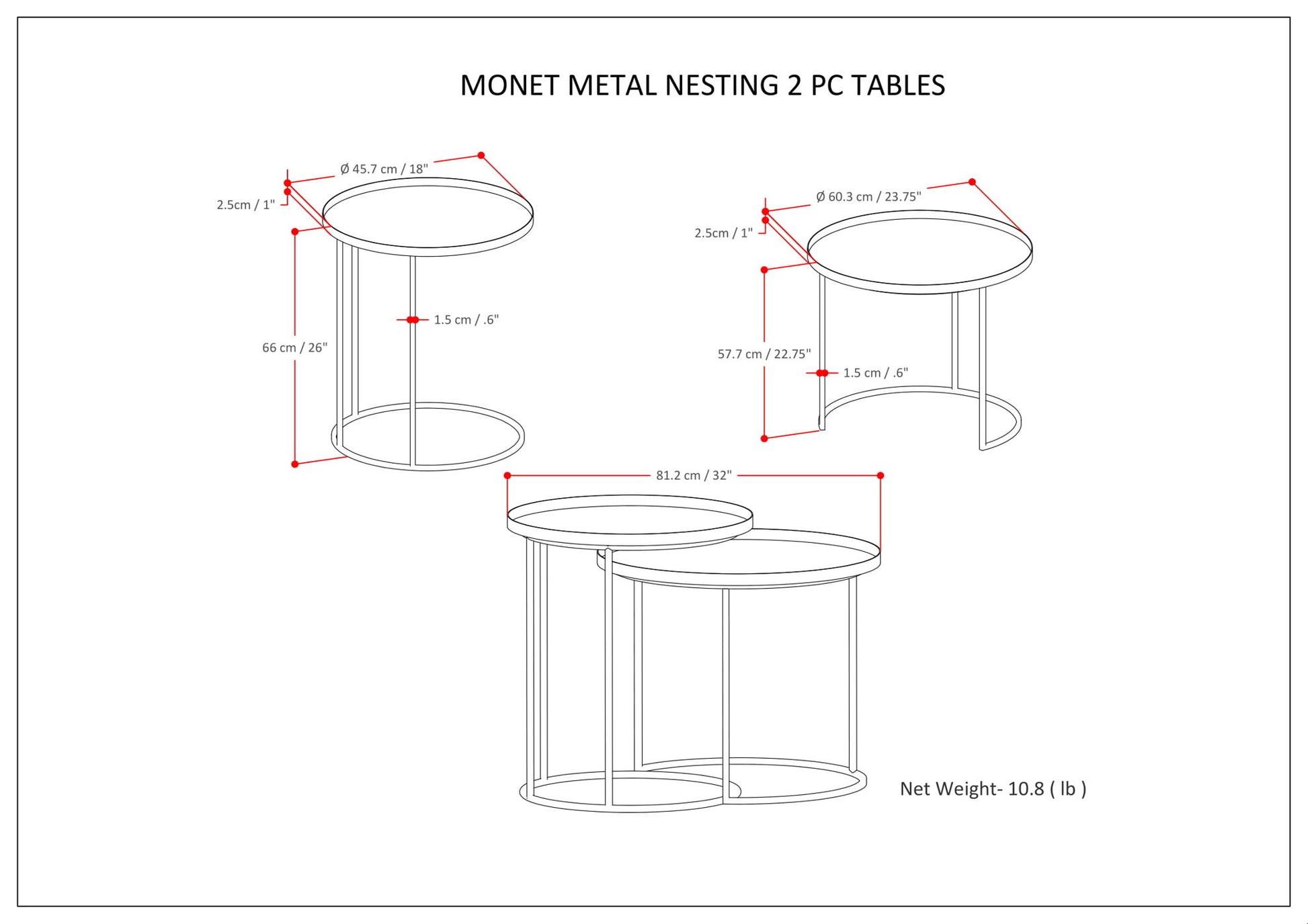 Monet - Metal 2 Piece Nesting Table - Black