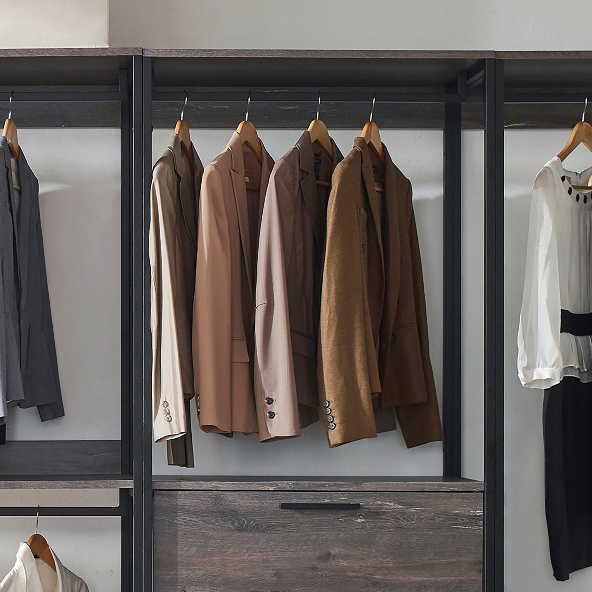 Monica - Wood Walk In Closet System With Modular Design Melamine - Rustic