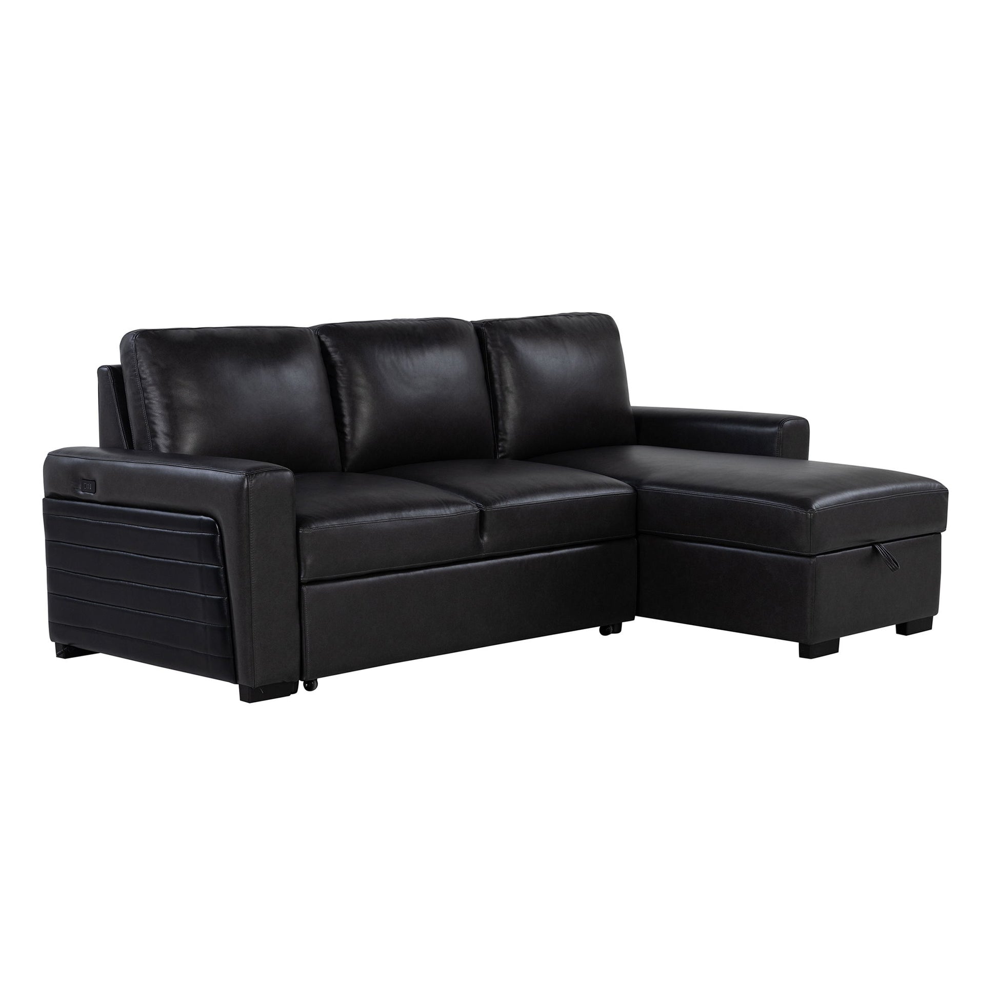 Montero - Sofa With Pull Out Bed, Drop Down Table, USB And Cup Holders, Storage Chaise - Charcoal Black