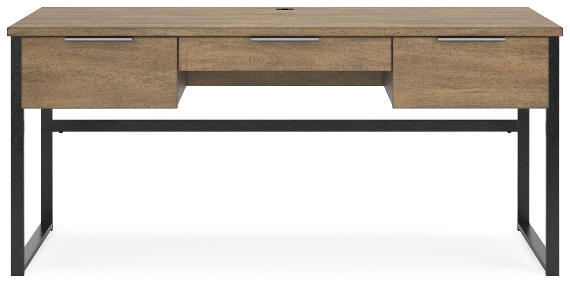 Sleek in its simplicity, this home office desk encourages you to work or study in style. Its mixed-material design brings a trendy, urban chic feel to your work area. Functional features keep the desk top clutter-free—easily tuck away essentials in the three drawers, and conceal power cords with the open raceway.