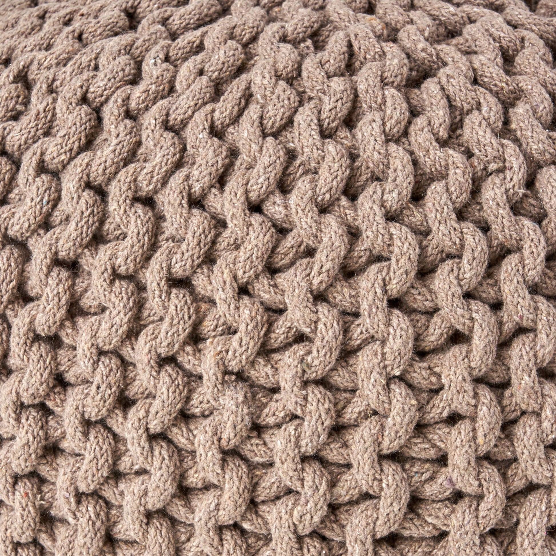 Moro - Knitted Cotton Round Pouf With Pumpkin Shape - Brown