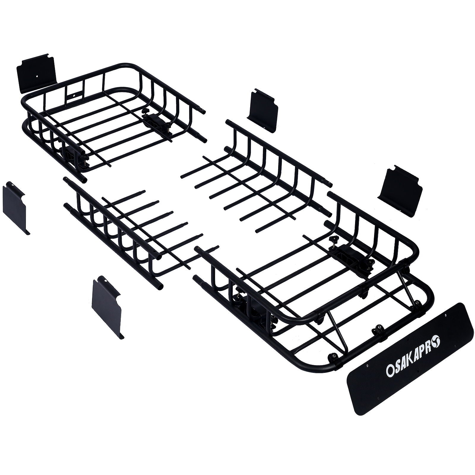Rooftop Cargo Carrier Basket Universal Fit 64" Steel With Wind Fairing - Black