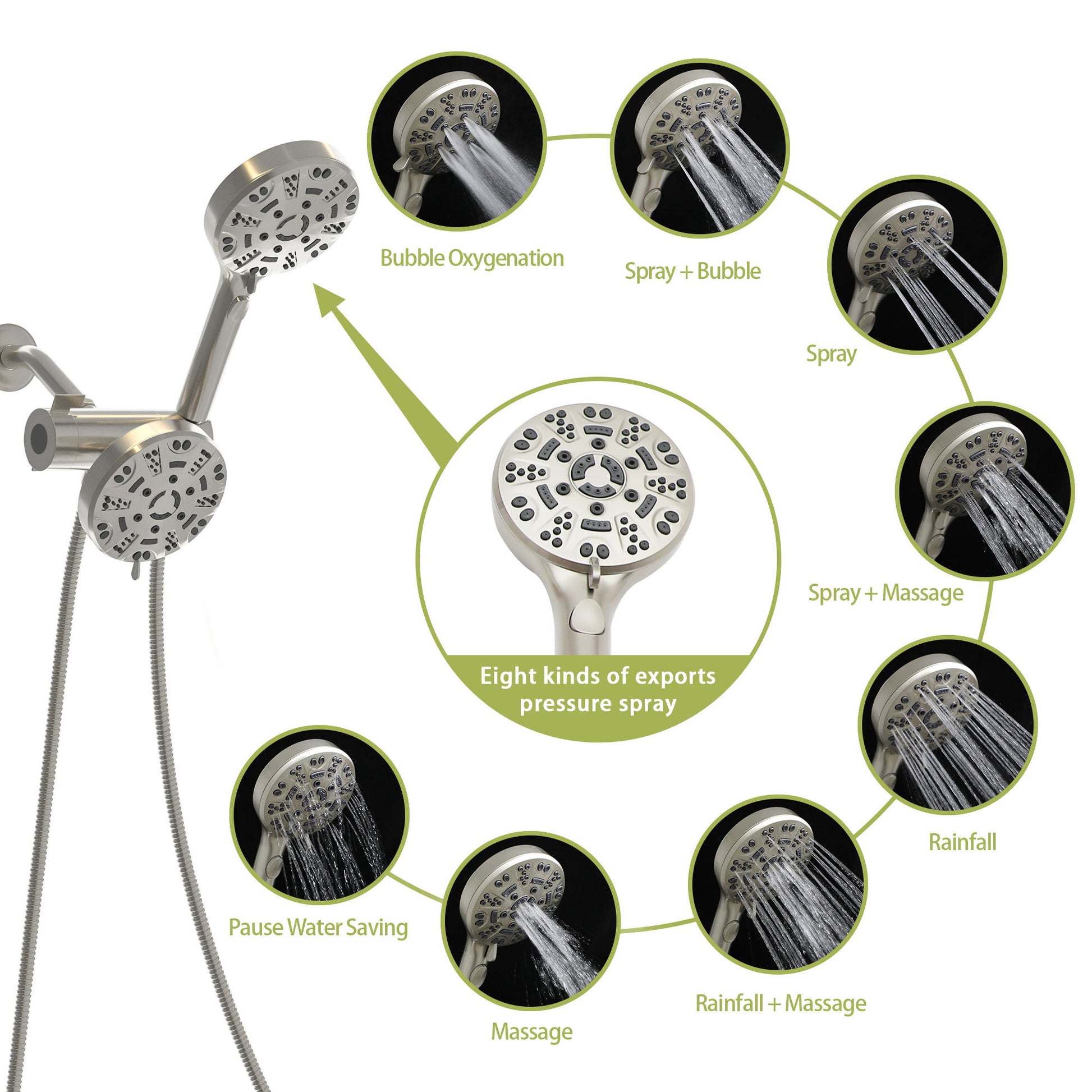 - Versatile Settings: Choose from 8 different modes including rain, massage, and spray for a customized shower experience.