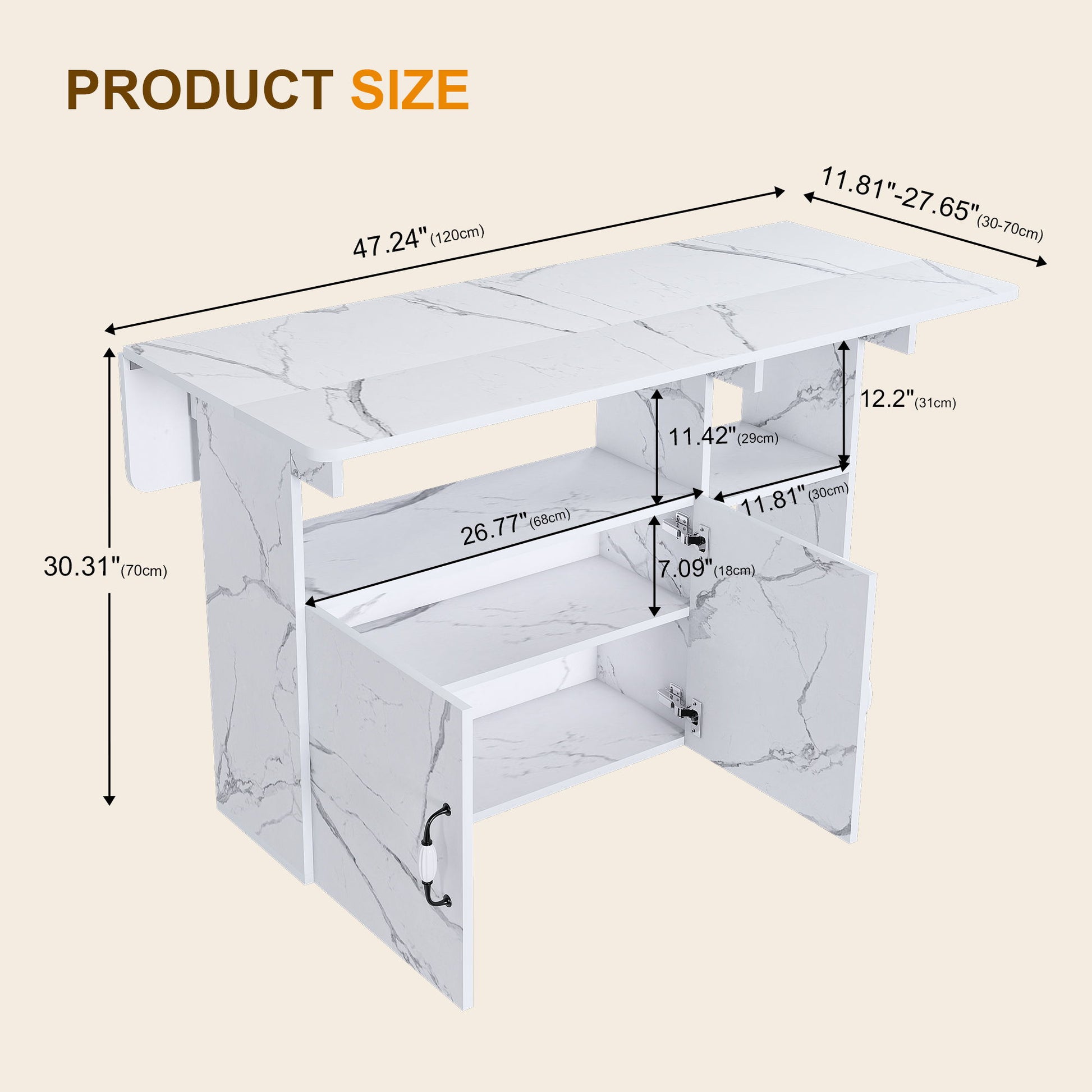 Multifunctional Folding Table With Storage Shelves And Wheels, Compact Desk For Kitchen - White