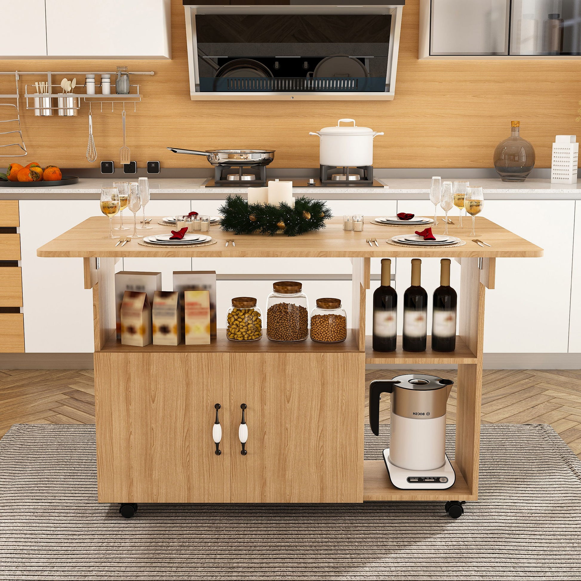 Multifunctional Folding Table With Storage Shelves And Wheels, Compact Desk For Kitchen - Walnut