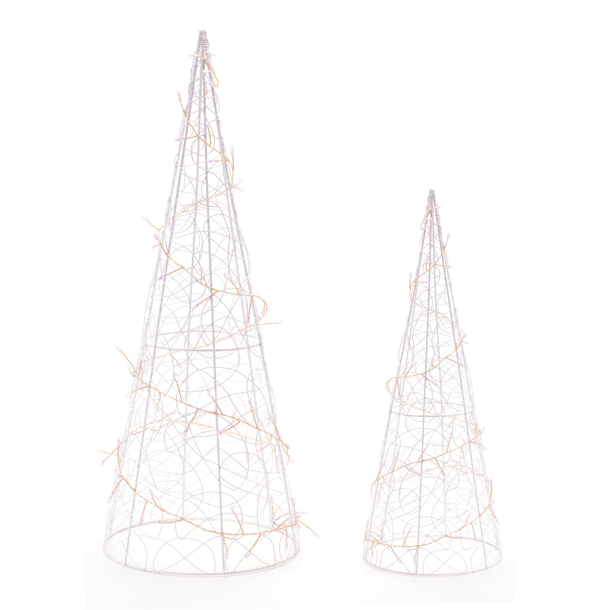 Add a vibrant pop of color to your holiday décor with this Multicolor LED Tree Set. Featuring bright rainbow hues and a classic cone-shaped design, these illuminated trees bring a whimsical and festive ambiance to any space. With mini LED bulb accents and a UL plug with a remote for easy control, this set is perfect for entryways, beside your Christmas tree, or as a dazzling centerpiece on your mantel or tabletop.