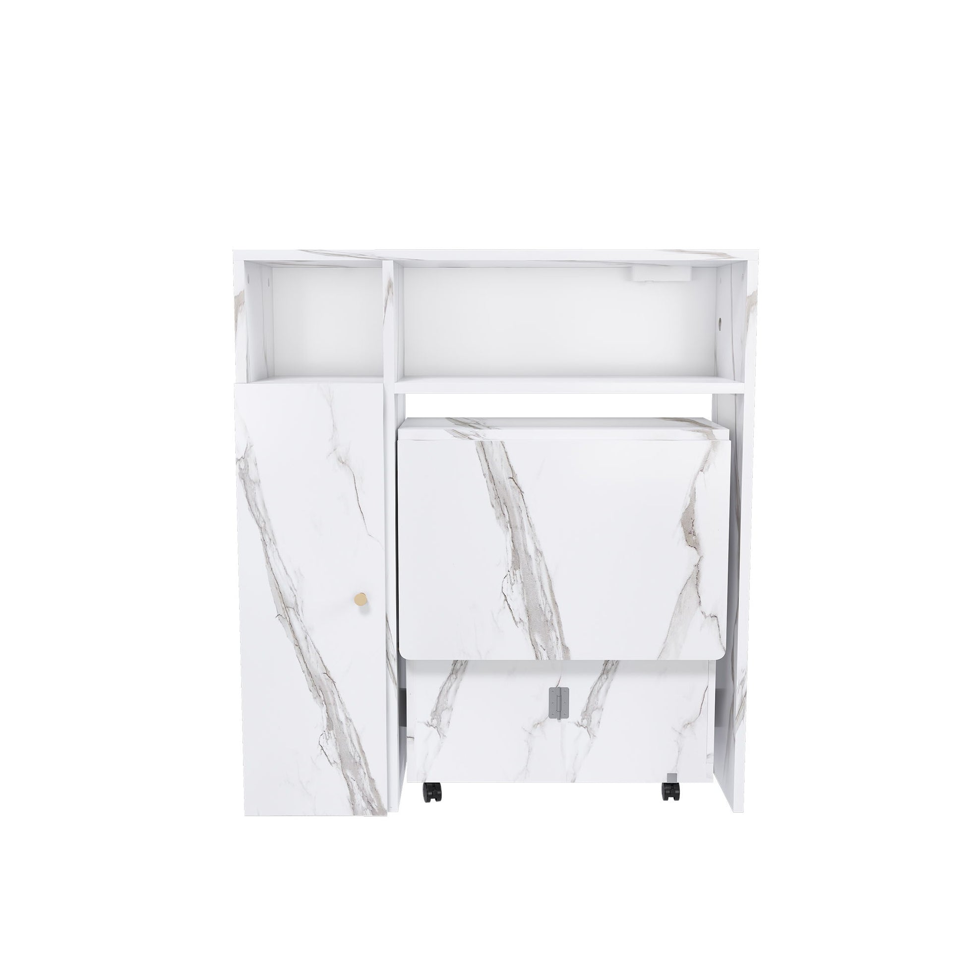 Multifunctional Folding Dining Table With Wall Mounted Sideboard & Storage Space Saving Design - White