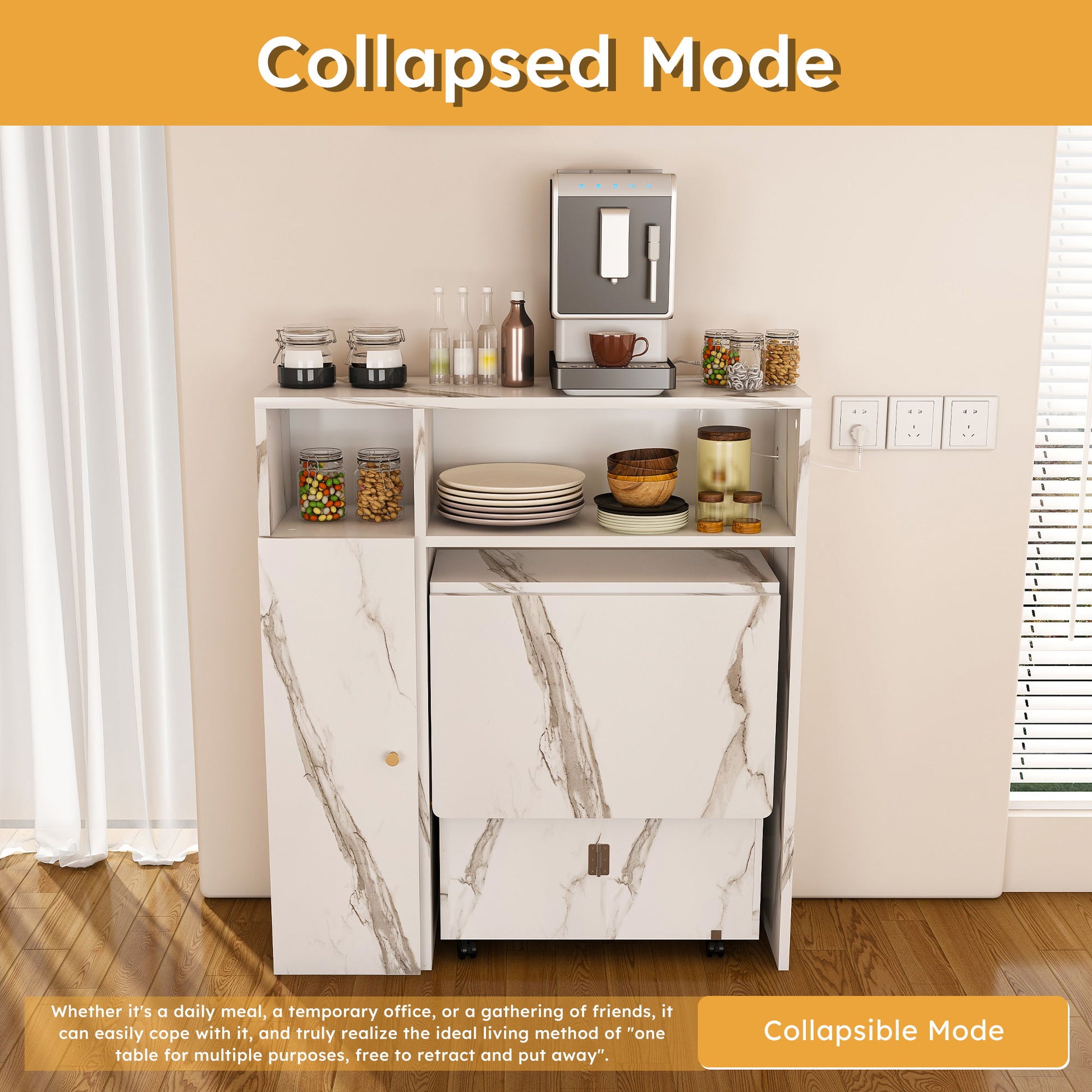 Multifunctional Folding Dining Table With Wall-Mounted Sideboard & Storage