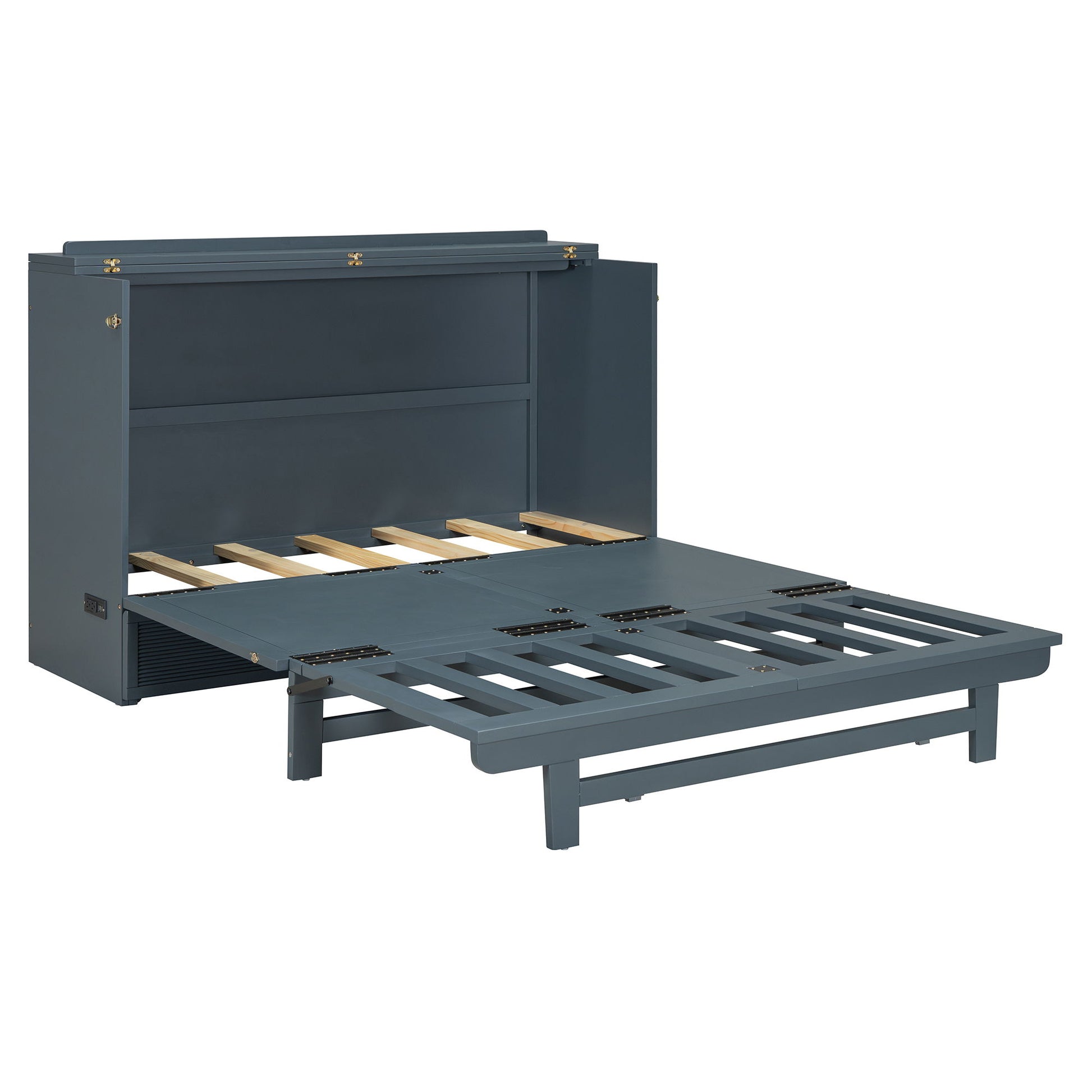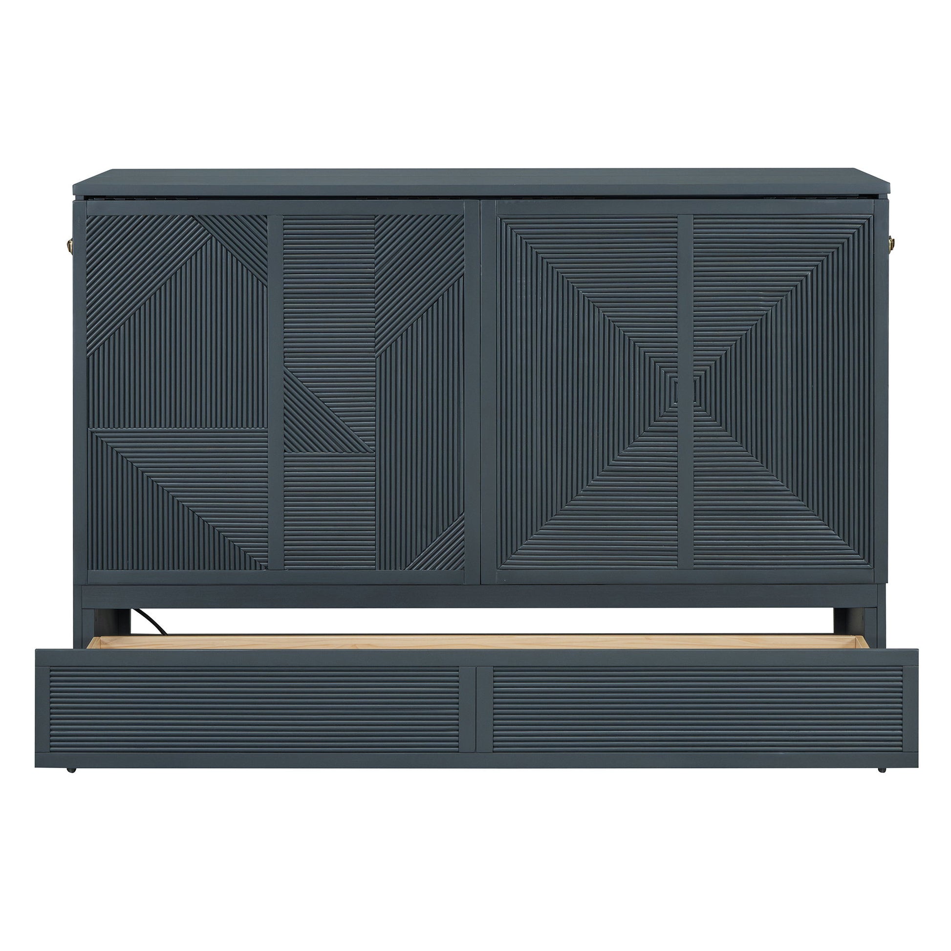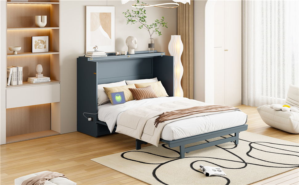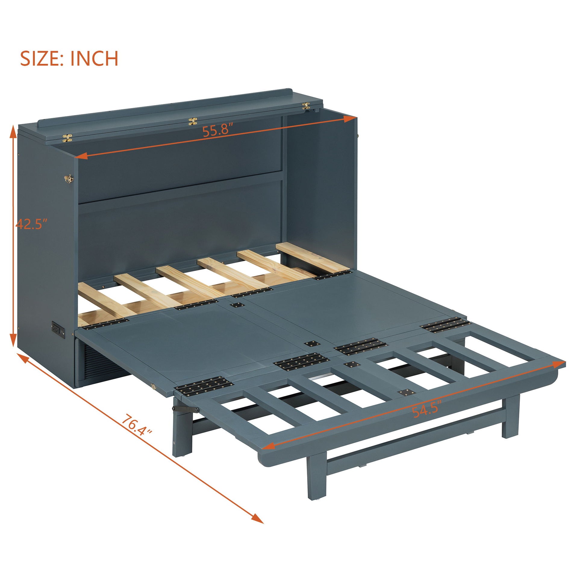 Queen Size Murphy Bed With Large Drawer, USB Ports And Outlets - Gray