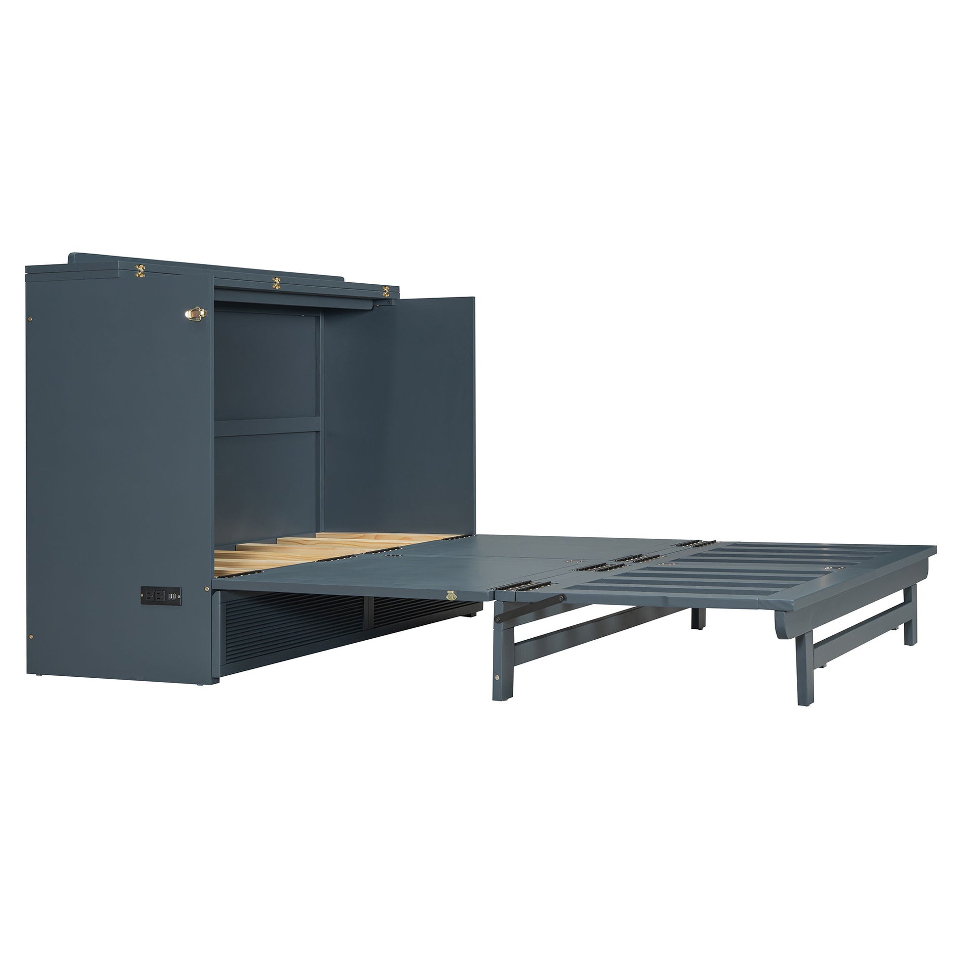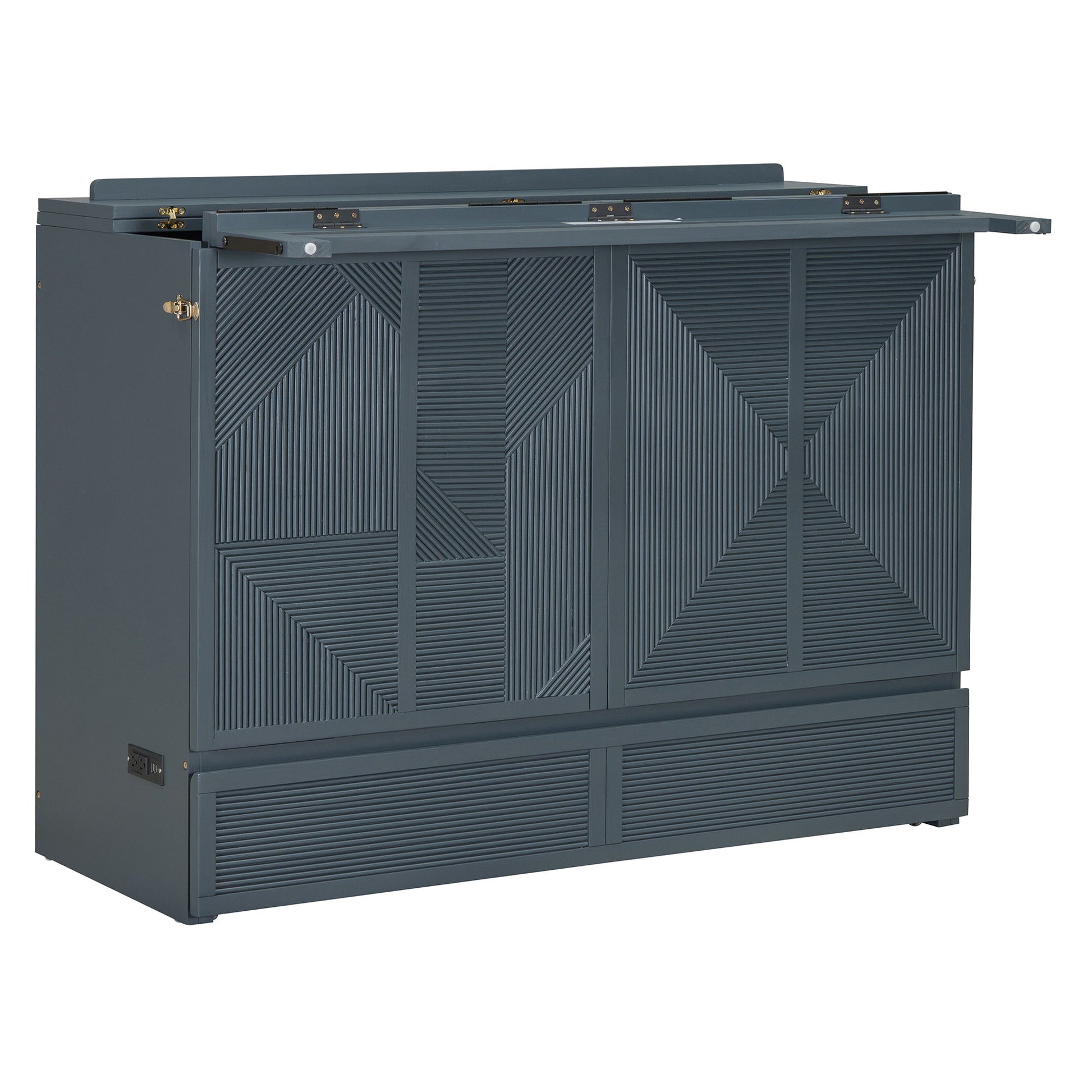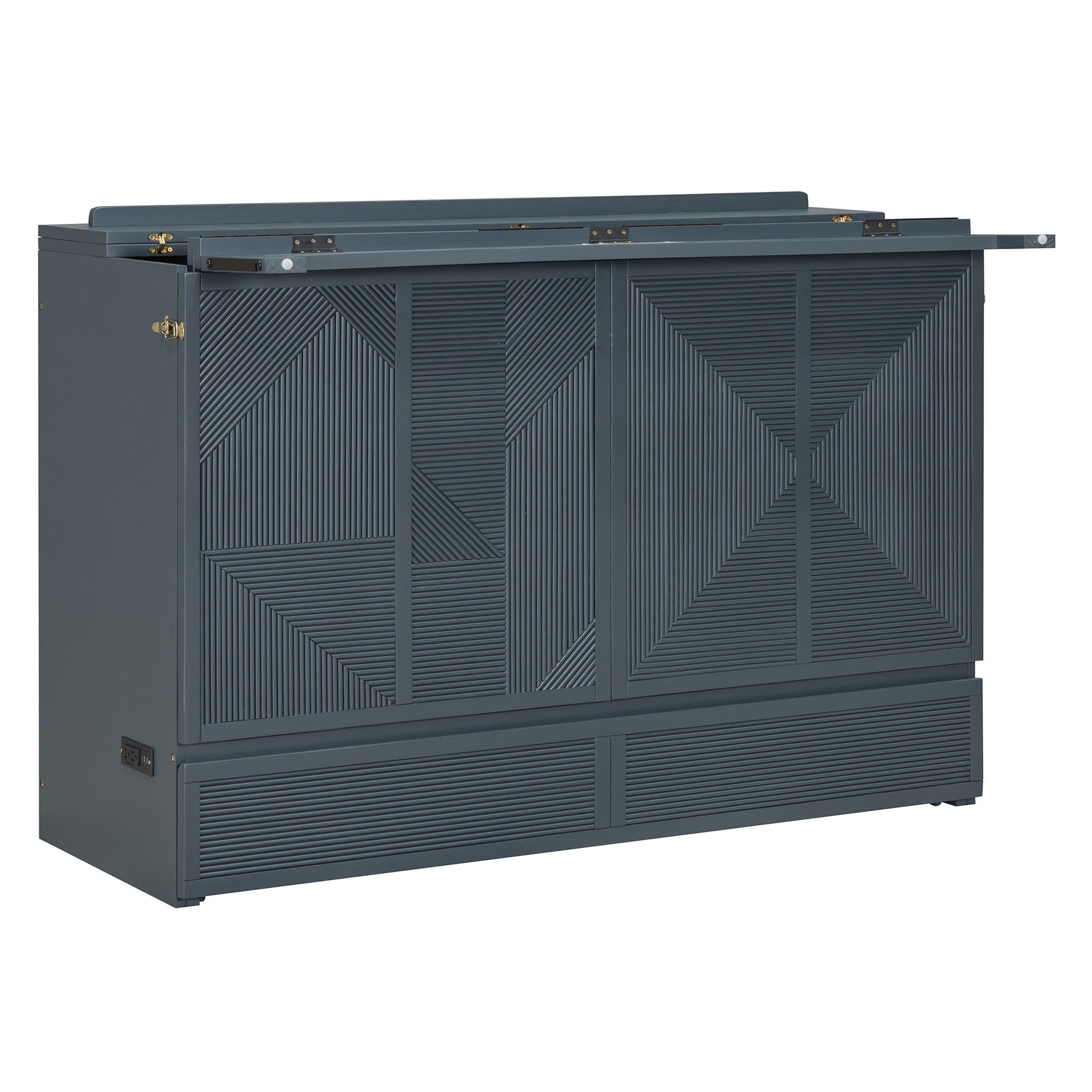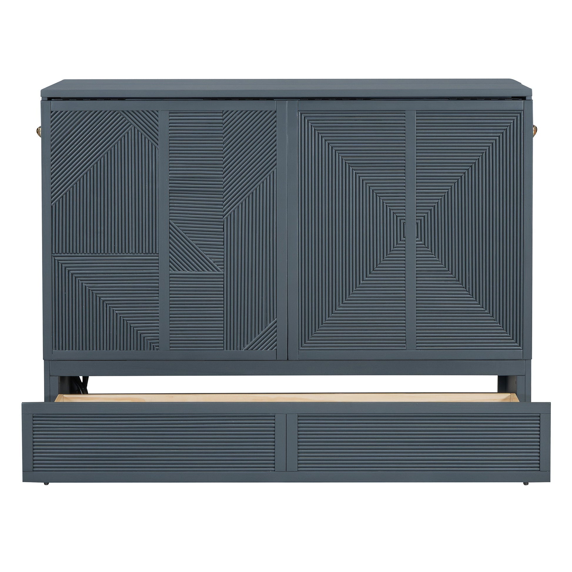 Queen Size Murphy Bed With Large Drawer, USB Ports And Outlets - Gray