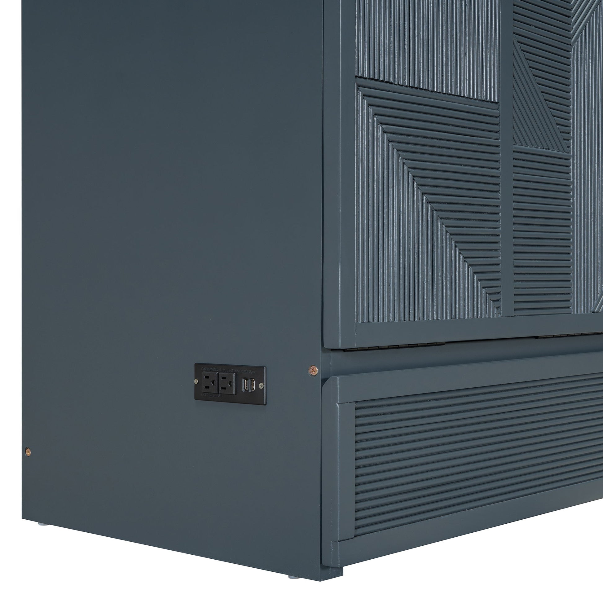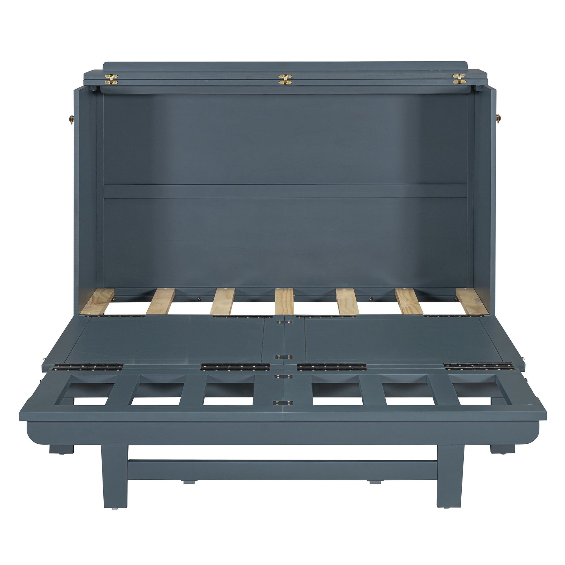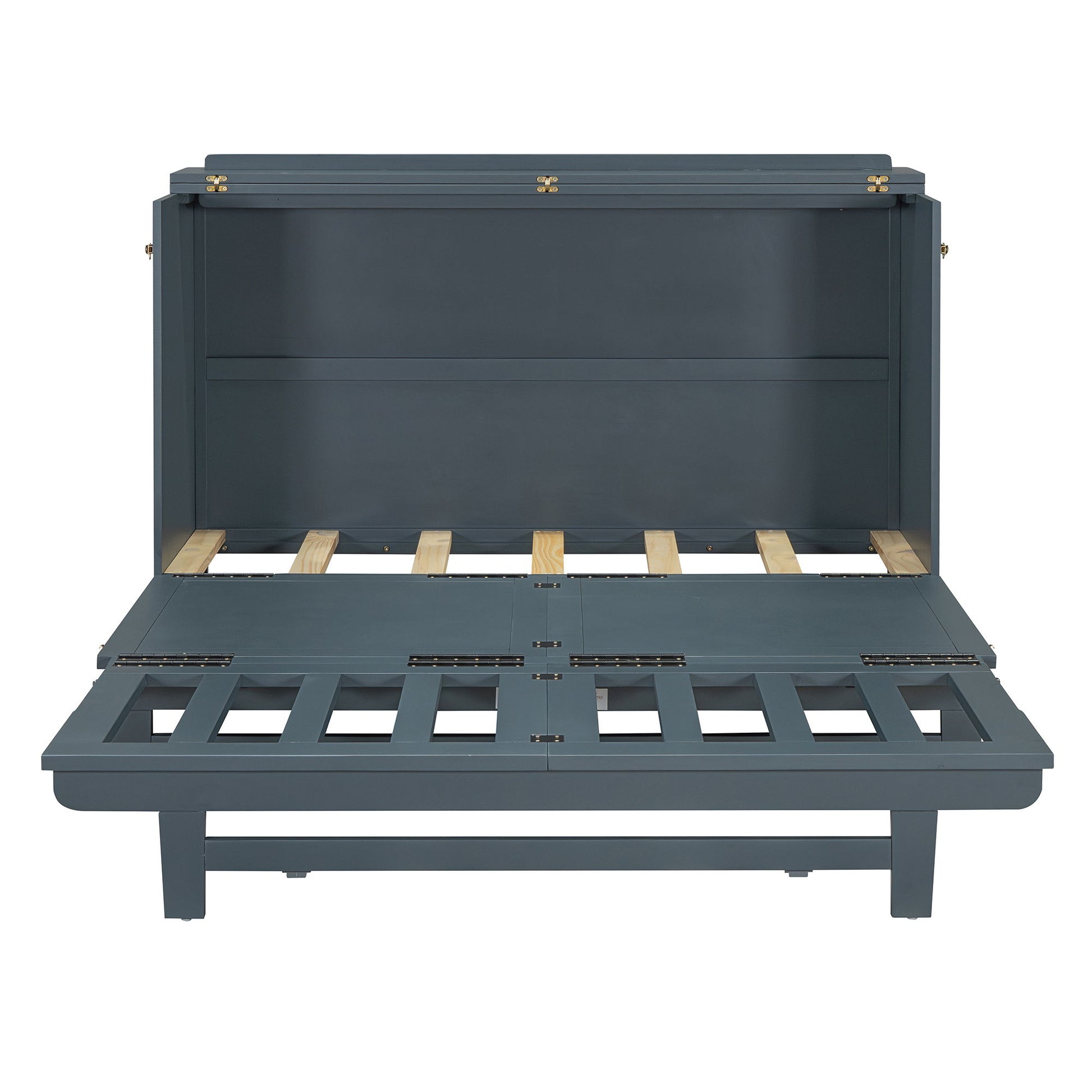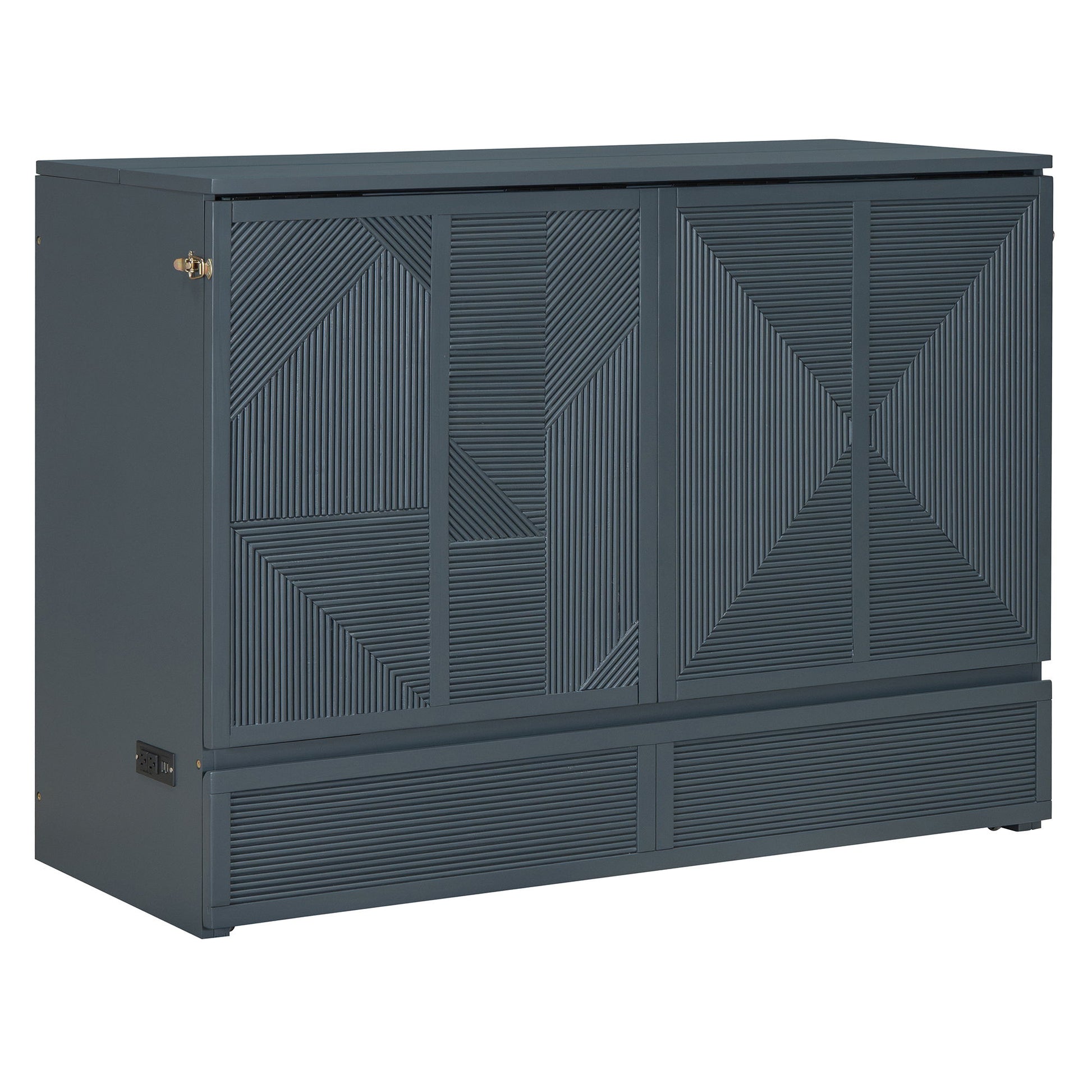 Queen Size Murphy Bed With Large Drawer, USB Ports And Outlets - Gray