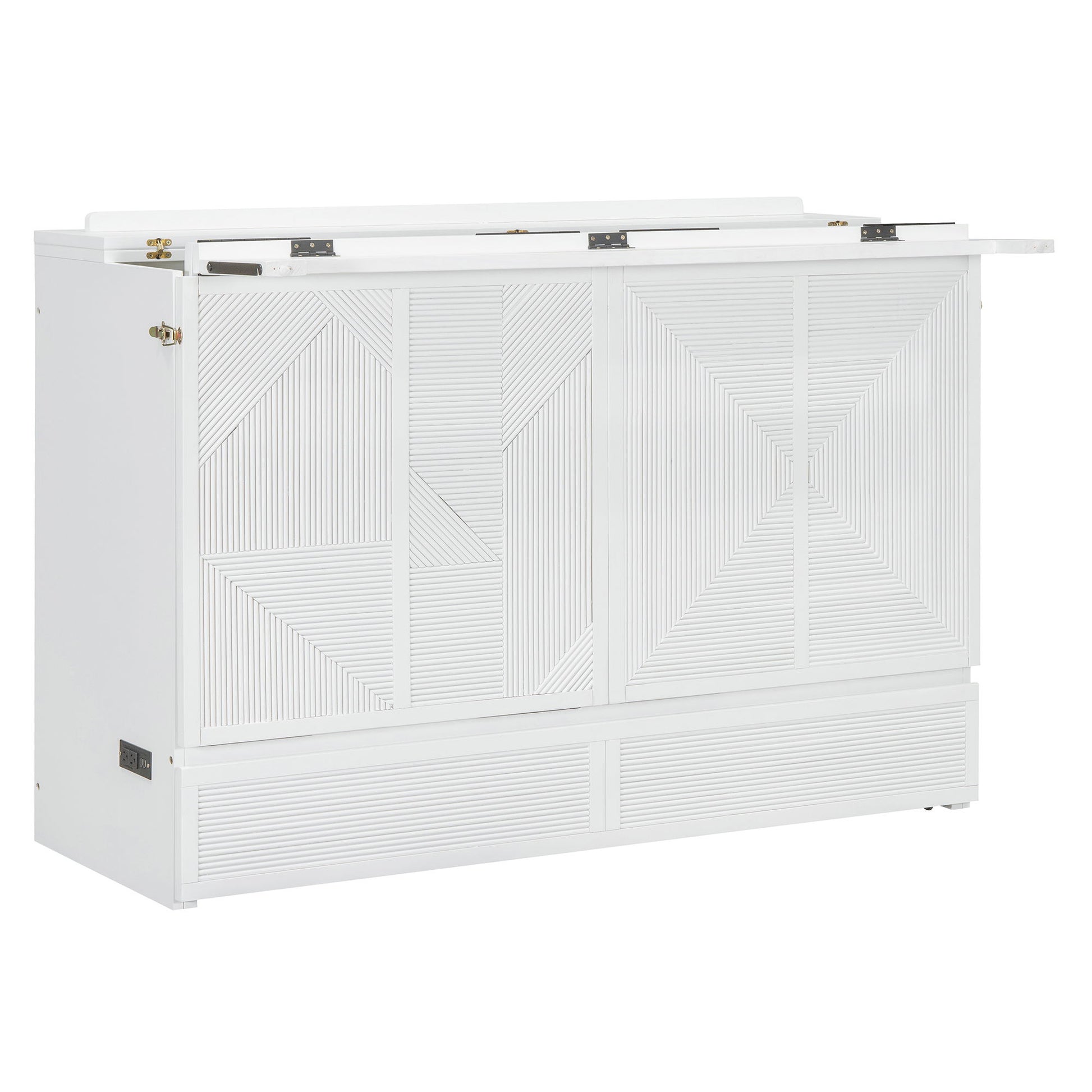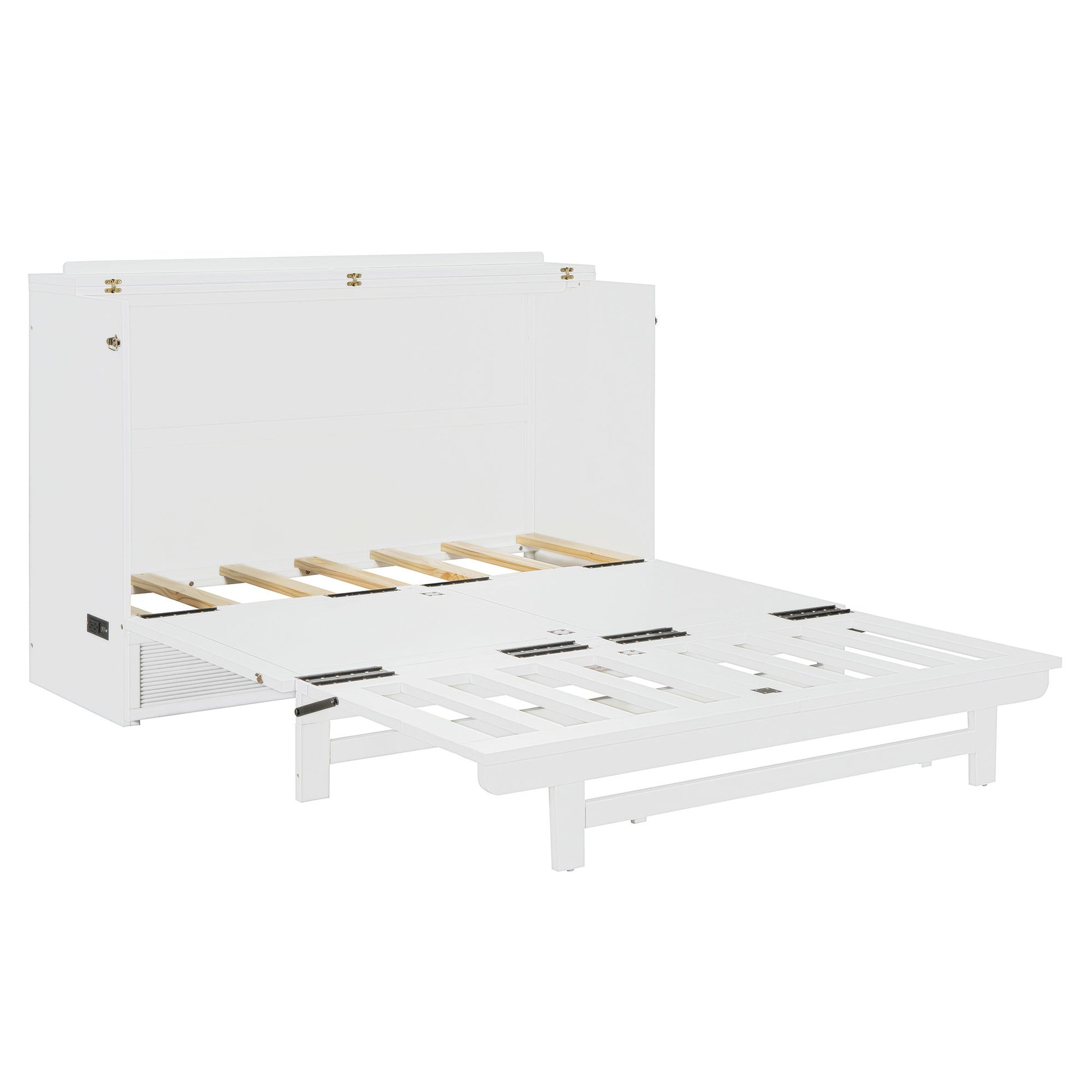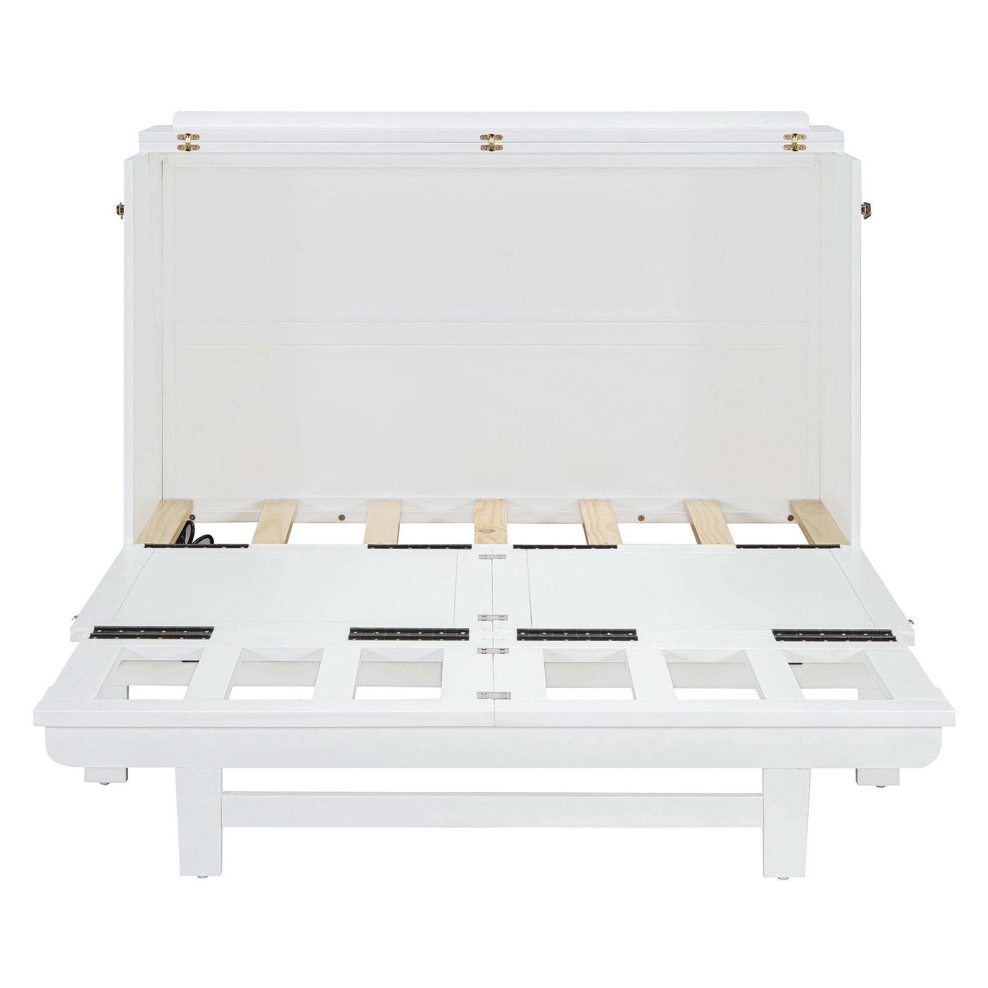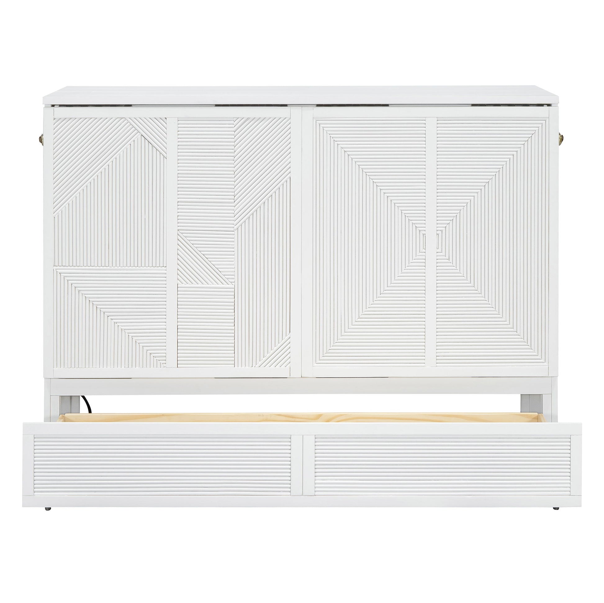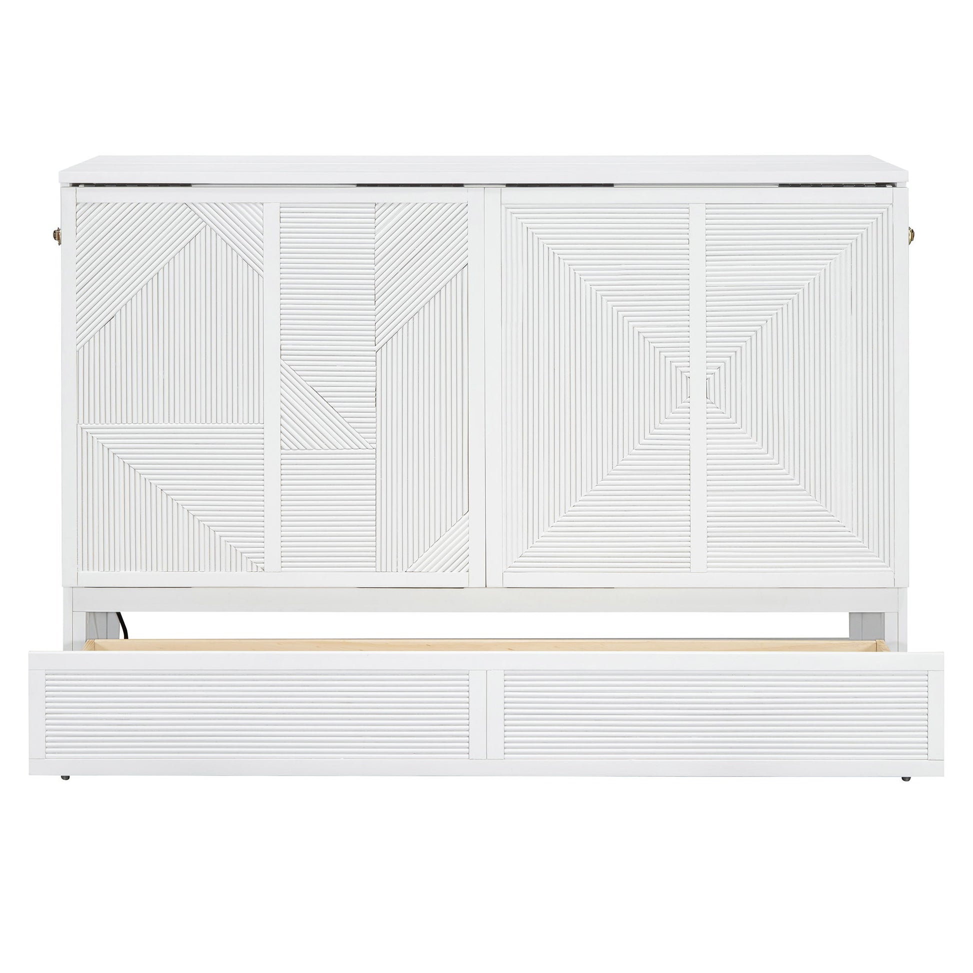 Queen Size Murphy Bed With Large Drawer, USB Ports And Outlets - White