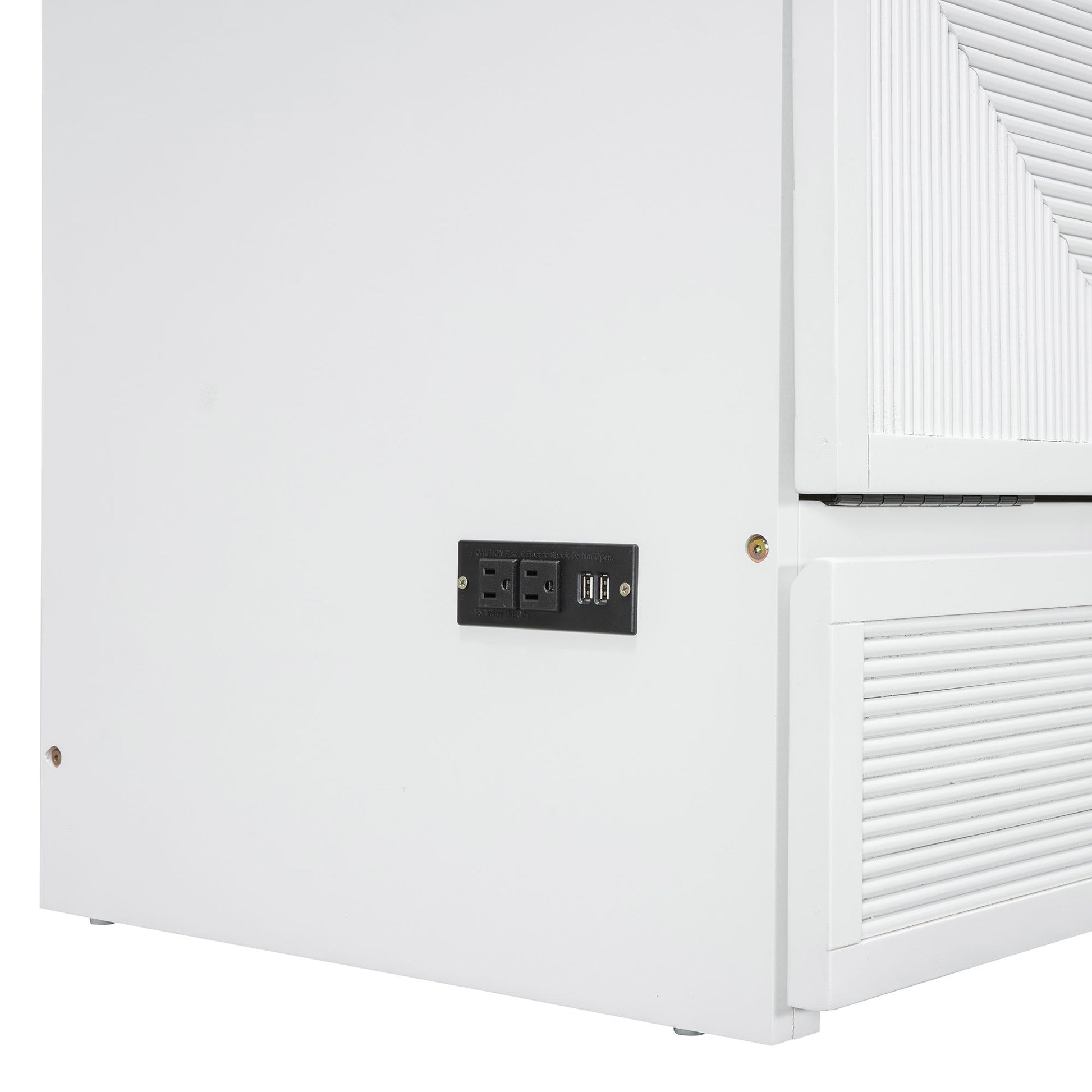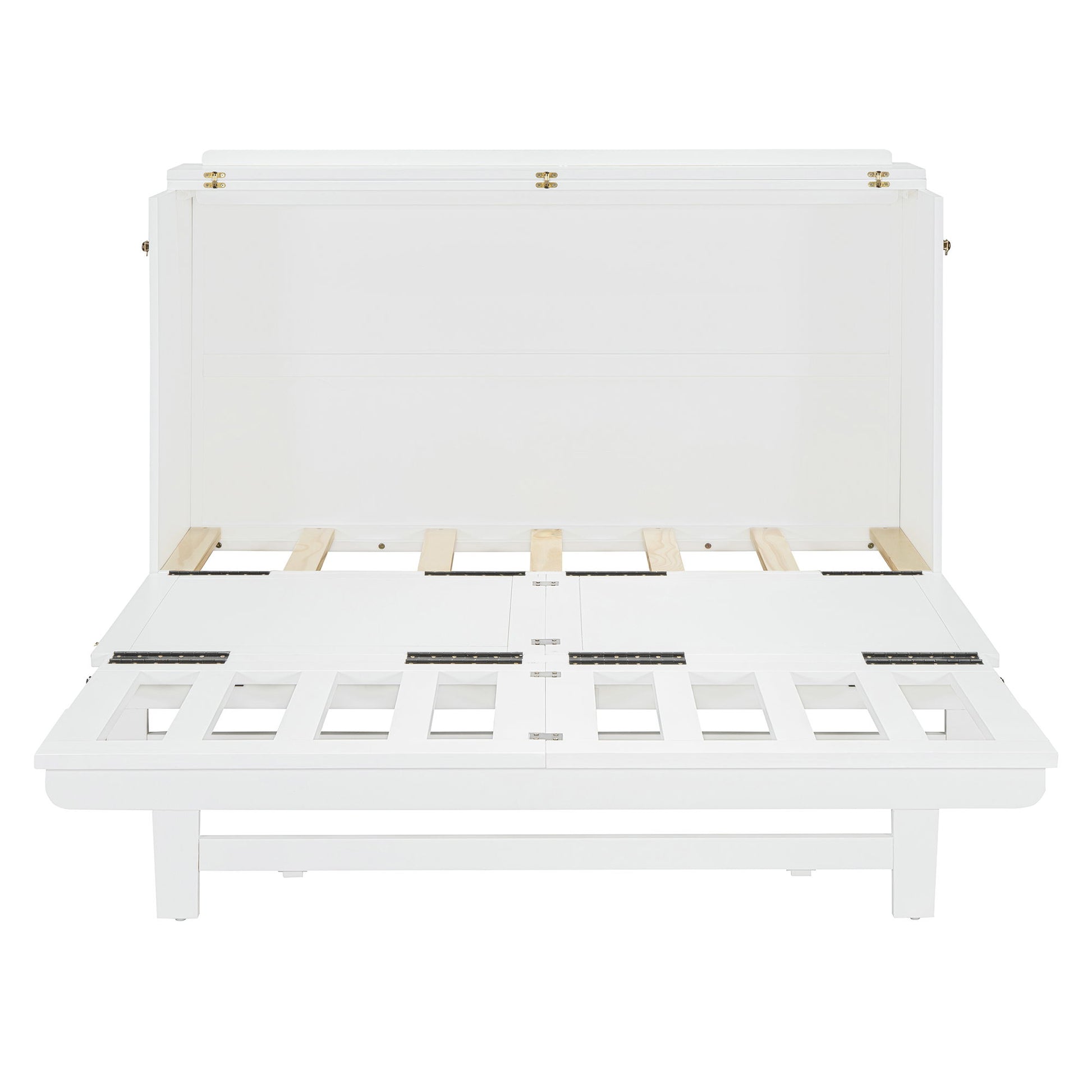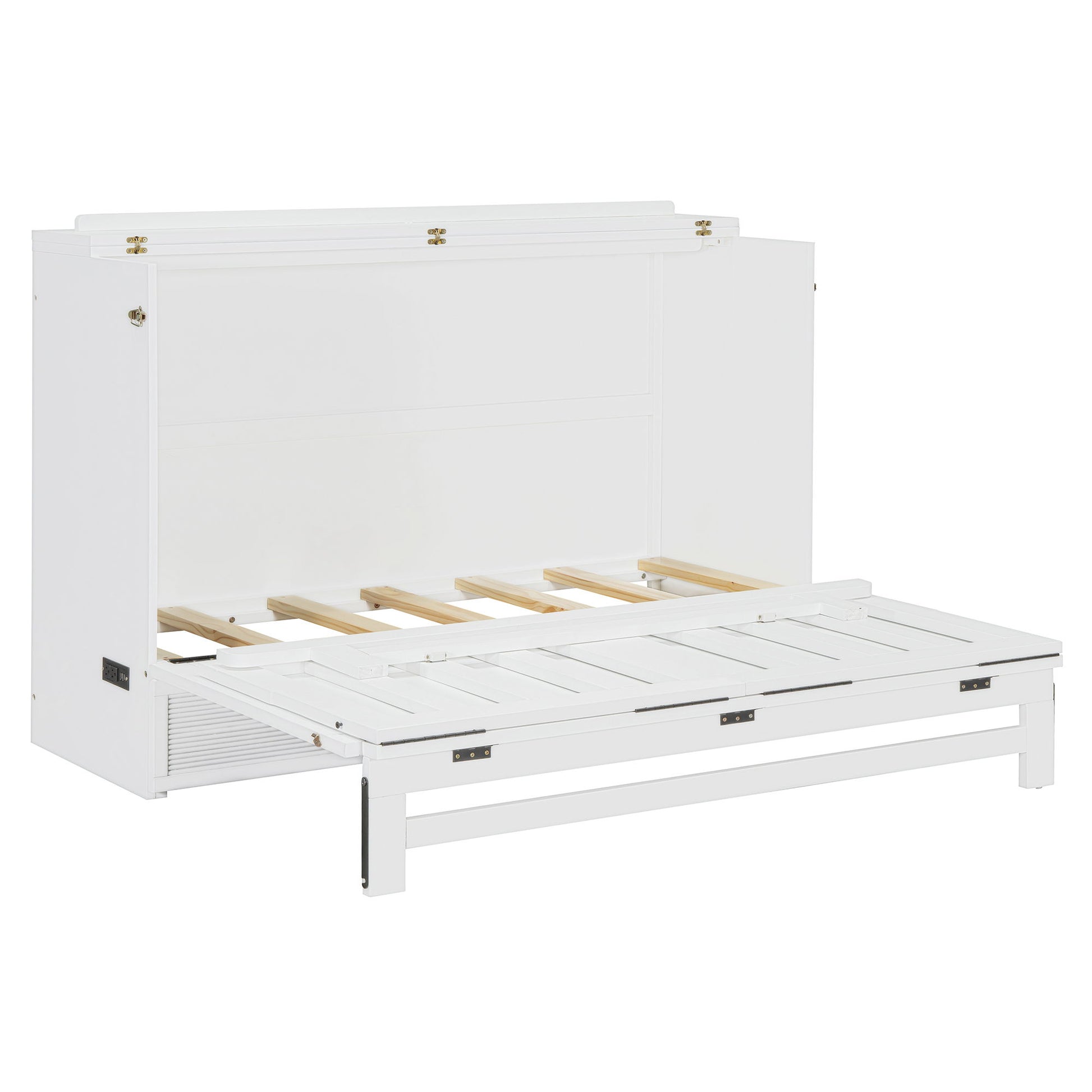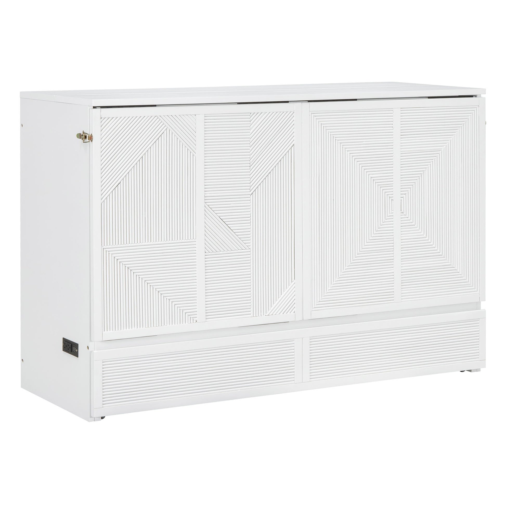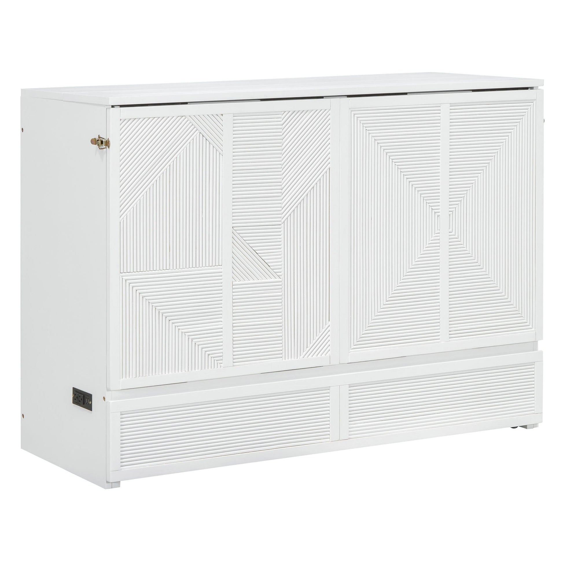 Queen Size Murphy Bed With Large Drawer, USB Ports And Outlets - White