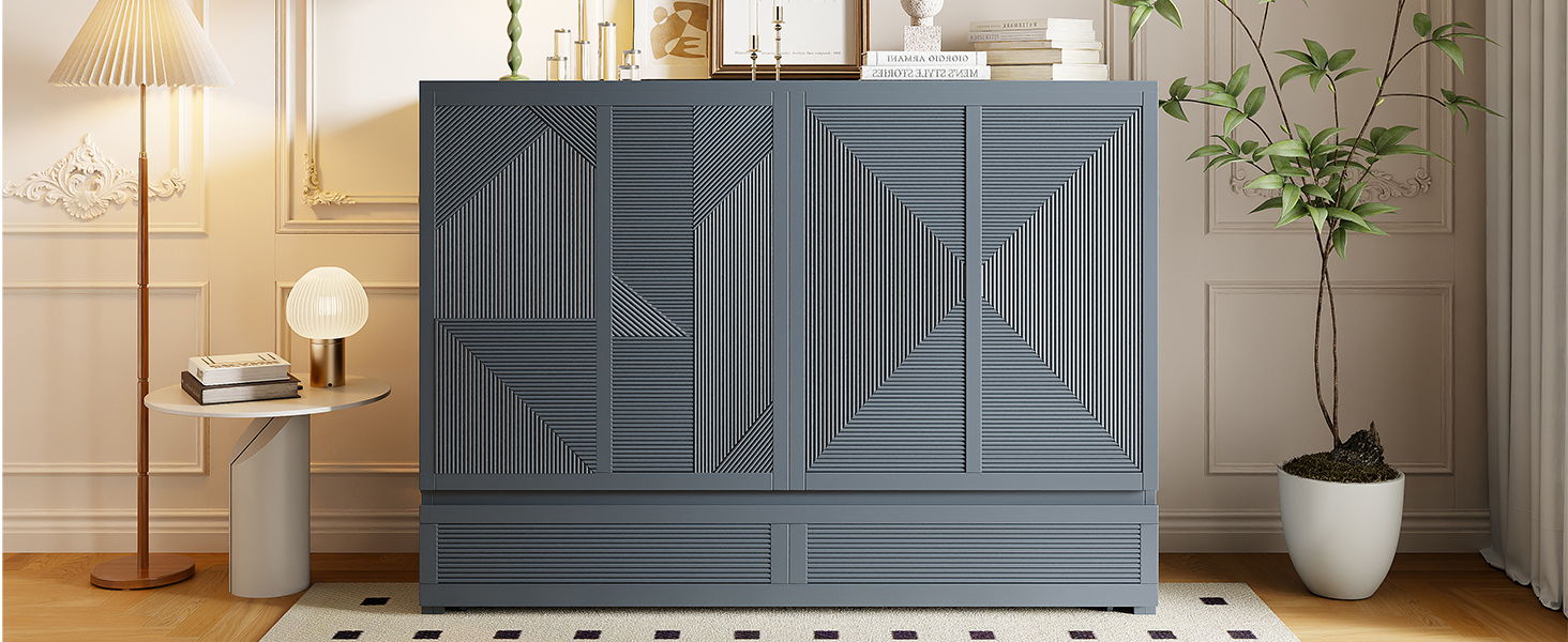 Stylish Design: With striped paneling and a unique decorative surface, this bed is a chic addition to any room, blending practicality with aesthetic appeal.