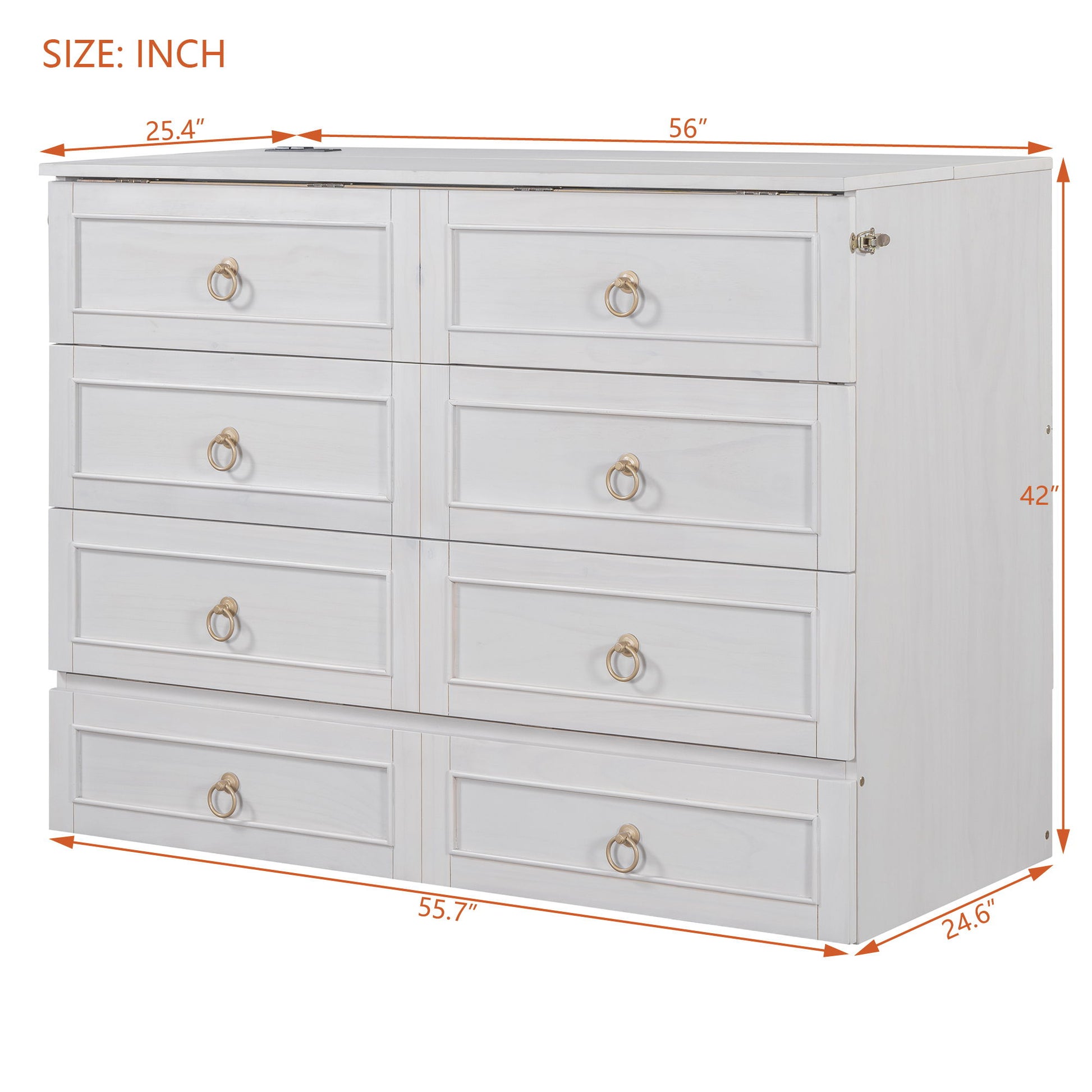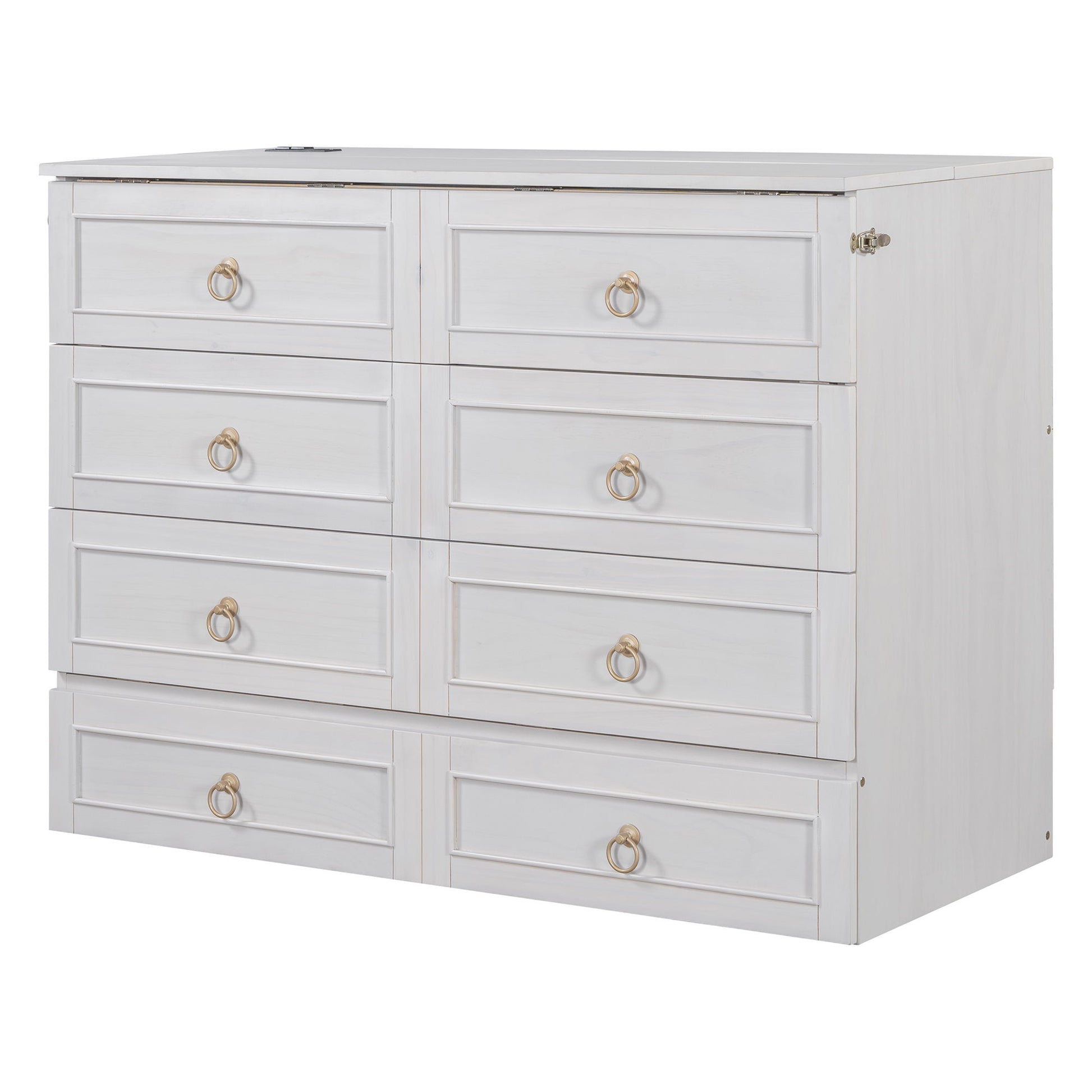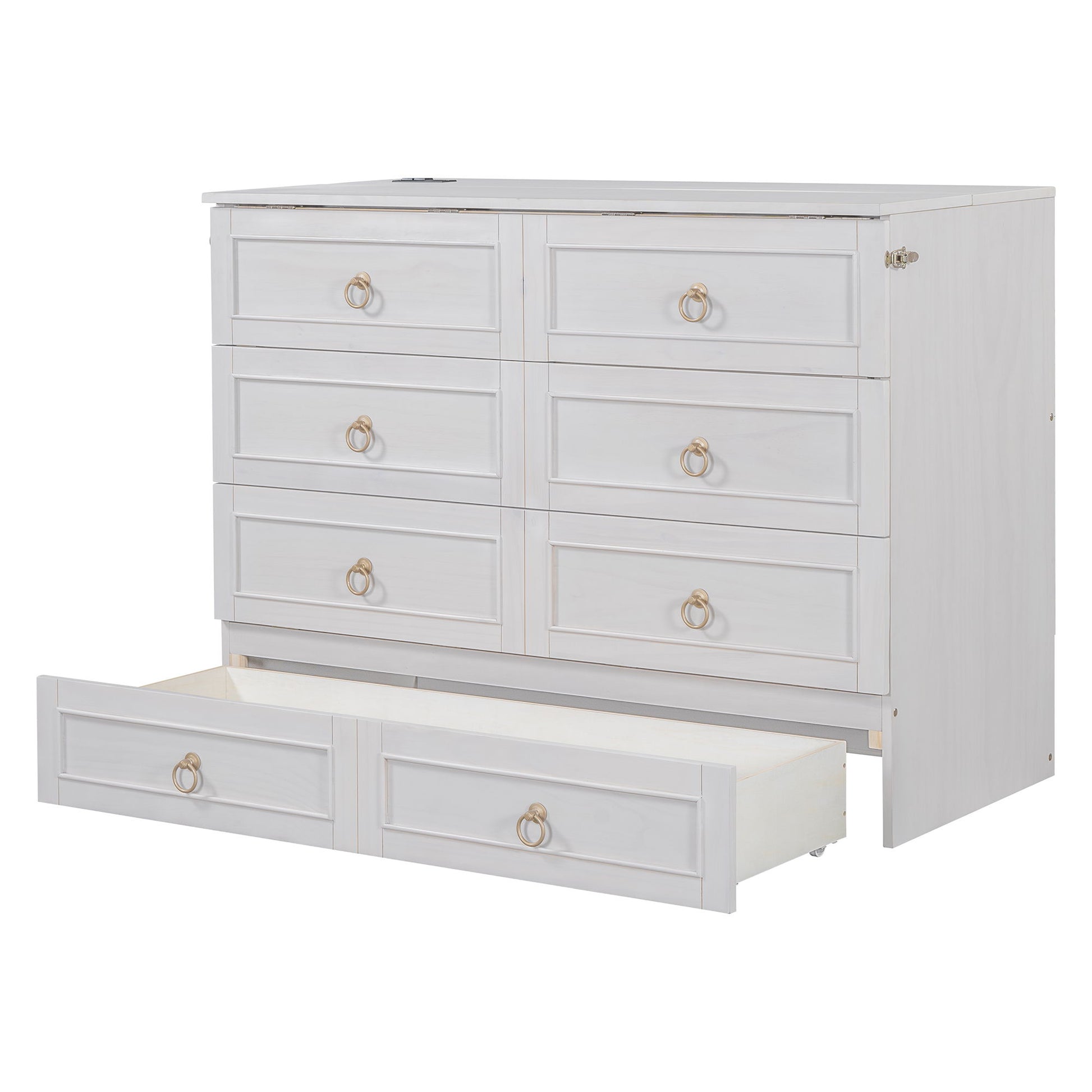 Full Size Murphy Bed With Large Drawers, Space Saving Design - White