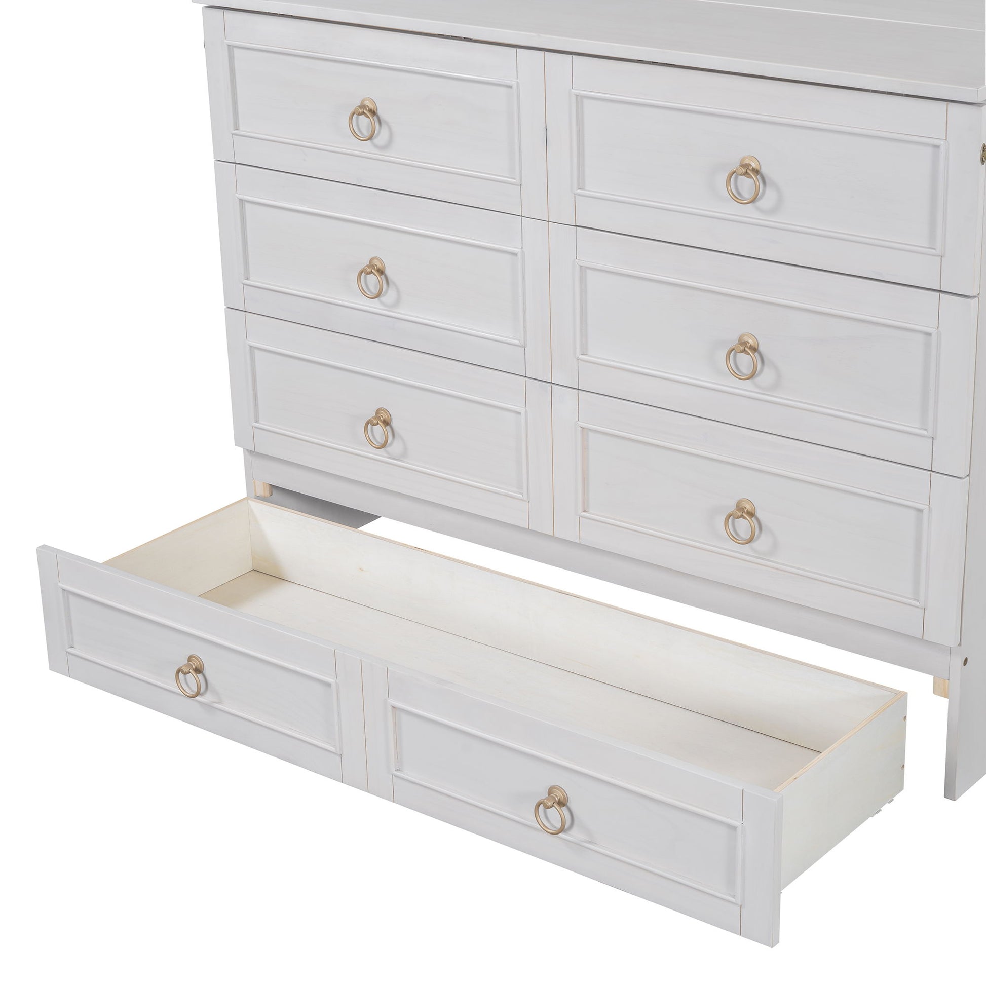 - Classic and Stylish Fusion: Features classic upper false drawers and rattan-patterned lower drawers for a sophisticated look. Assembly required with provided instructions. Mattress not included.