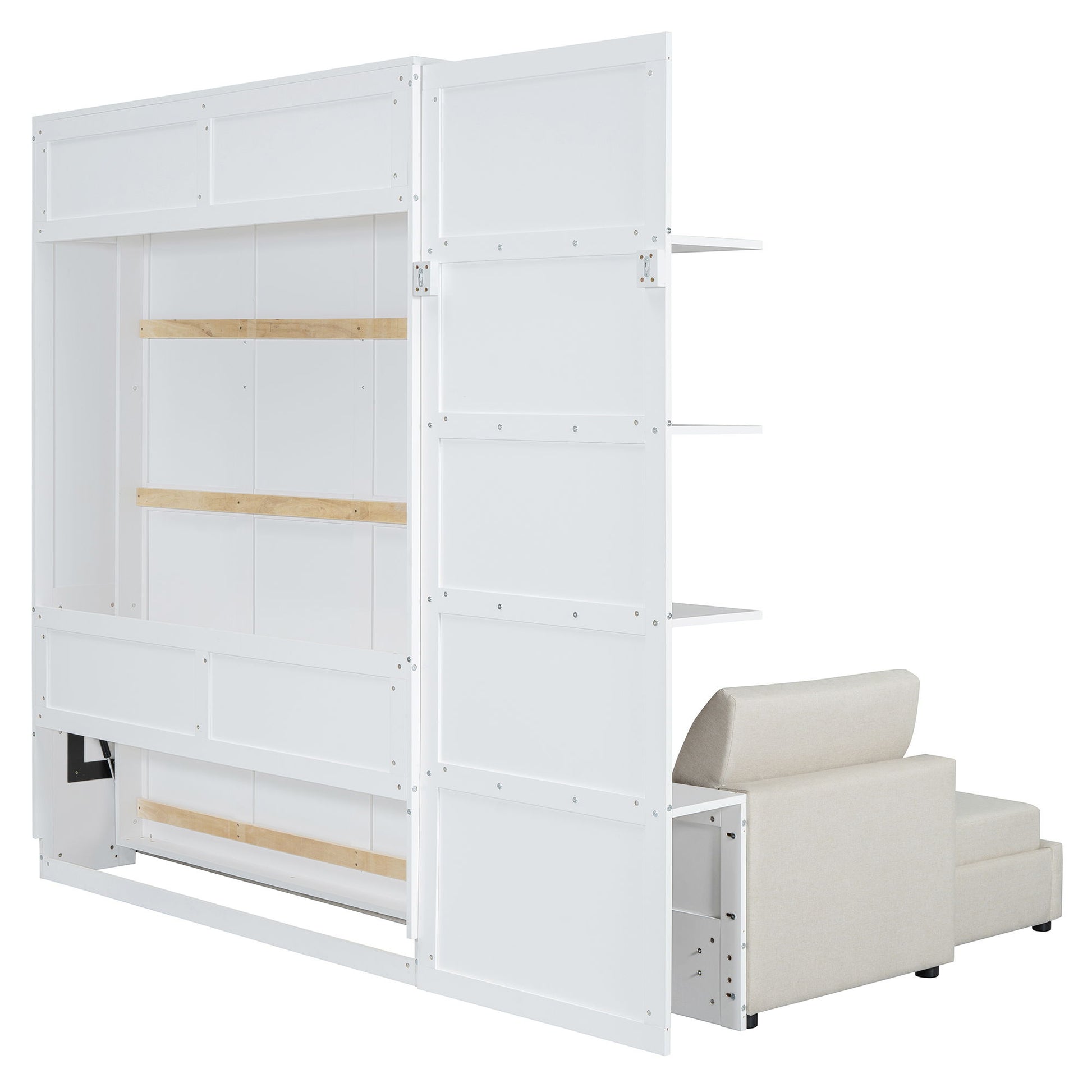 Queen Size Murphy Bed With Sofa And Shelves - White