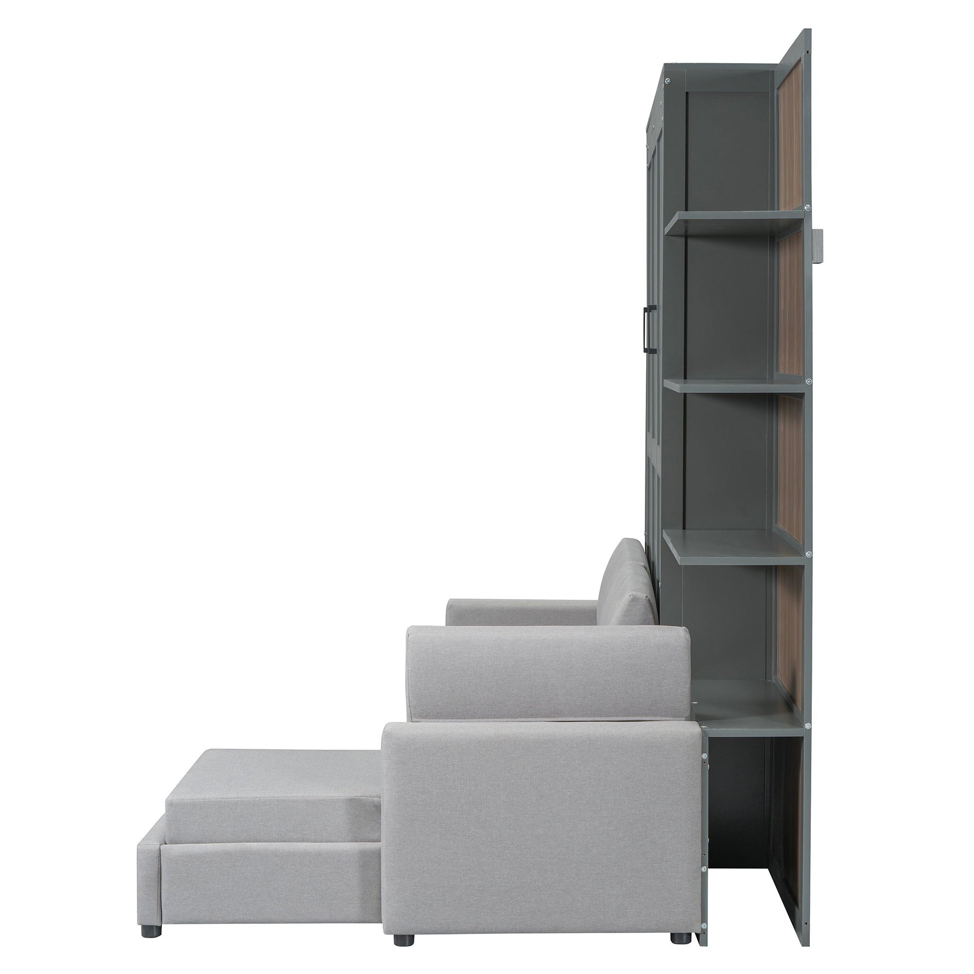 Queen Size Murphy Wall Bed With Sofa And Shelves - Gray