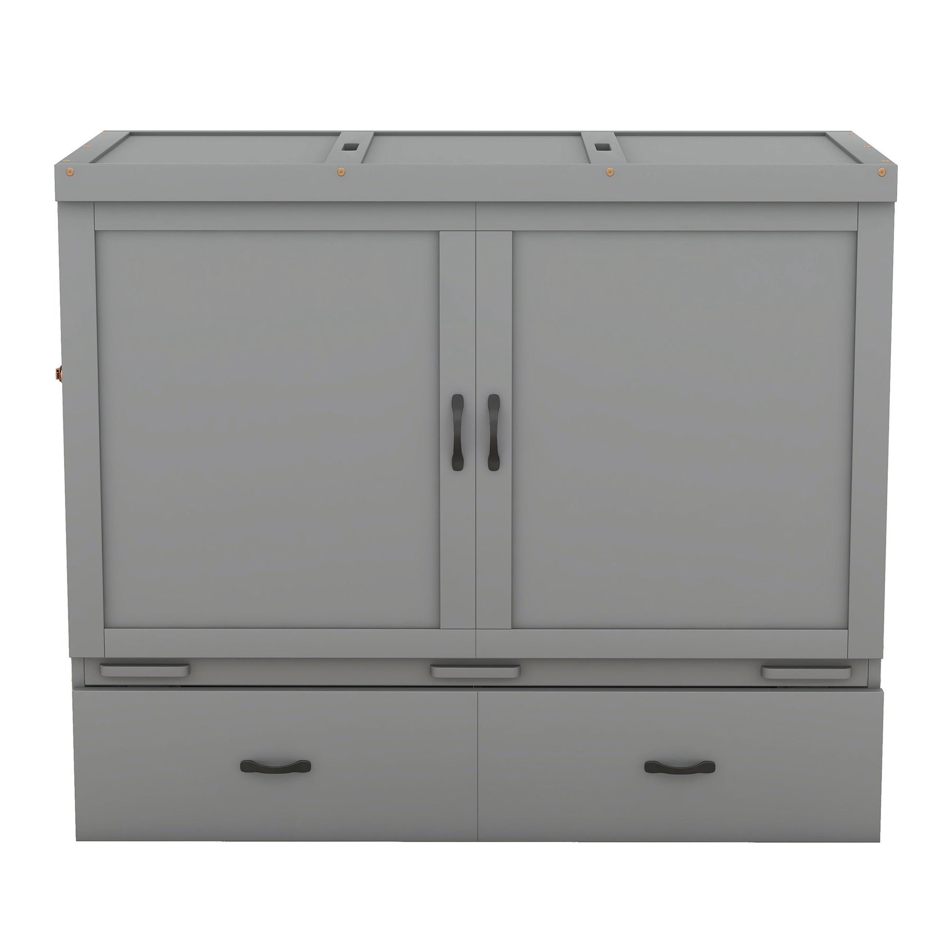 Full Size Murphy Bed With USB Port And A Large Drawer - Gray