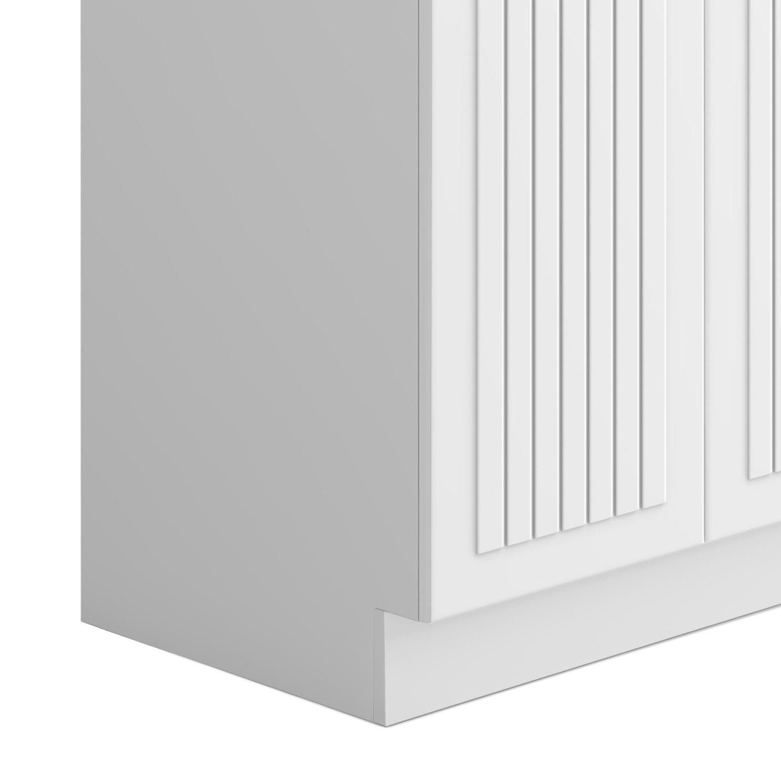 - Cabinet is constructed with melamine and doors are wrapped with PVC, materials that are highly durable, low maintenance, and water resistant