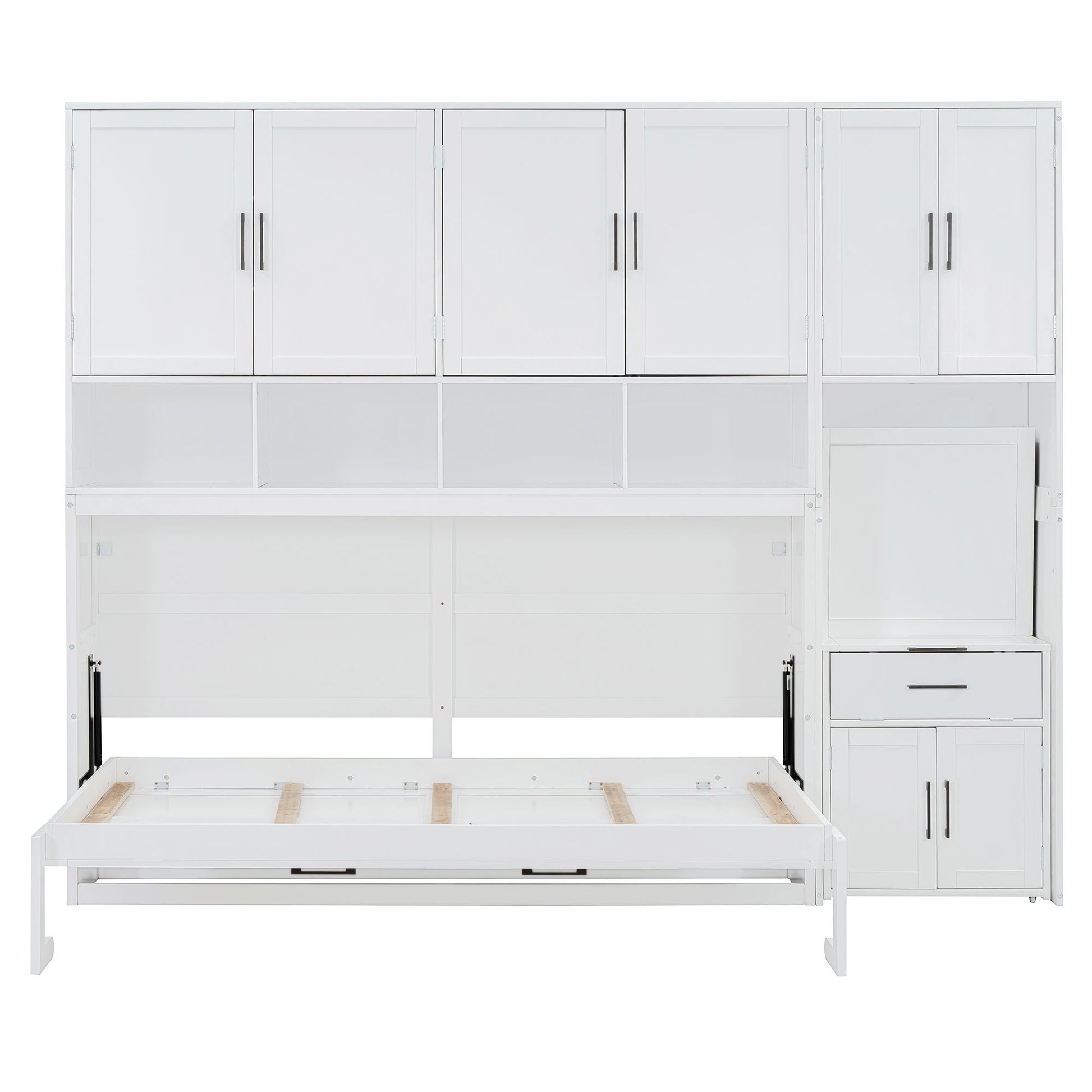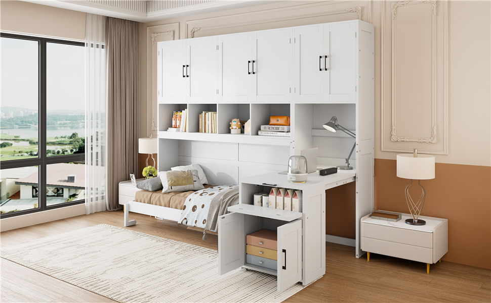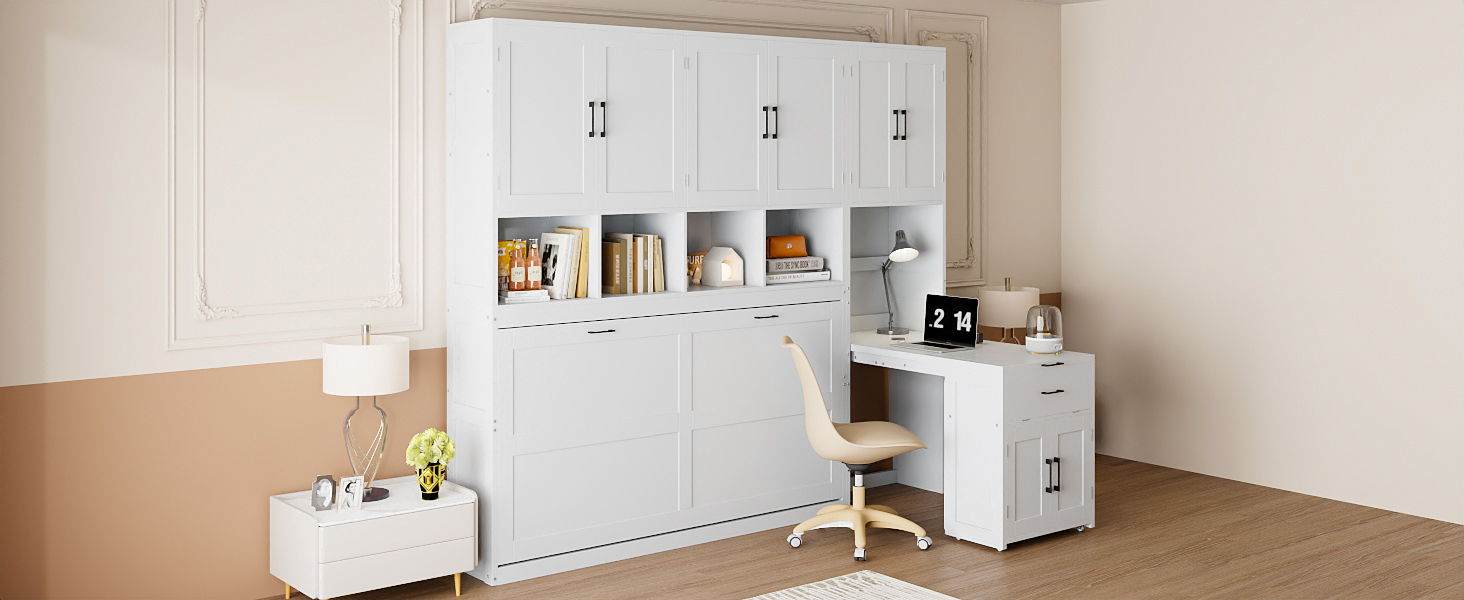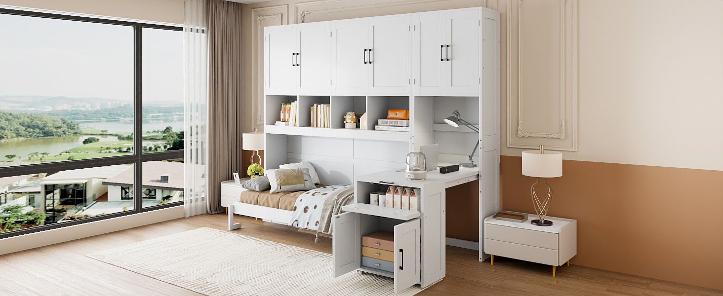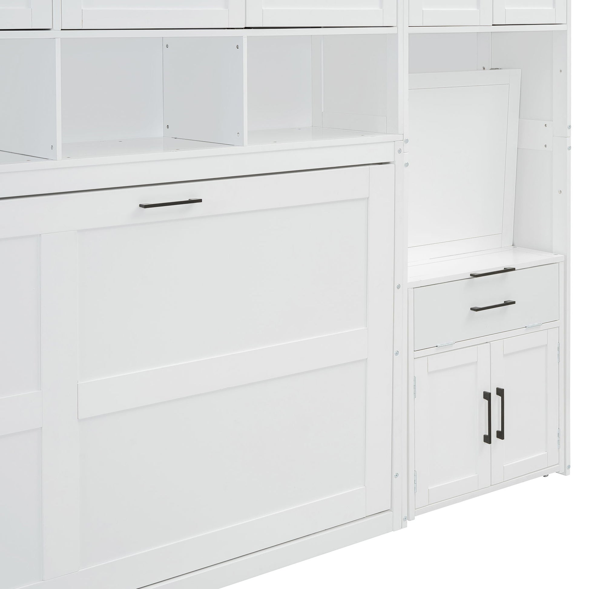 Twin Size Murphy Wall Bed With Closet, Drawers & Desk - White