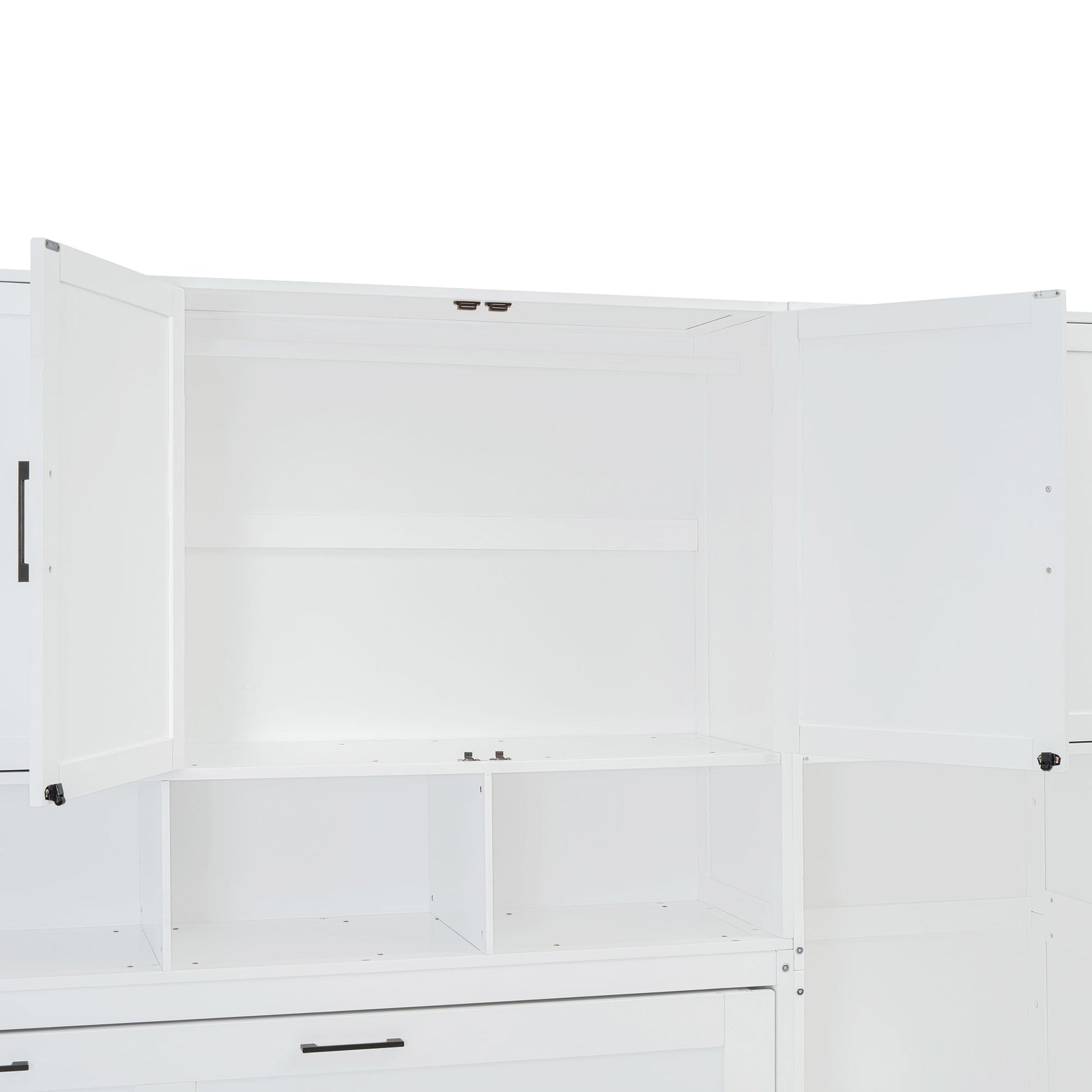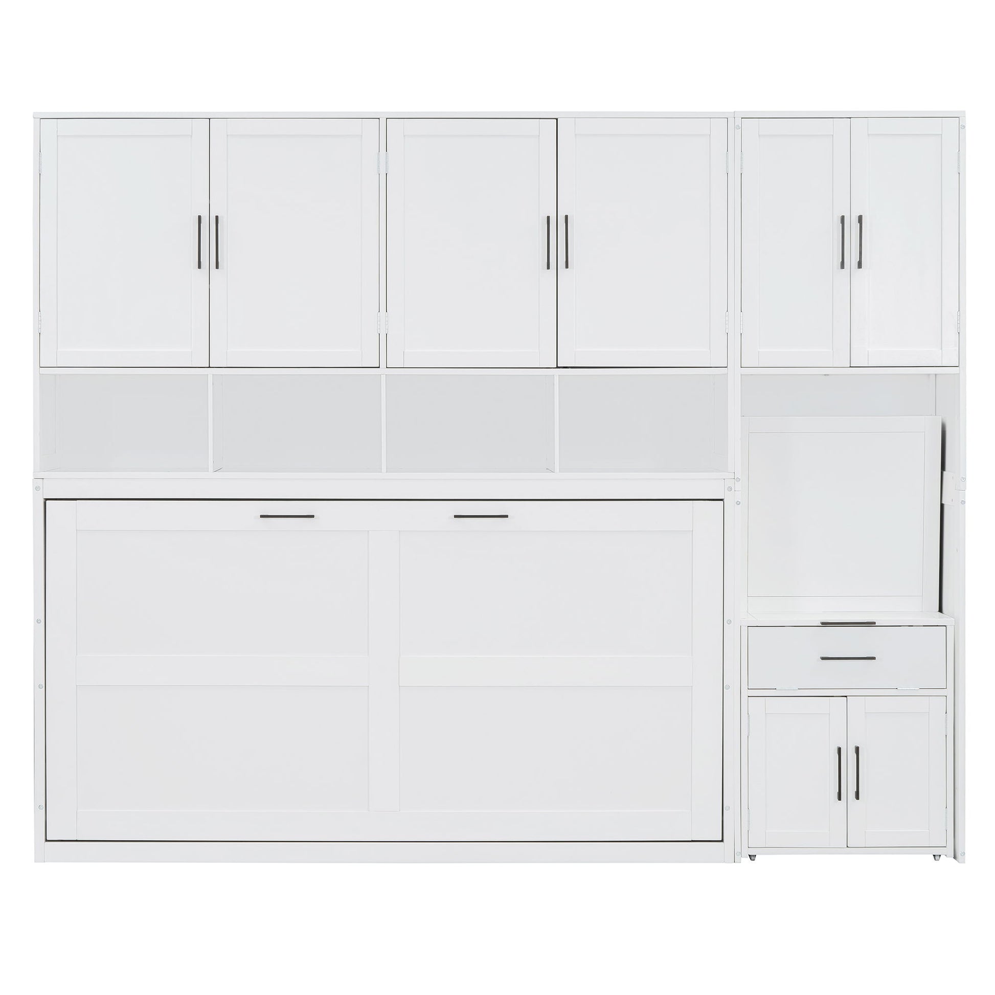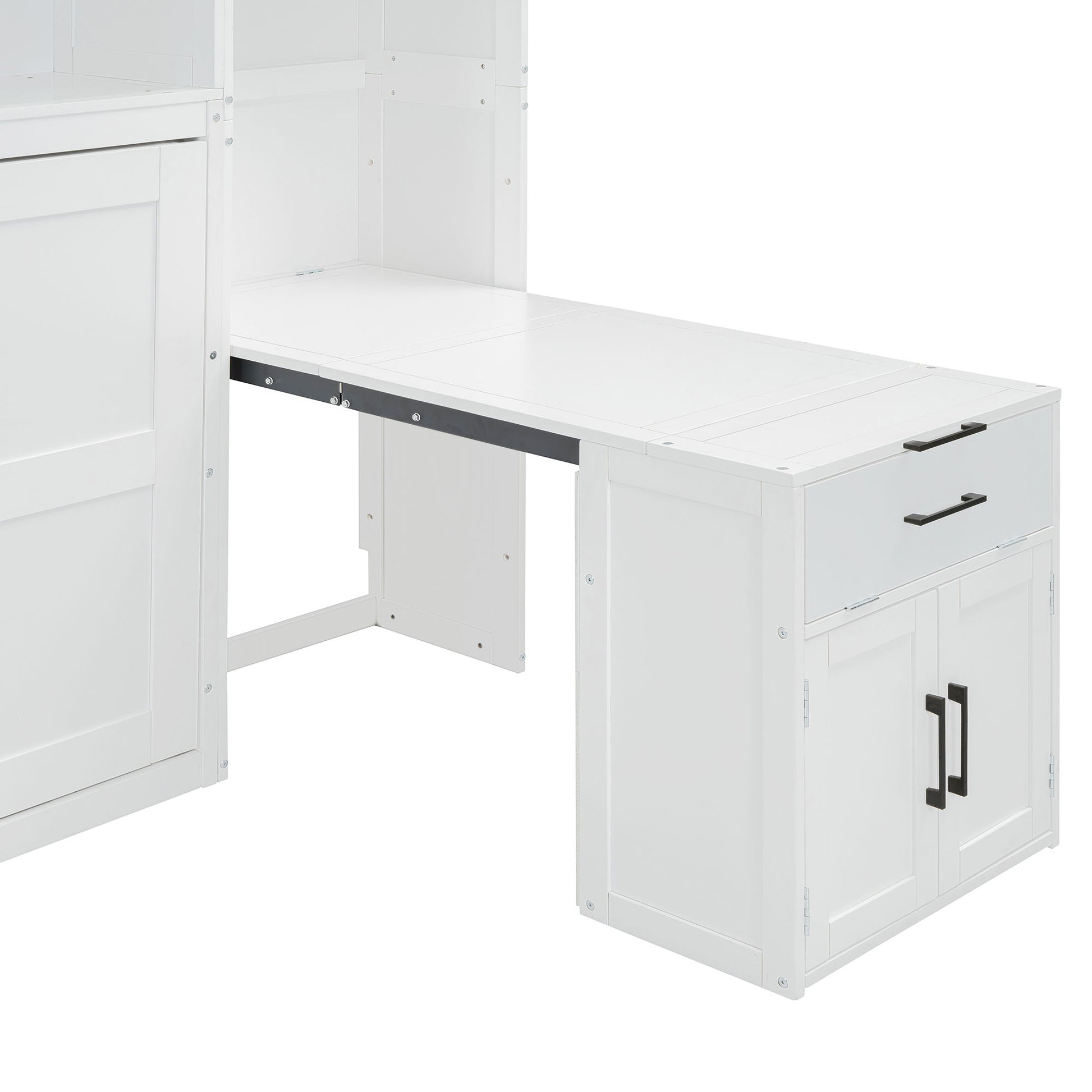 Twin Size Murphy Wall Bed With Closet, Drawers & Desk - White