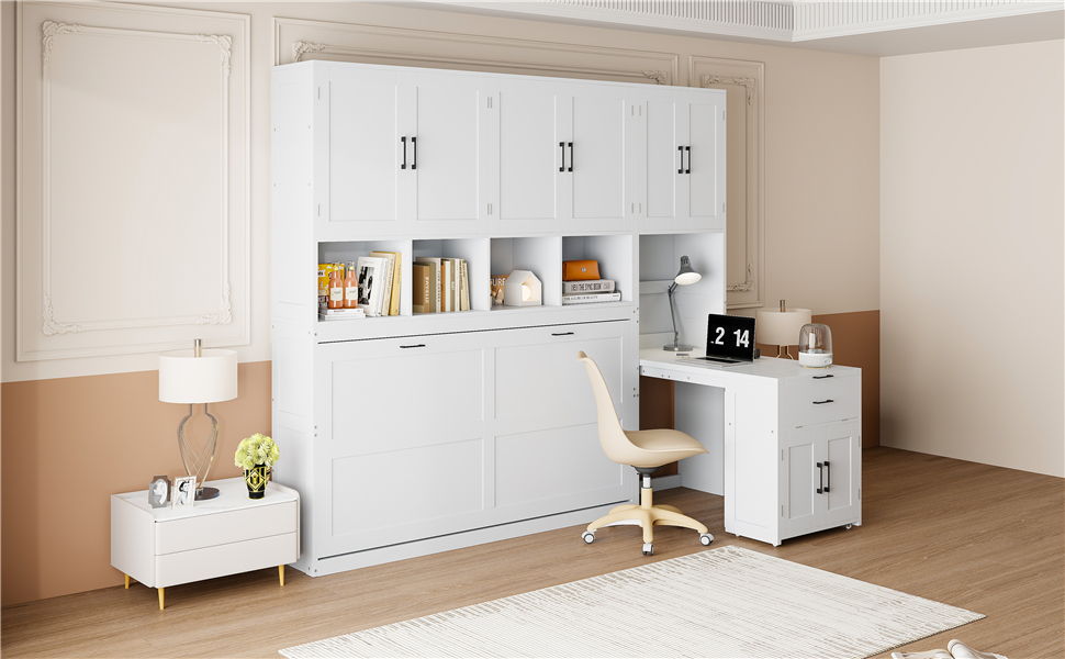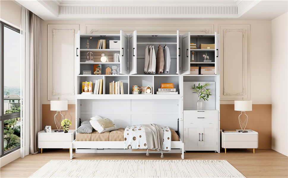 Space-Saving Design: Transform any room into a multifunctional space with our Murphy Bed. When not in use, simply fold it up to free up floor space for activities. The under-bed storage shelf is perfect for stowing away bedding, pillows, or seasonal items, keeping your room tidy and clutter-free.