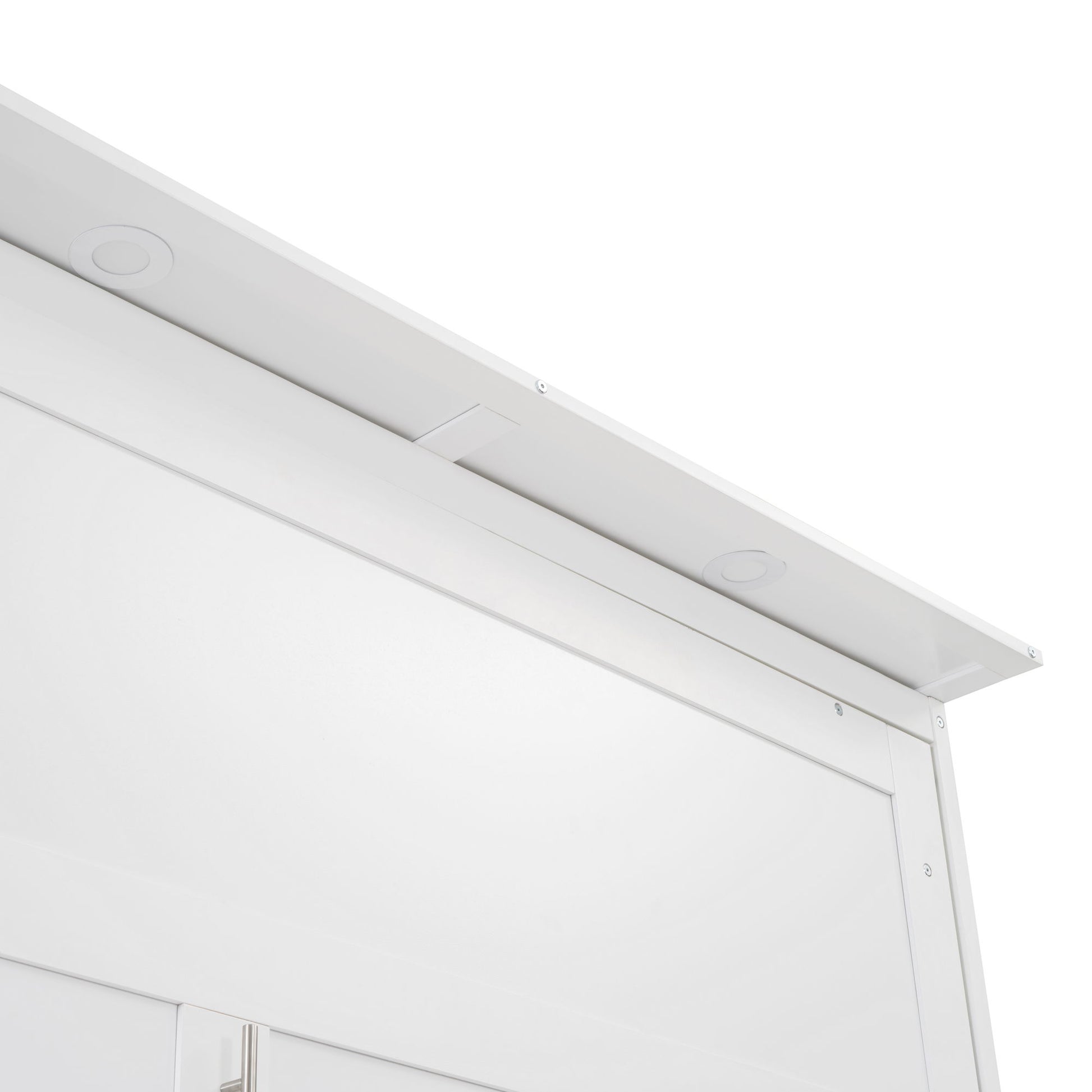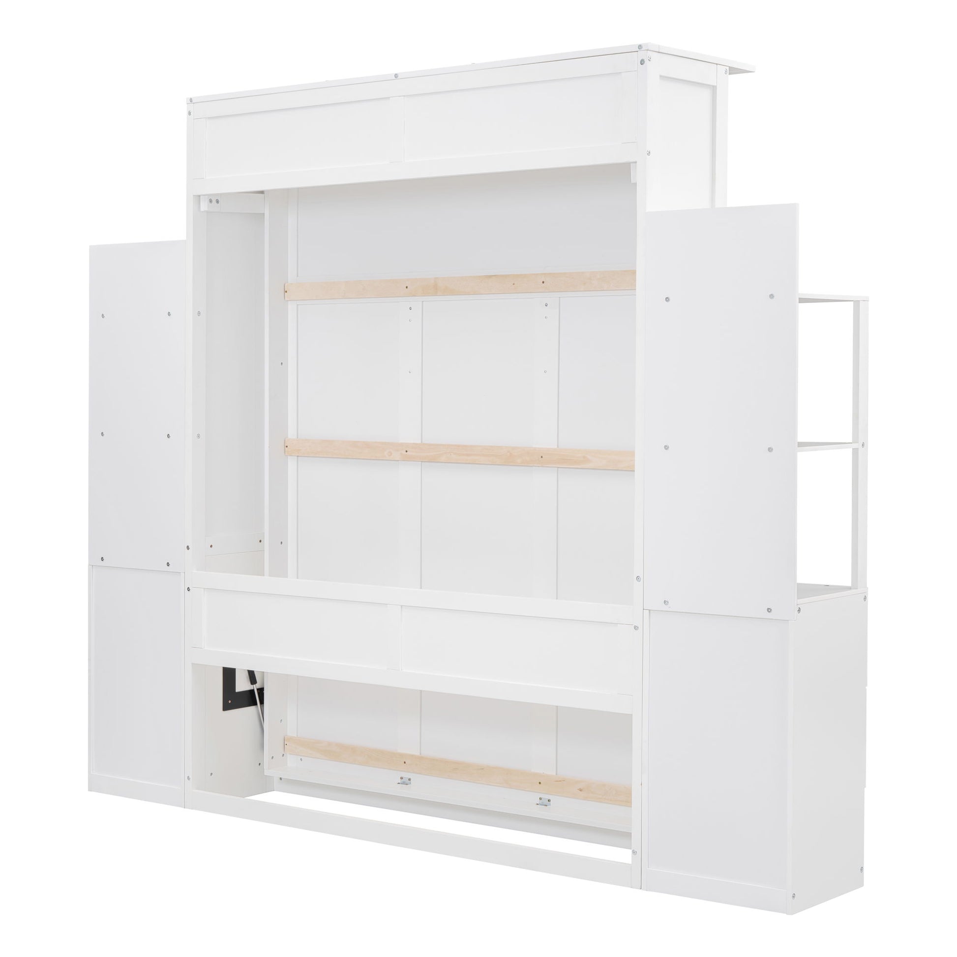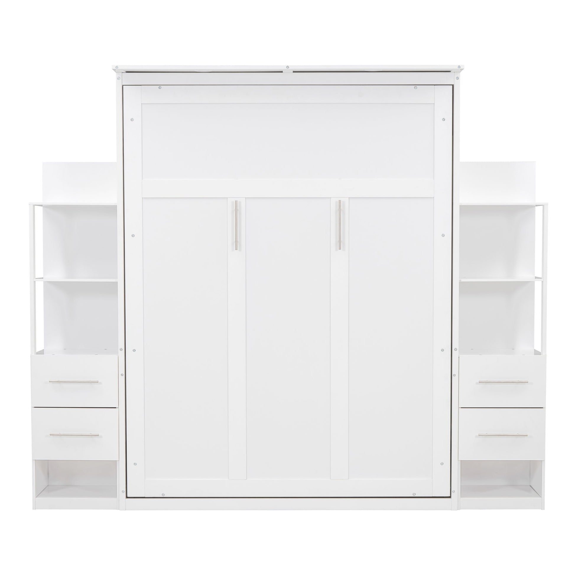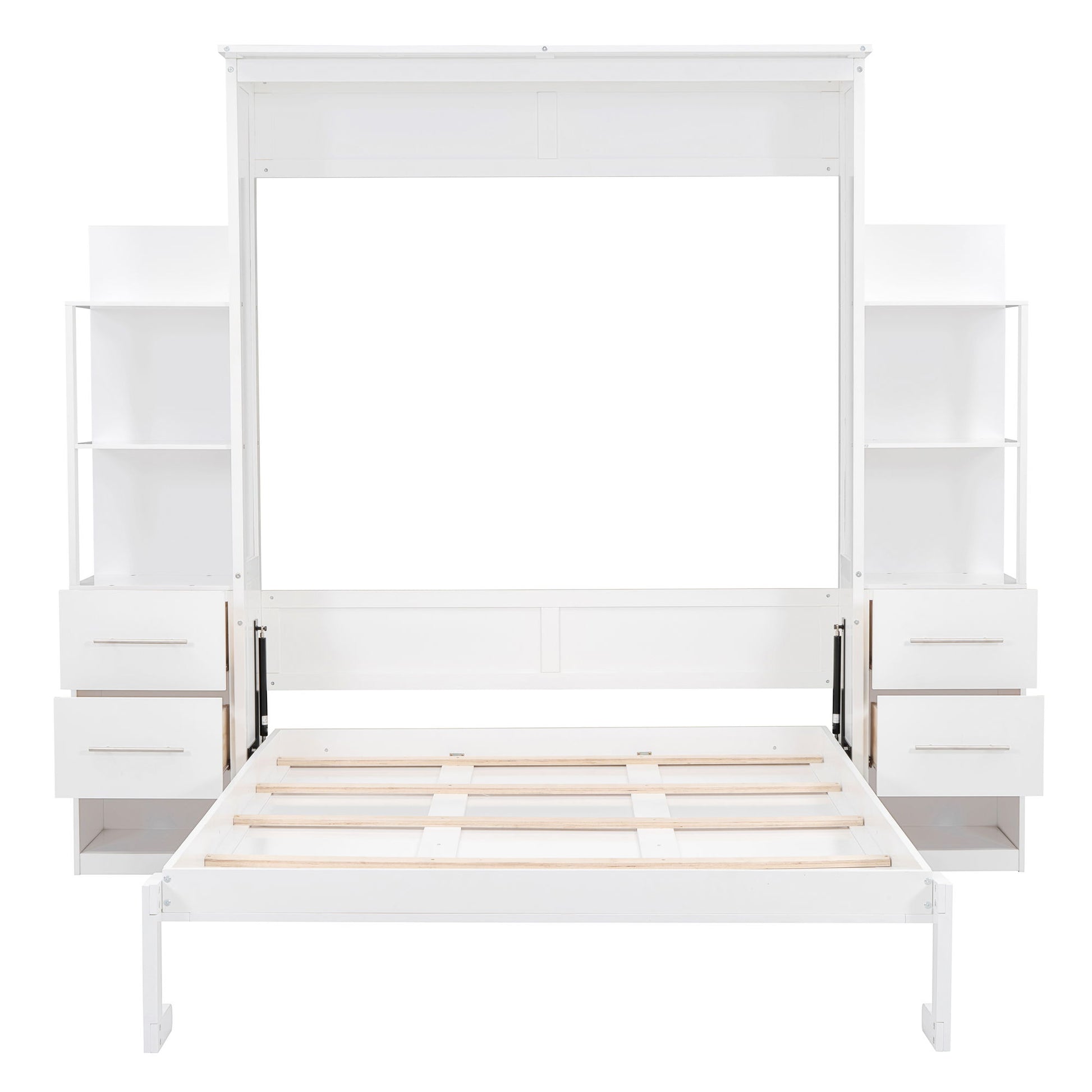Queen Size Murphy Wall Bed With Shelves, Drawers And LED Lights - White
