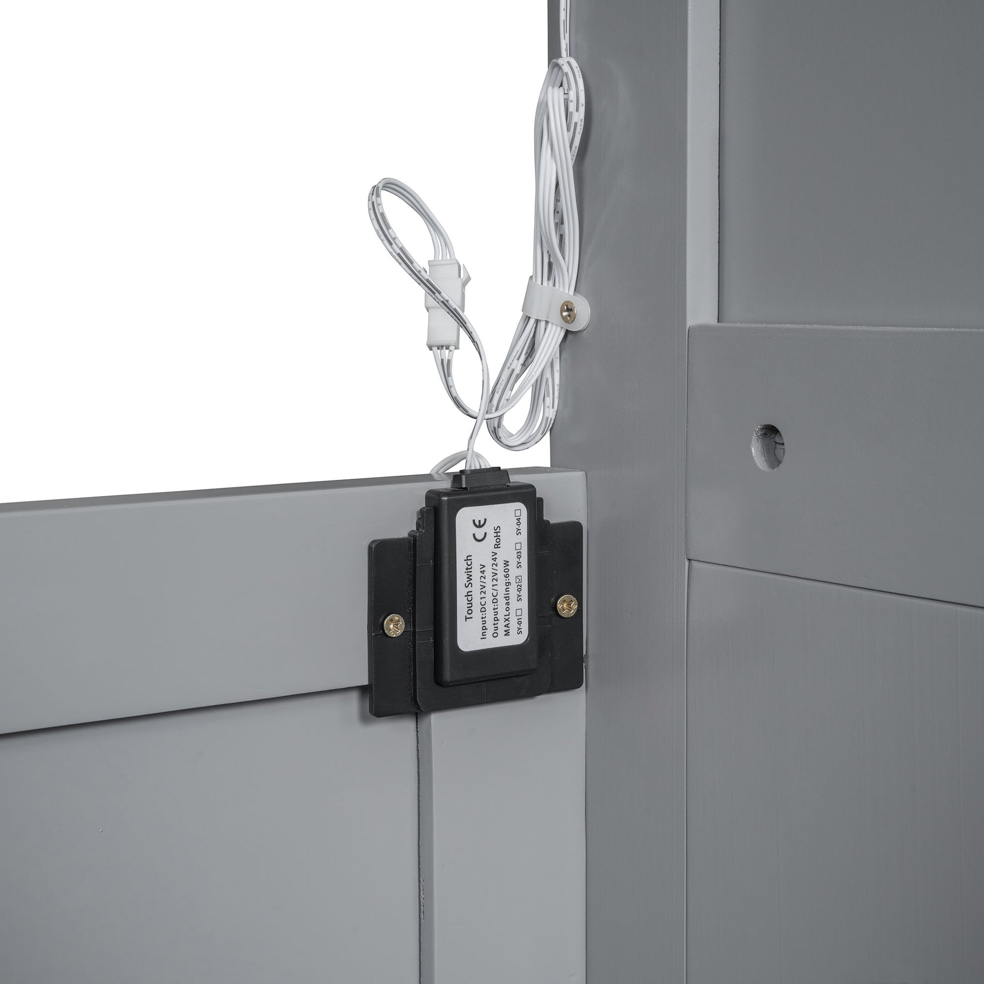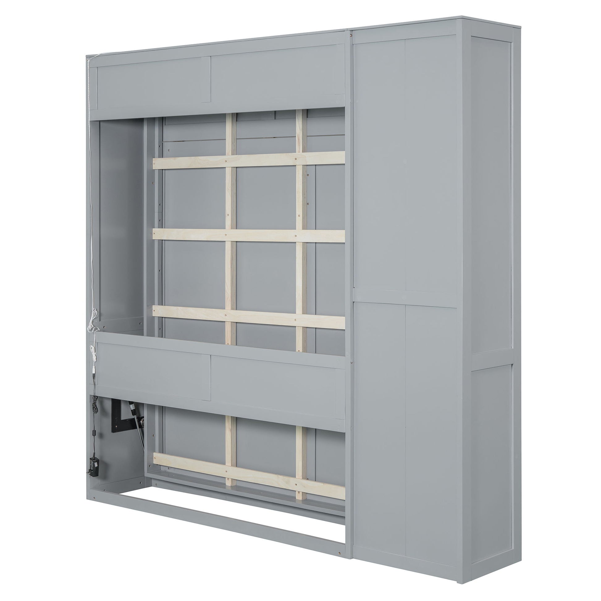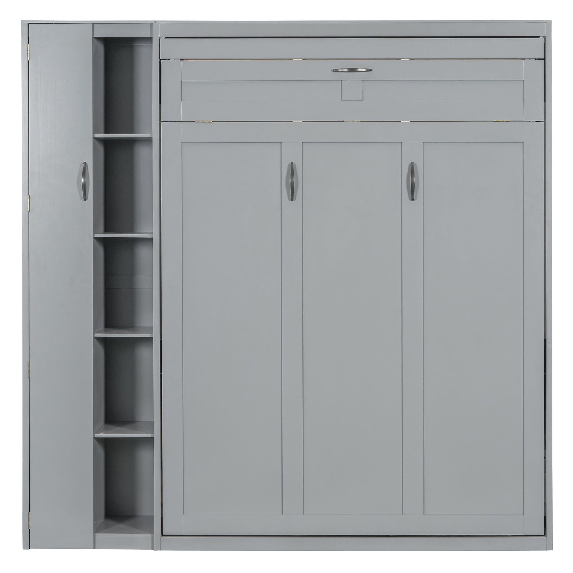 Full Size Murphy Wall Bed With Shelves, Wardrobe And LED Lights - Gray