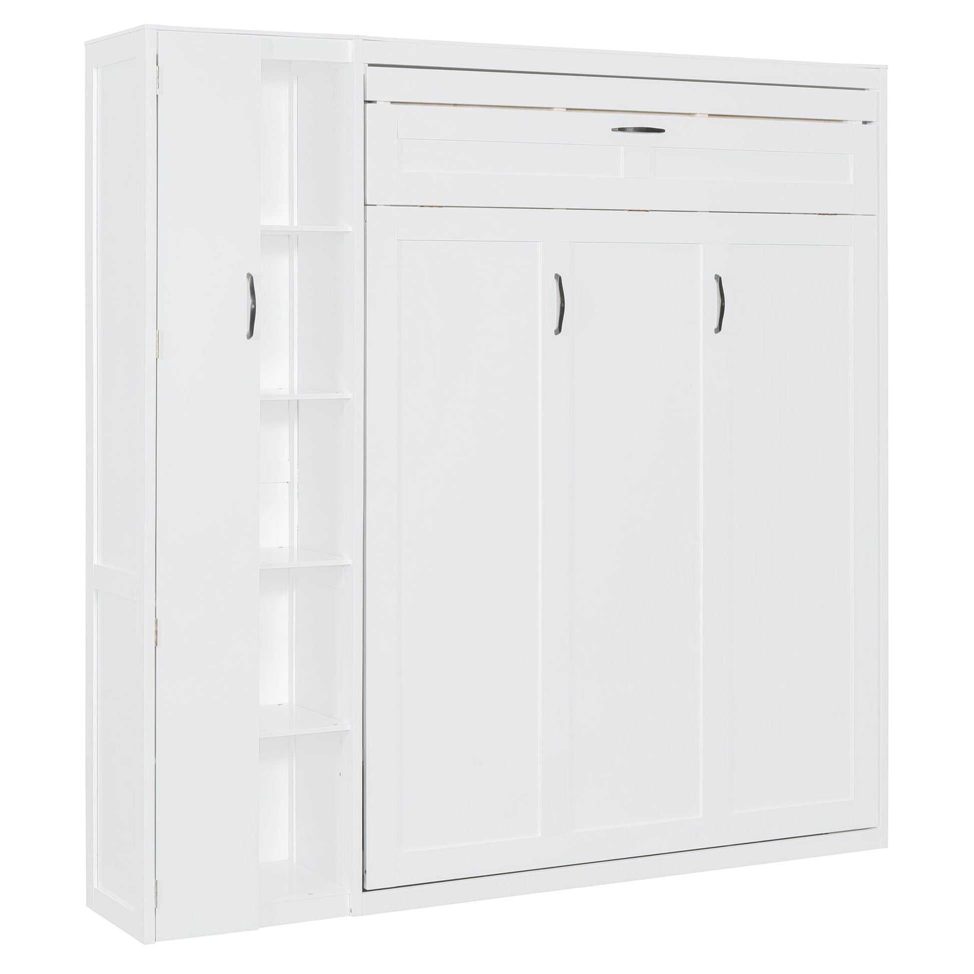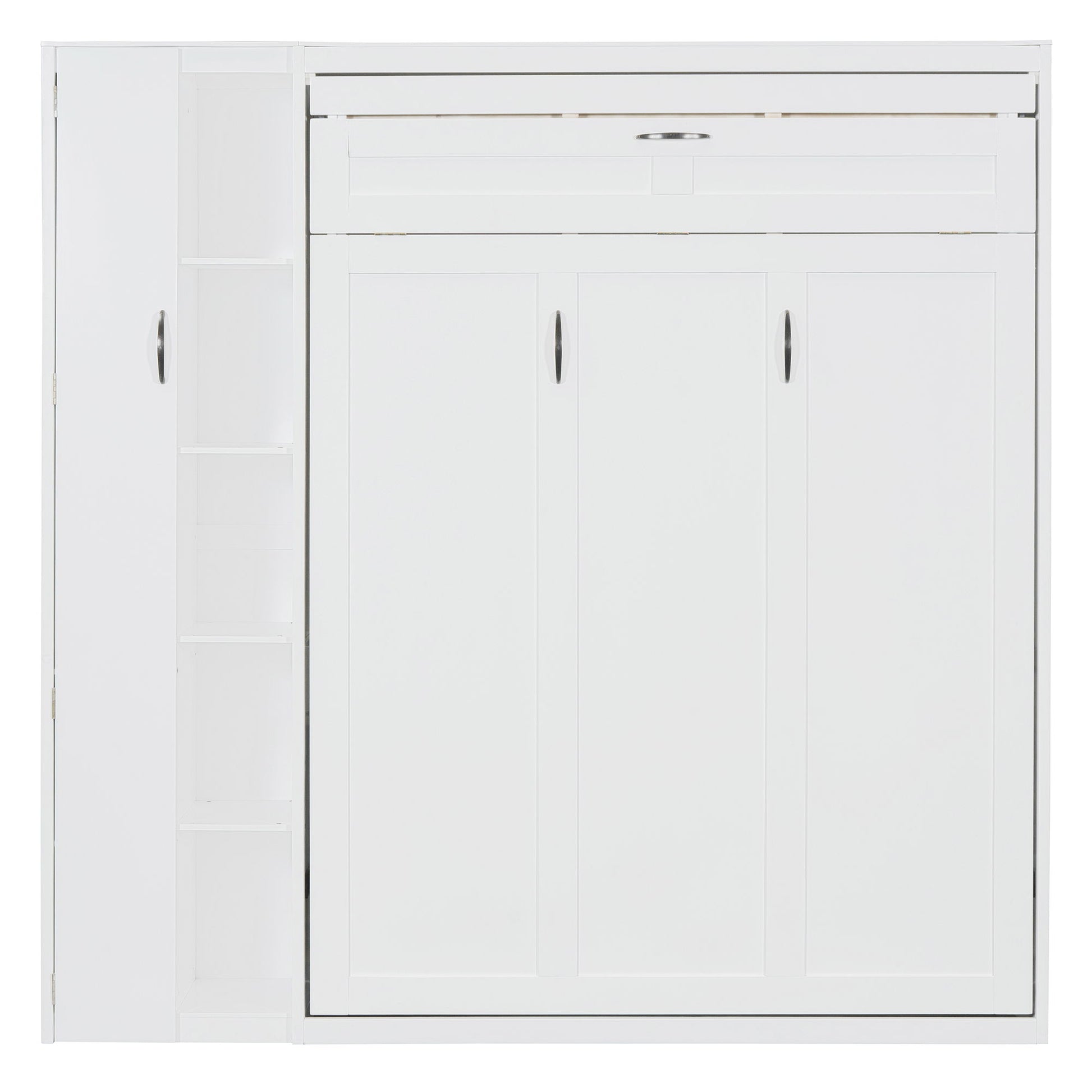 Full Size Murphy Wall Bed With Shelves, Wardrobe And LED Lights - White