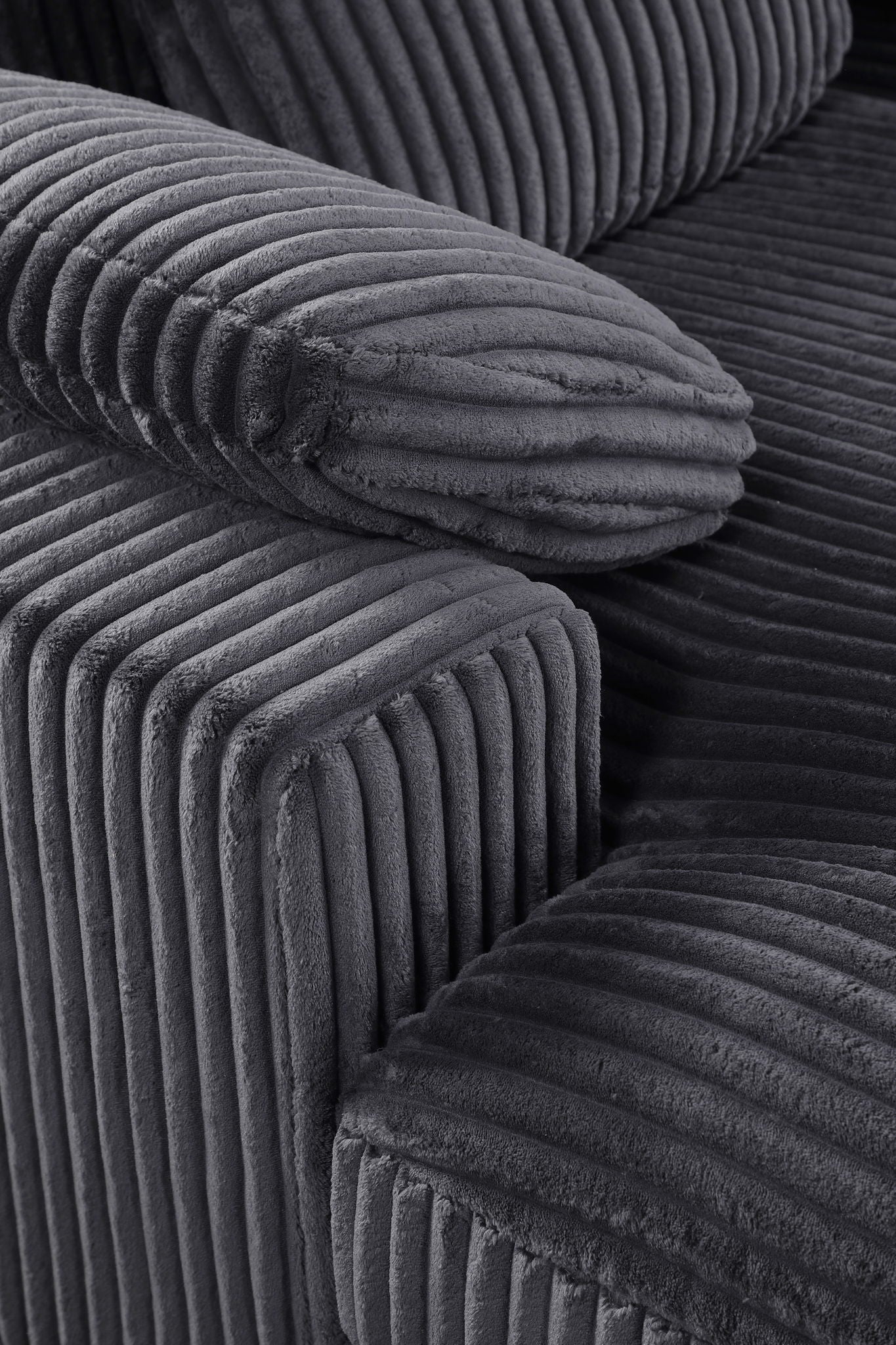 - Material & Color: Crafted in a sophisticated corduroy, this sectional sofa not only provides a luxurious look but also a soft, comfortable texture that complements various interior decors.