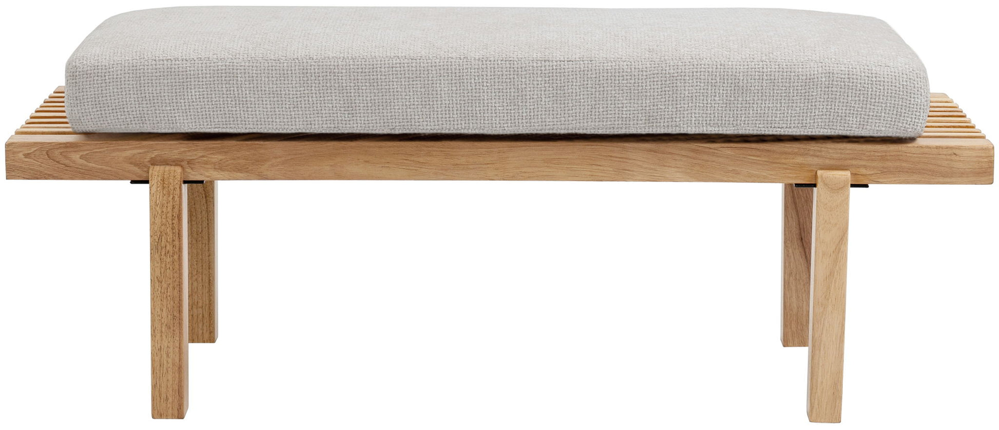 Crafted with a solid wood frame, the bench is finished in a rich natural tone that highlights the beauty of the wood grain. A generously padded cushion upholstered in cross-hatched chenille offers inviting comfort, with the flexibility to be used with or without the cushion depending on your styling preference. Durable yet elegant, the Naya bench is designed to complement a wide range of interiors while offering everyday functionality.